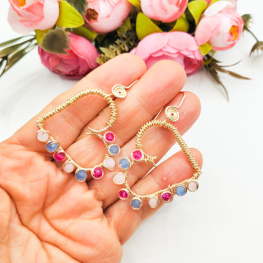 Aros Grandes en Forma de Corazón Con Ágatas Naturales