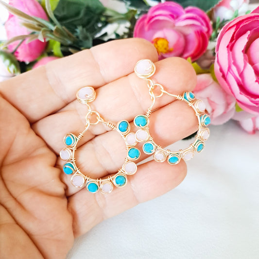 Aros Grandes Y Redondos Con Cristales Entorchados en Alambre