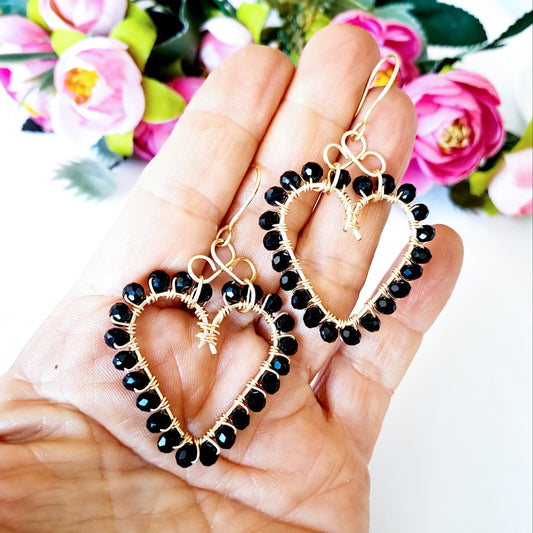Aros en Forma de Corazón Mitad Entorchado Con Cristales