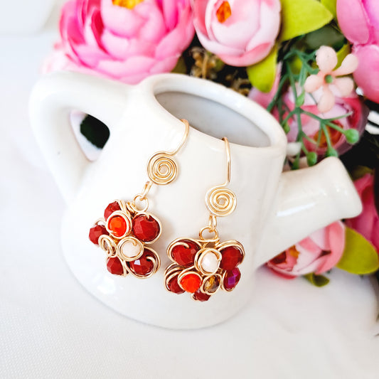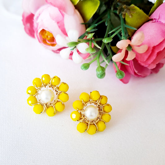 Aros Grandes en Forma de Flor Con Cristales Y Perlas Entorchadas