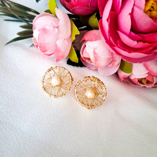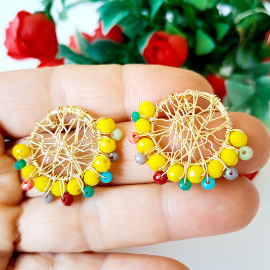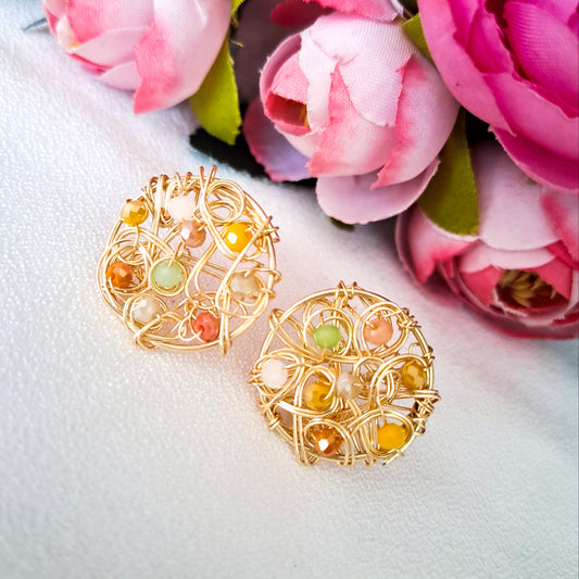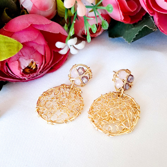 Aros Redondos Con Cristales Y Base Tejida en Alambre