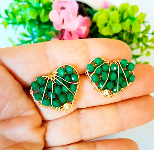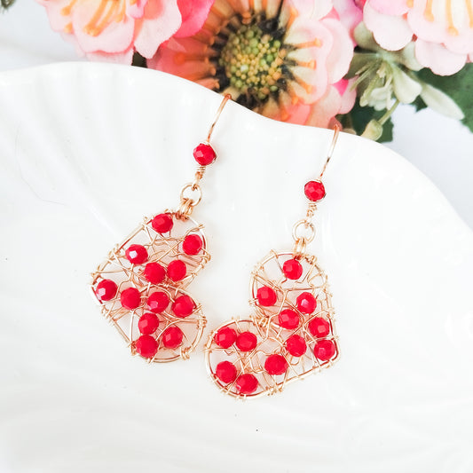 Aros en Forma de Corazón con Entramado de Cristales y Base Tipo Anzuelo