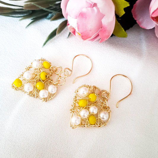 Aros en Forma de Corazón Con Entramado de Cristales y Perlas