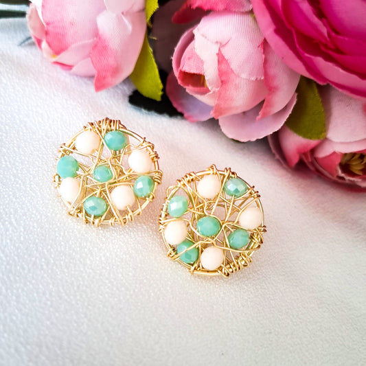 Aros Redondos Con Cristales Y Base Tejida en Alambre