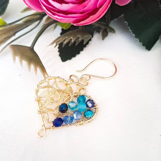 Aros en Forma de Corazón con Entramado dee Alambre y Cristales