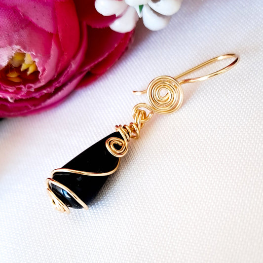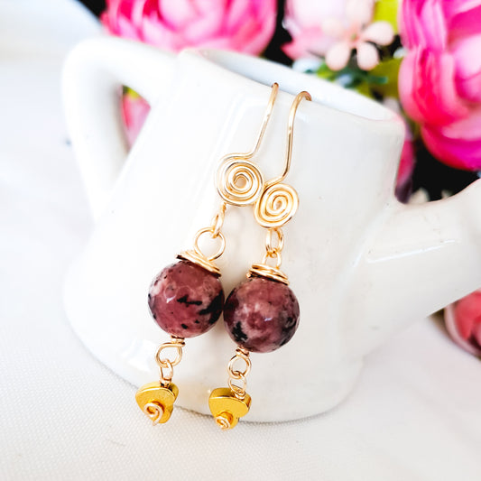 Aros Colgantes con Piedras Ágatas y Corazón de Alambre