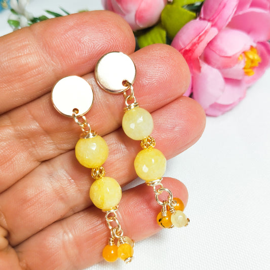 Aros Colgantes de Ágatas Naturales Y Anzuelo en Baño de Oro
