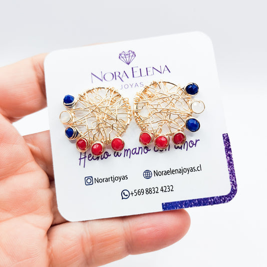 Aros Redondos Con Cristales Y Base Tejida en Alambre