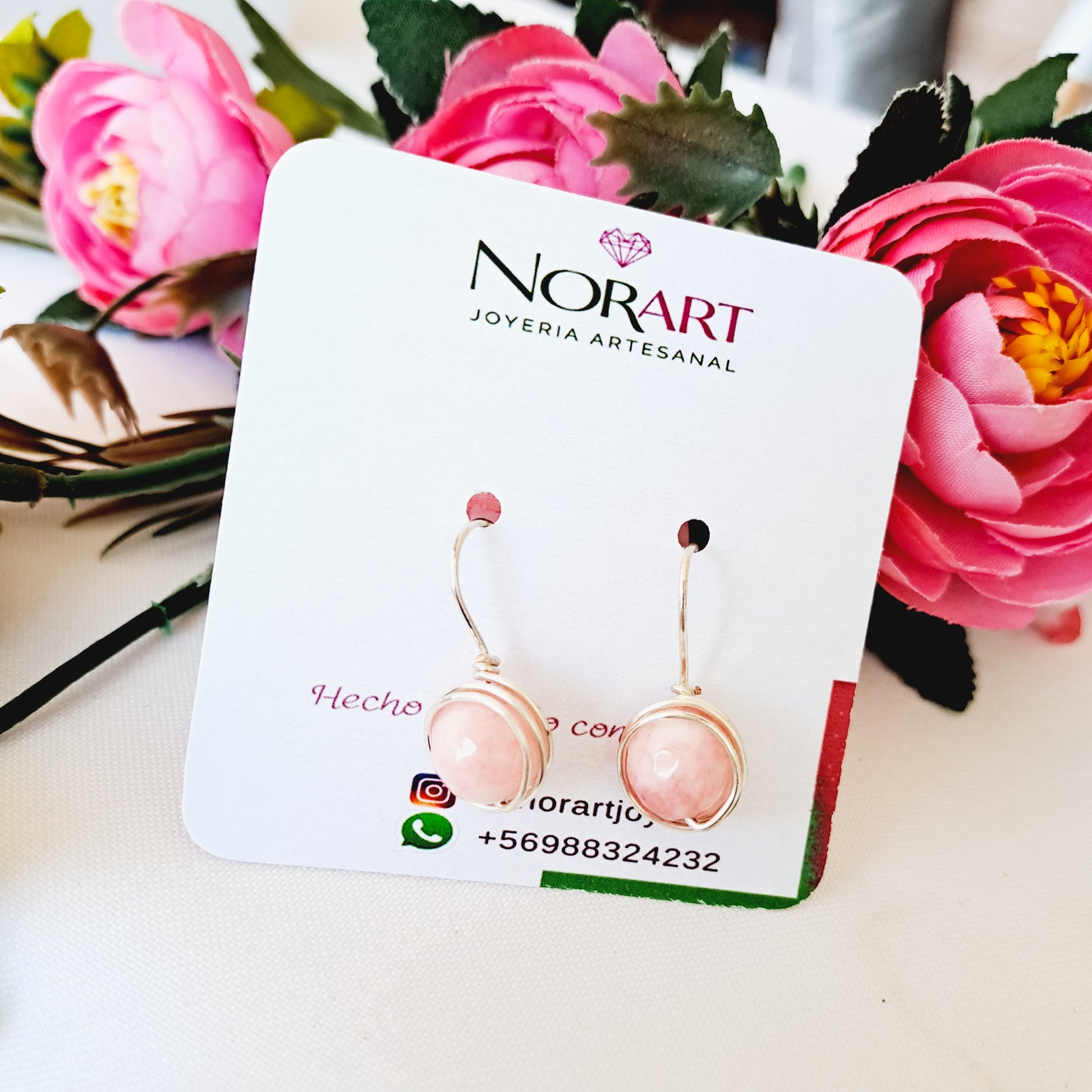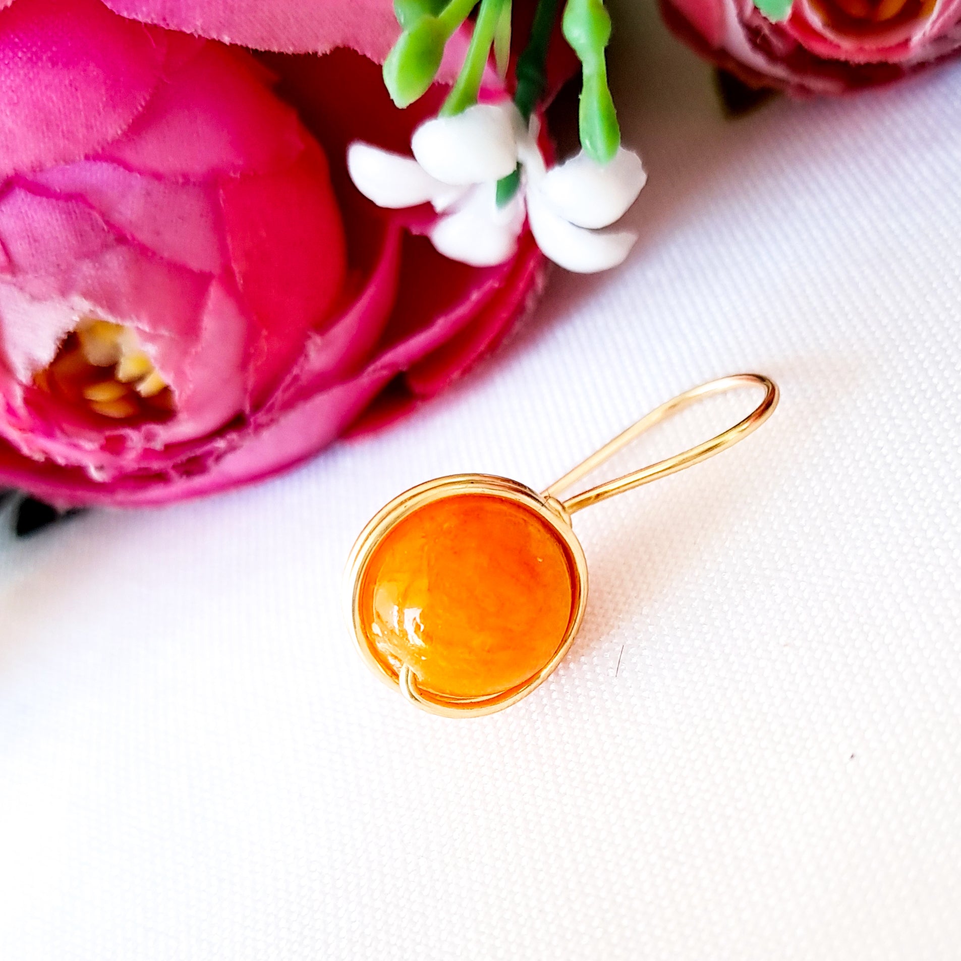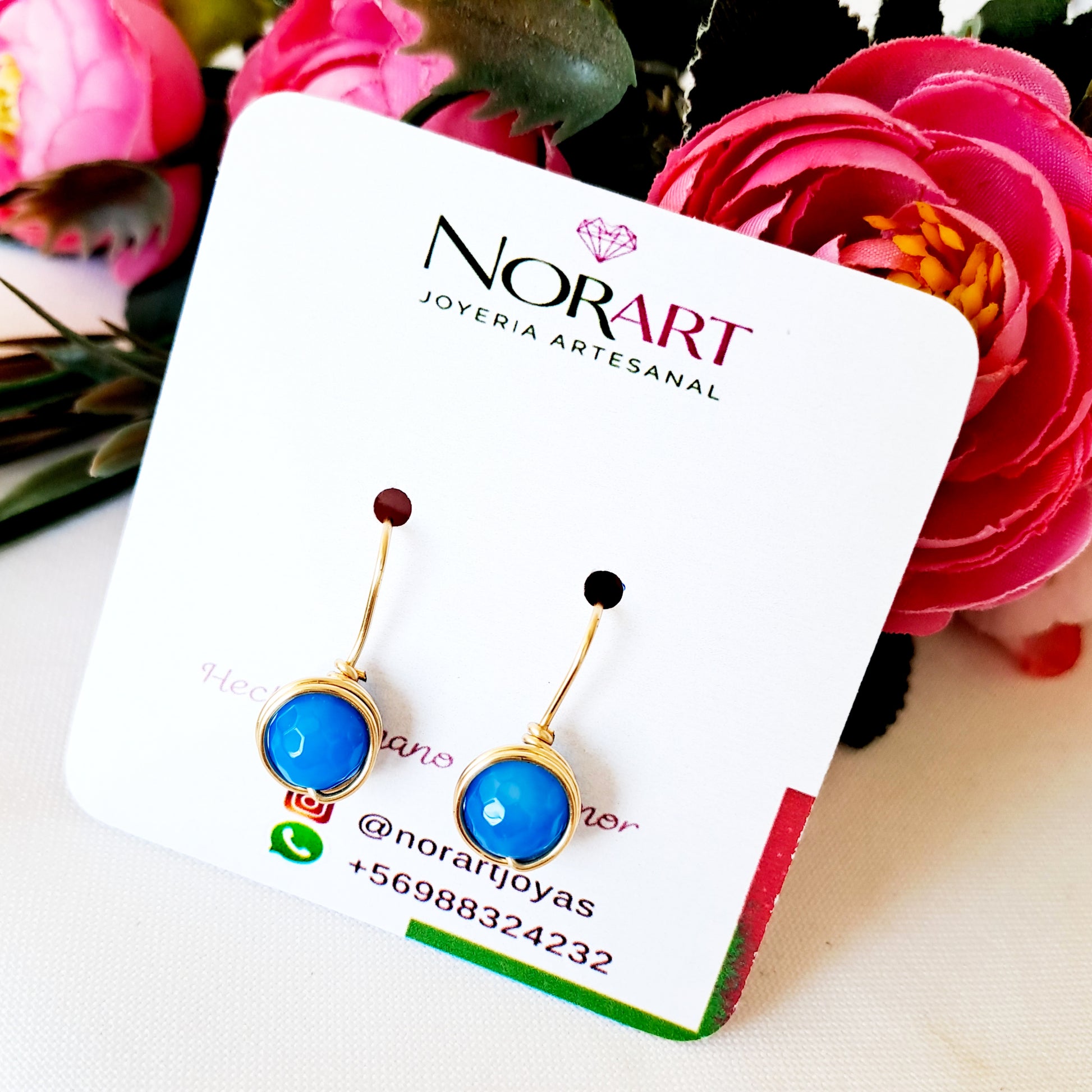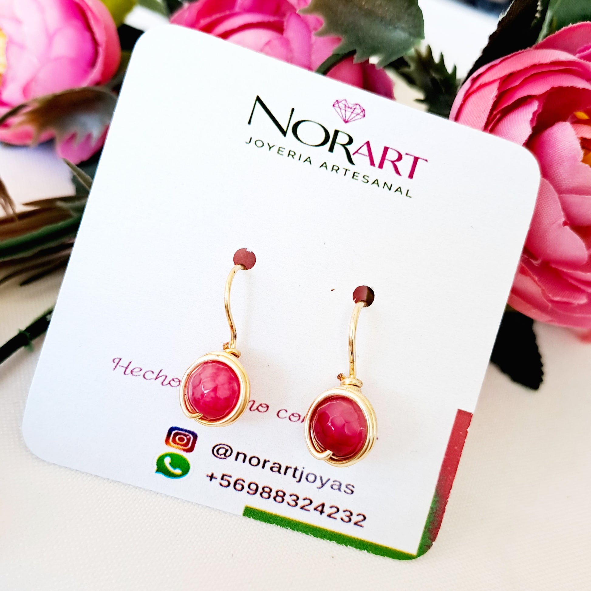 Cada aro destaca por una piedra ágata natural, cuidadosamente envuelta varias veces en alambre, culminando en una base tipo anzuelo que garantiza un ajuste cómodo y seguro.