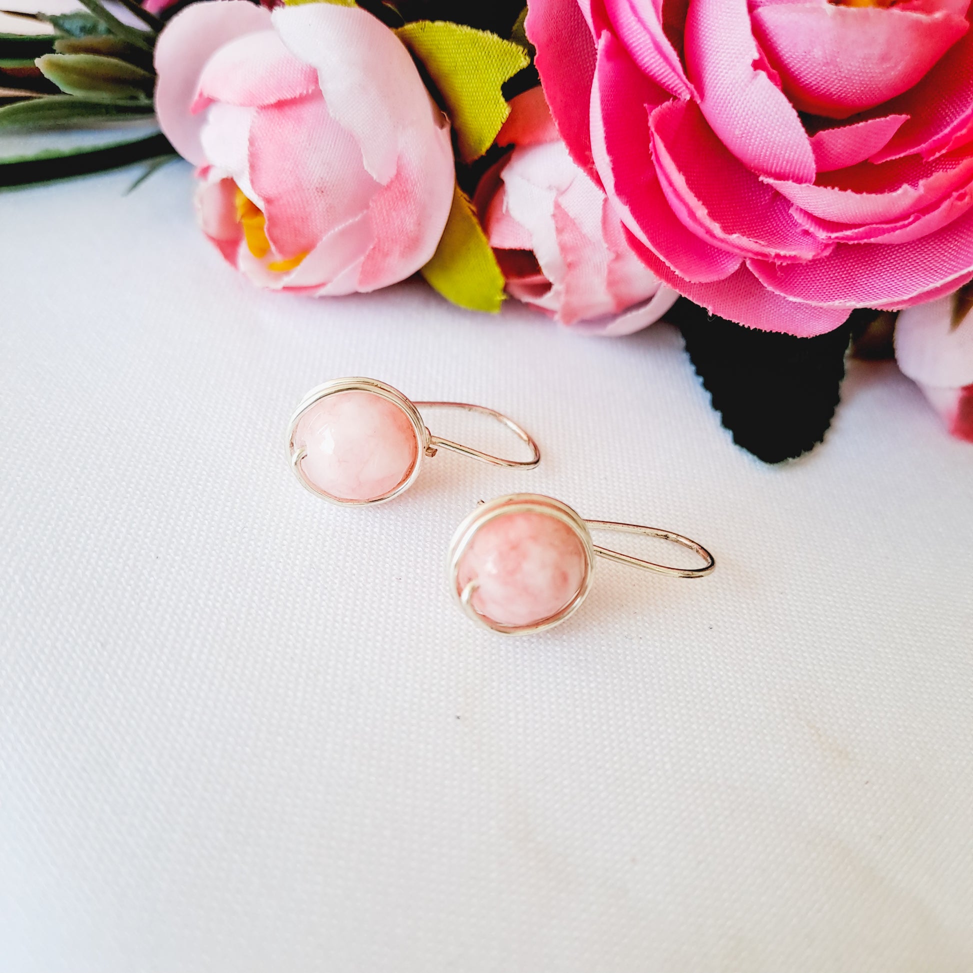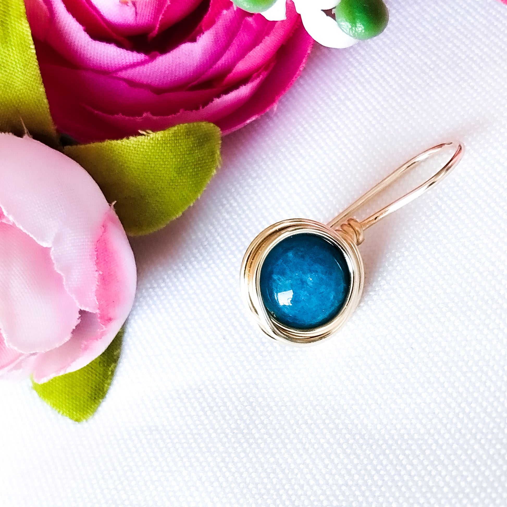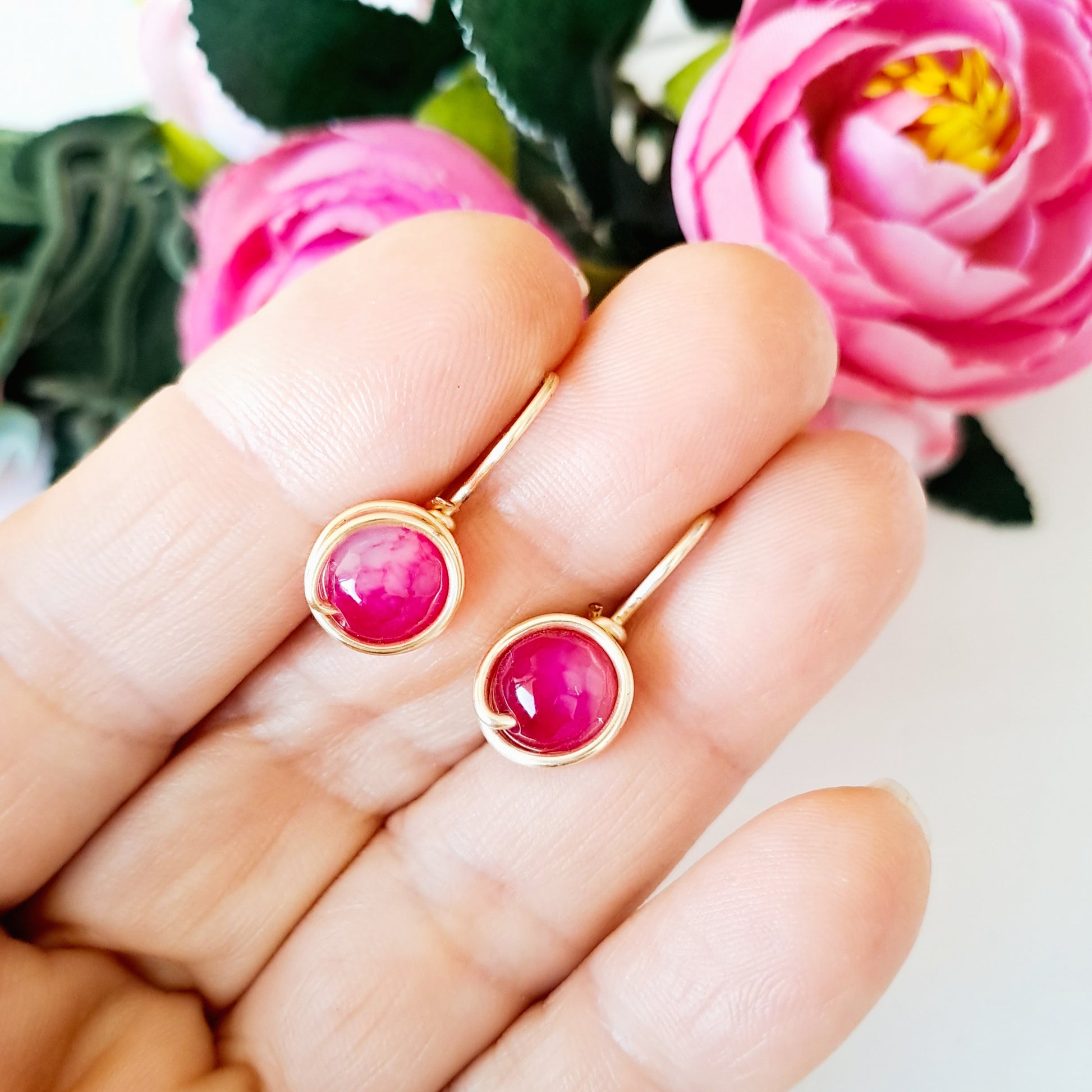 Cada aro destaca por una piedra ágata natural, cuidadosamente envuelta varias veces en alambre, culminando en una base tipo anzuelo que garantiza un ajuste cómodo y seguro.