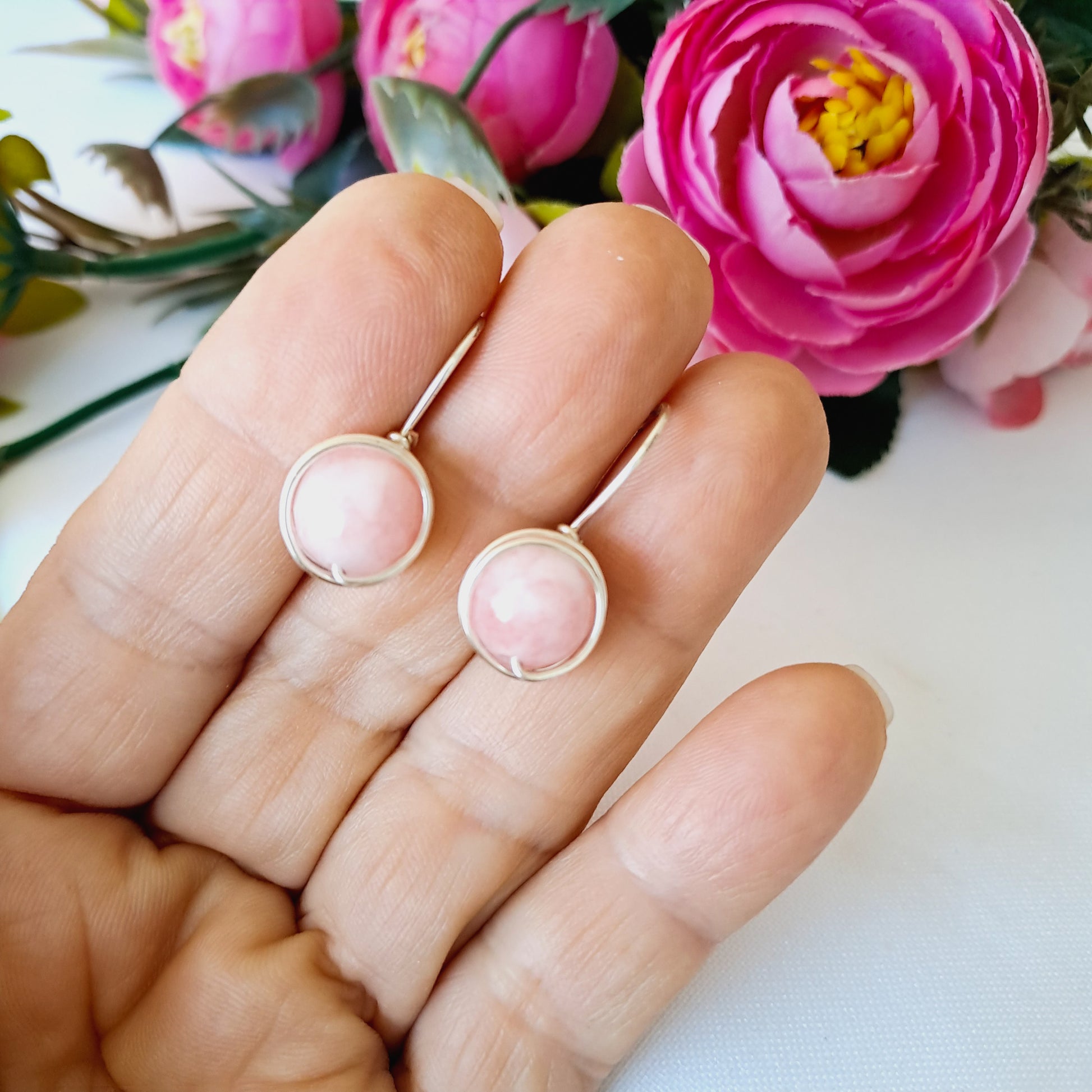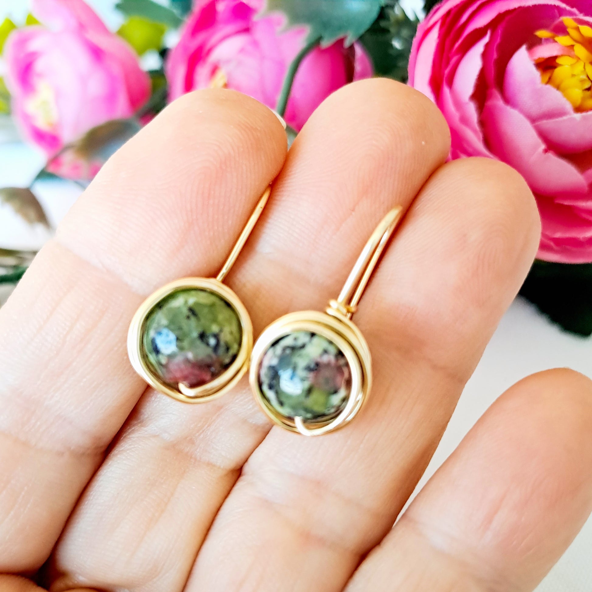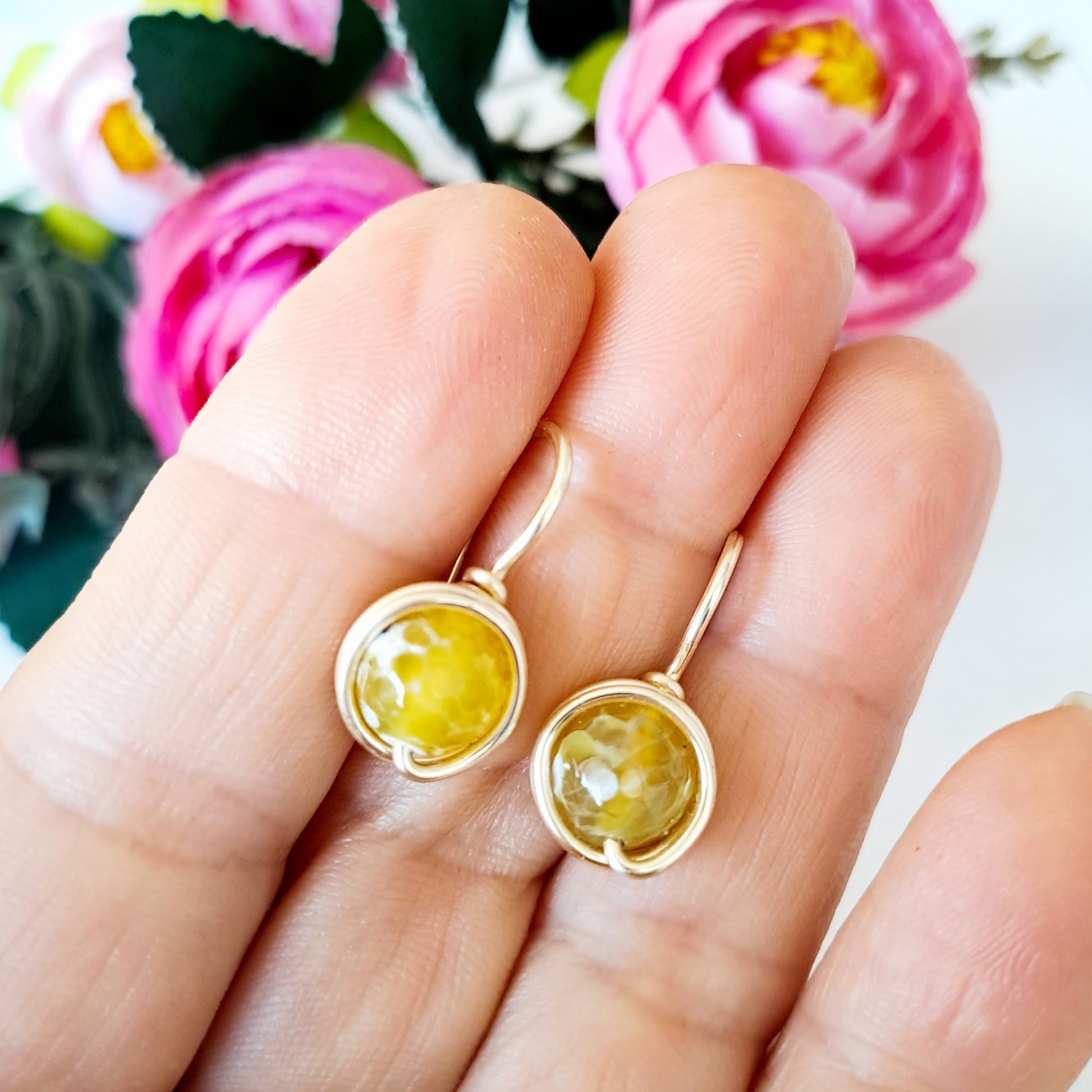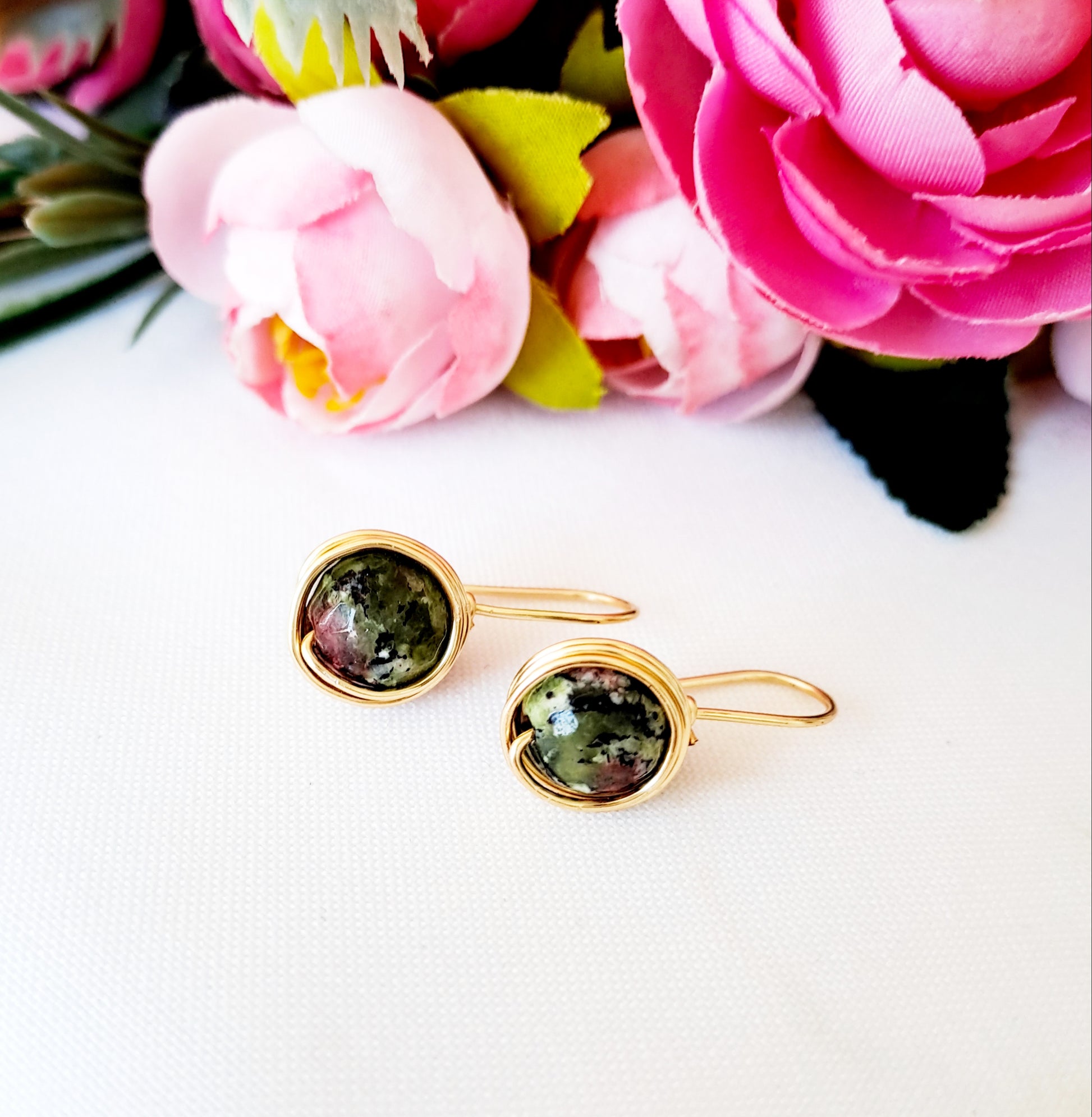 Cada aro destaca por una piedra ágata natural, cuidadosamente envuelta varias veces en alambre, culminando en una base tipo anzuelo que garantiza un ajuste cómodo y seguro.