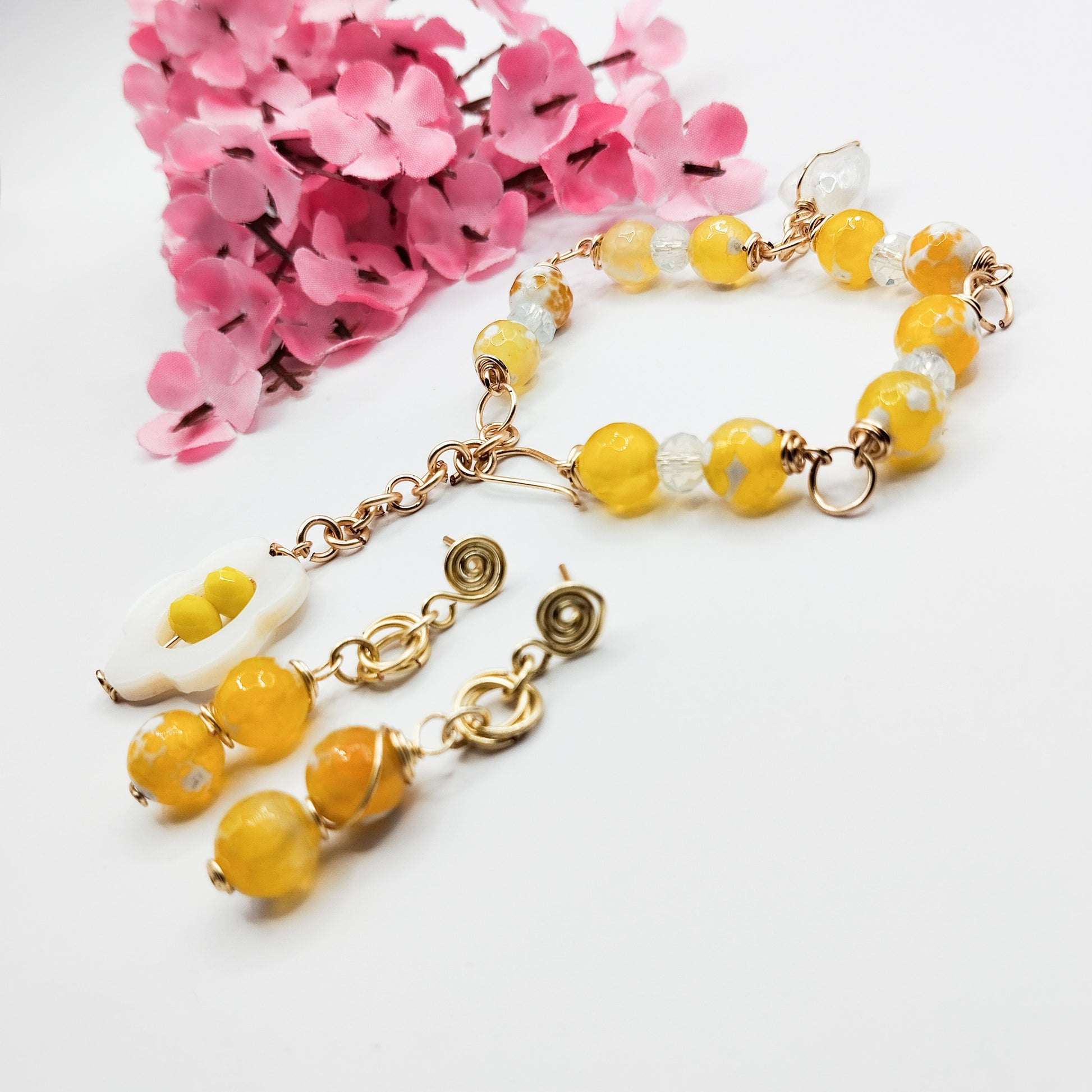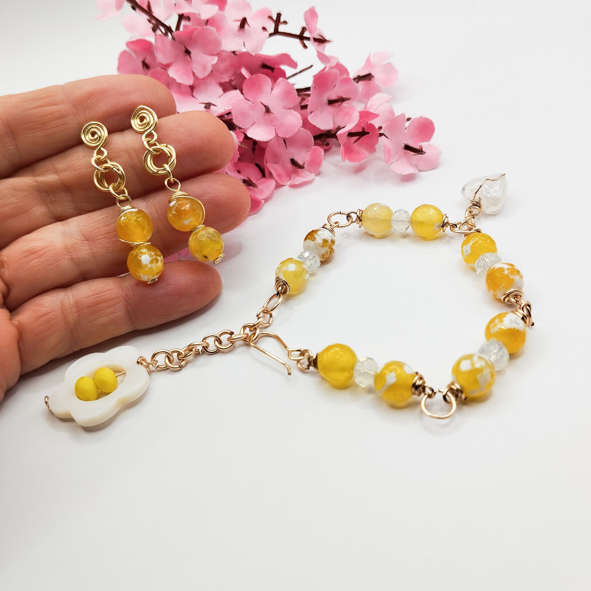 Conjunto de Aros Y Pulsera Con Piedras Ágatas