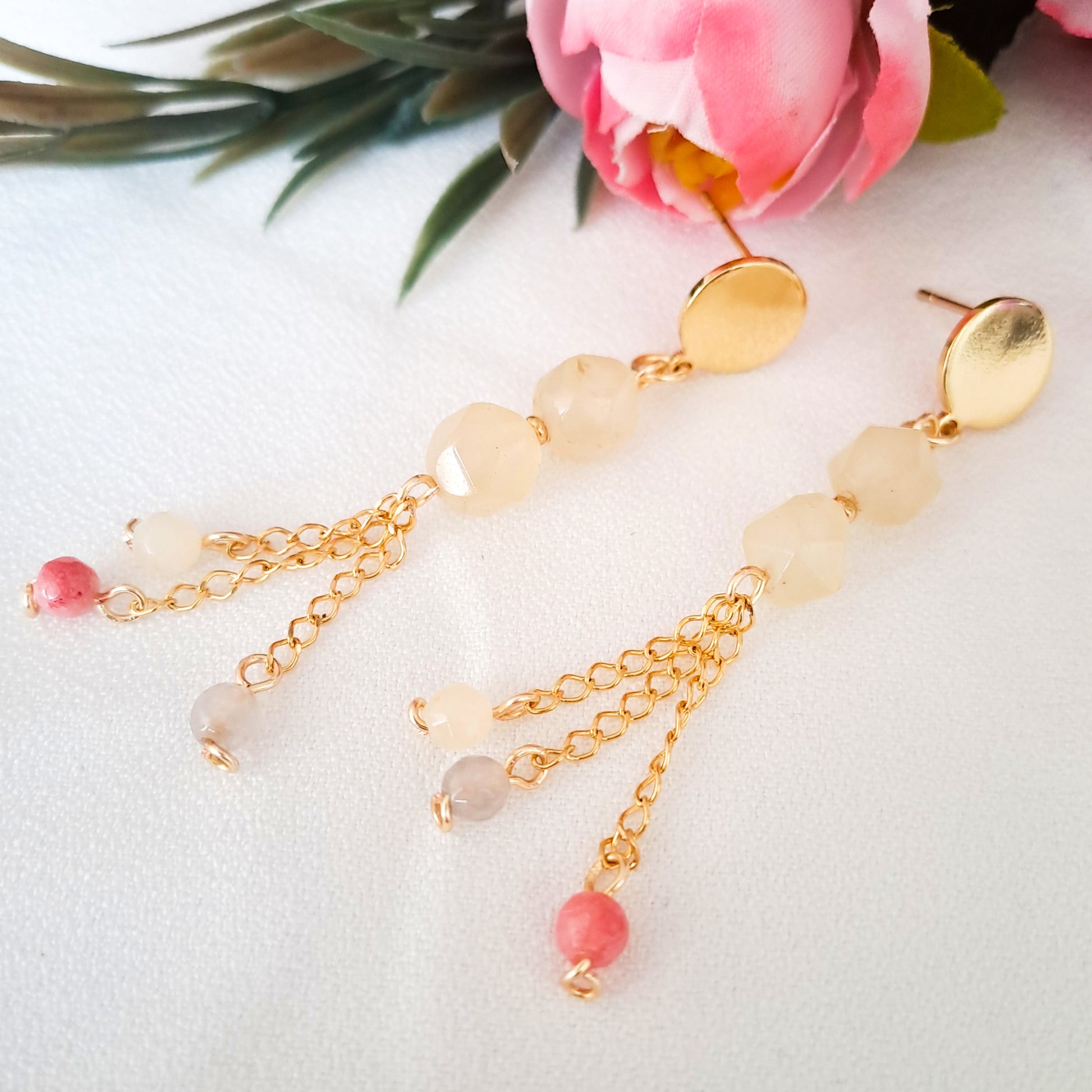Aros Colgantes con Ágatas Engarzadas y Cascada de Cadenas