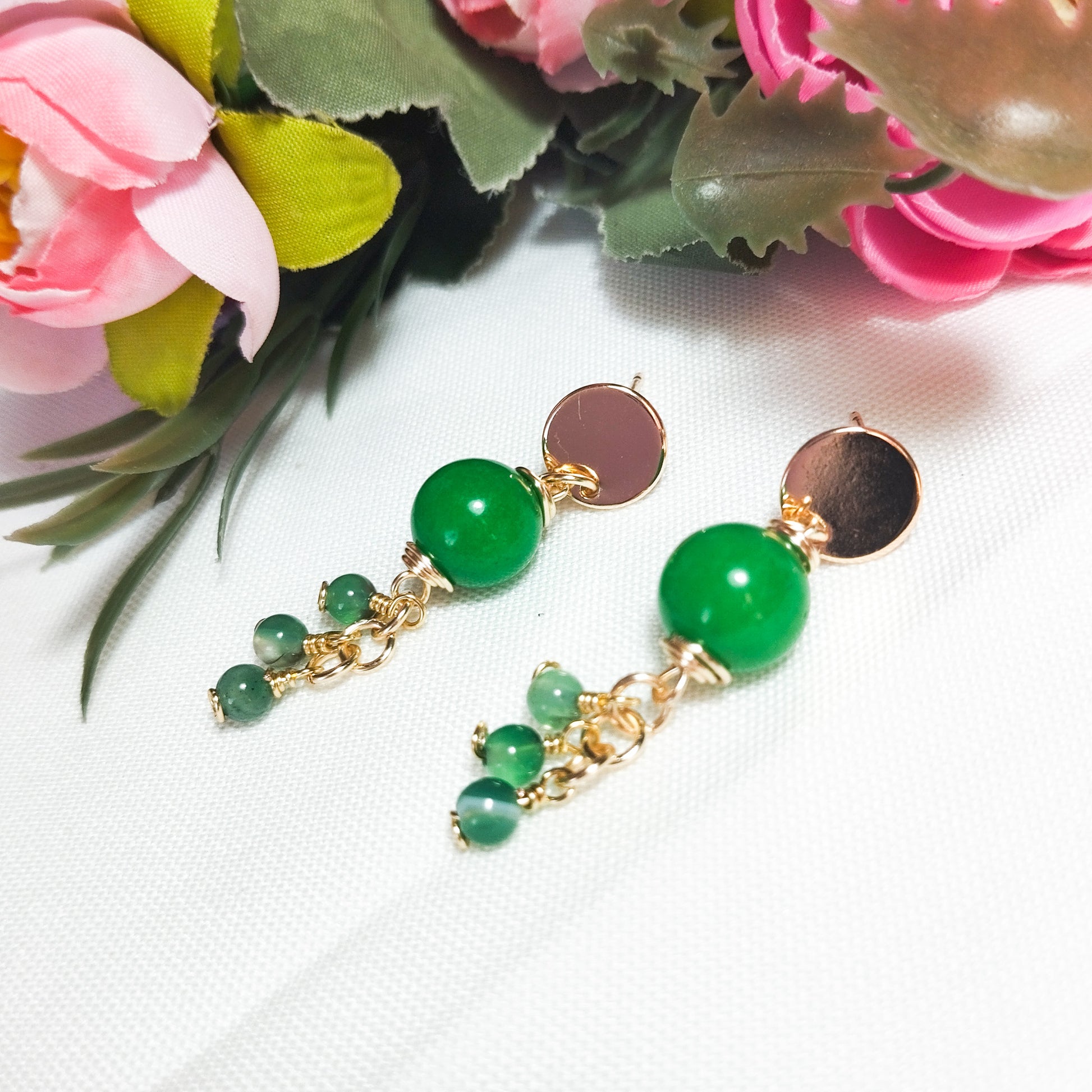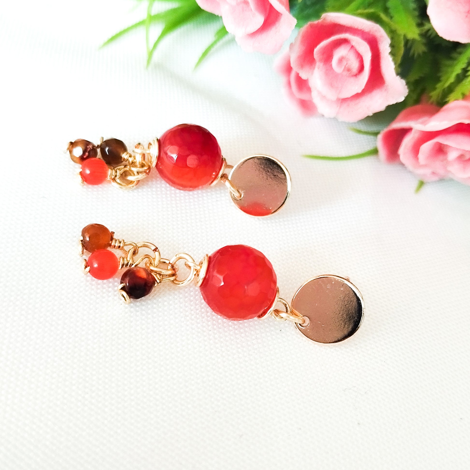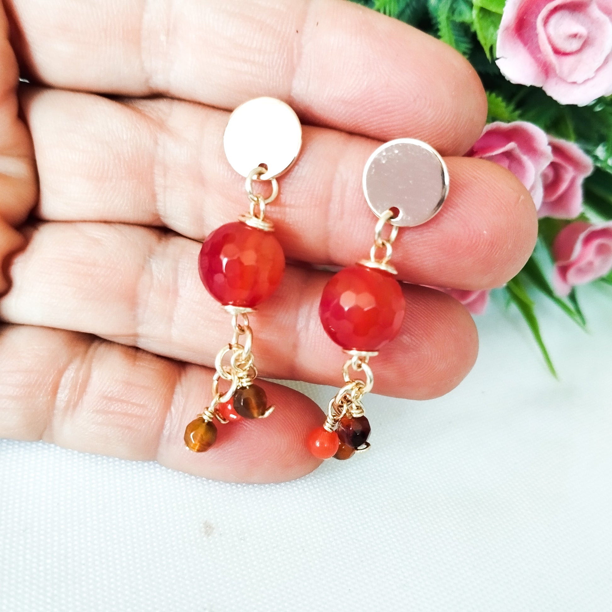 Aros Colgantes con Base Redonda en Baño de Oro y Ágatas Facetadas