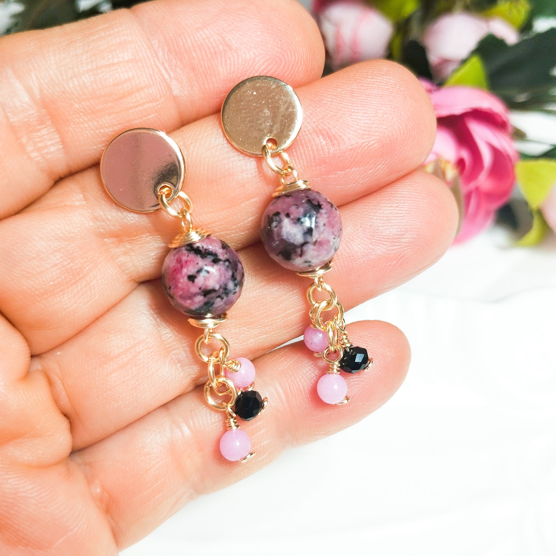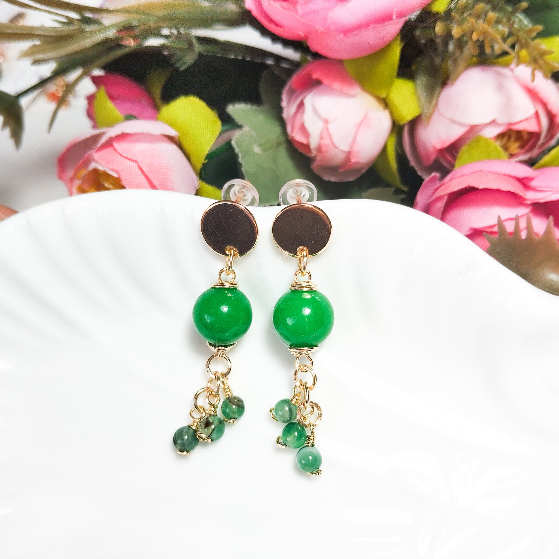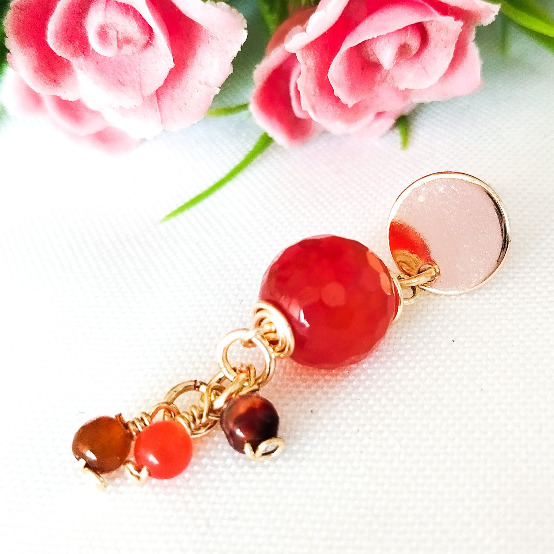 Aros Colgantes con Base Redonda en Baño de Oro y Ágatas Facetadas