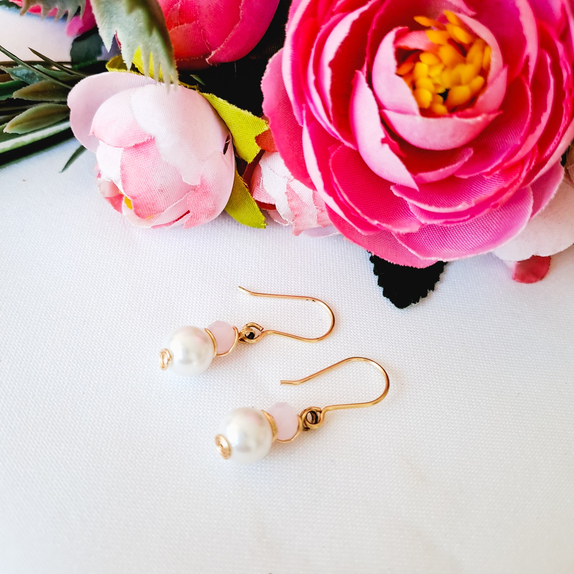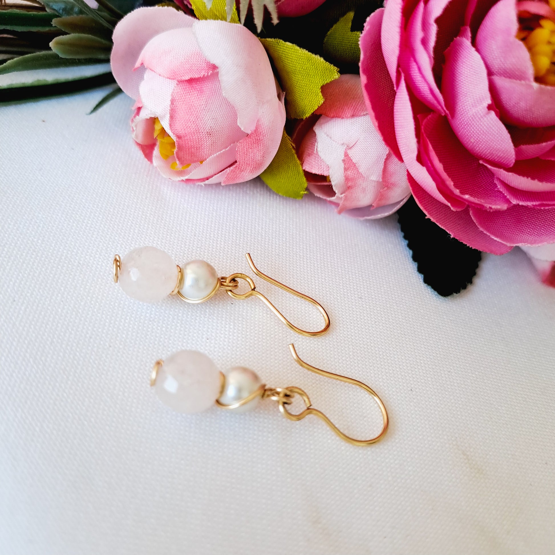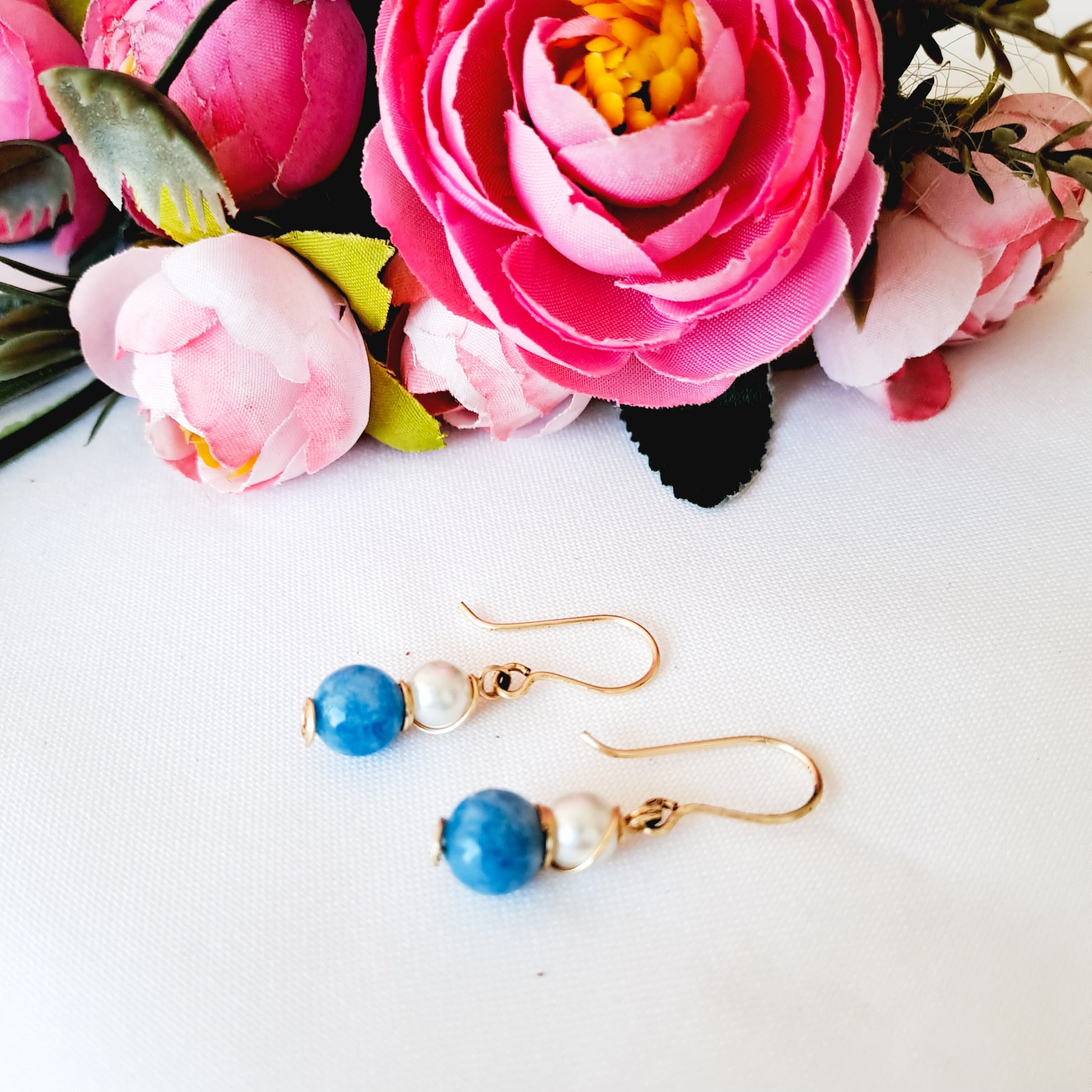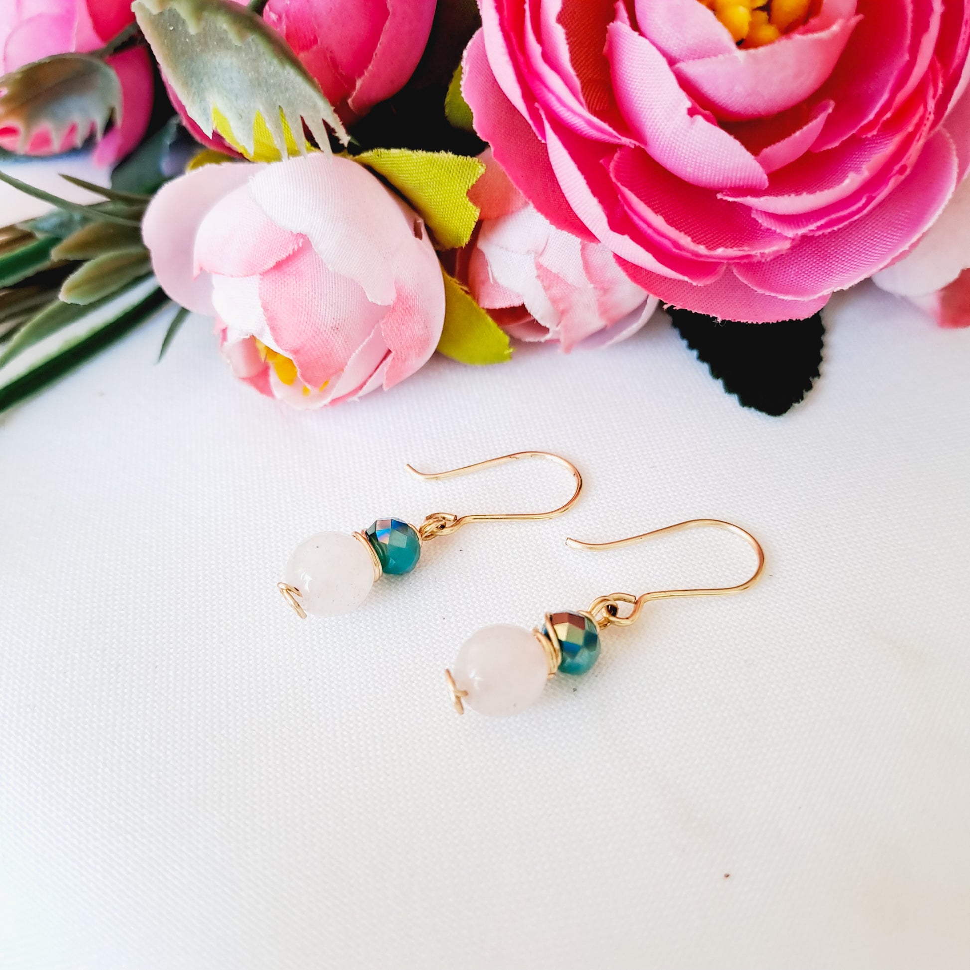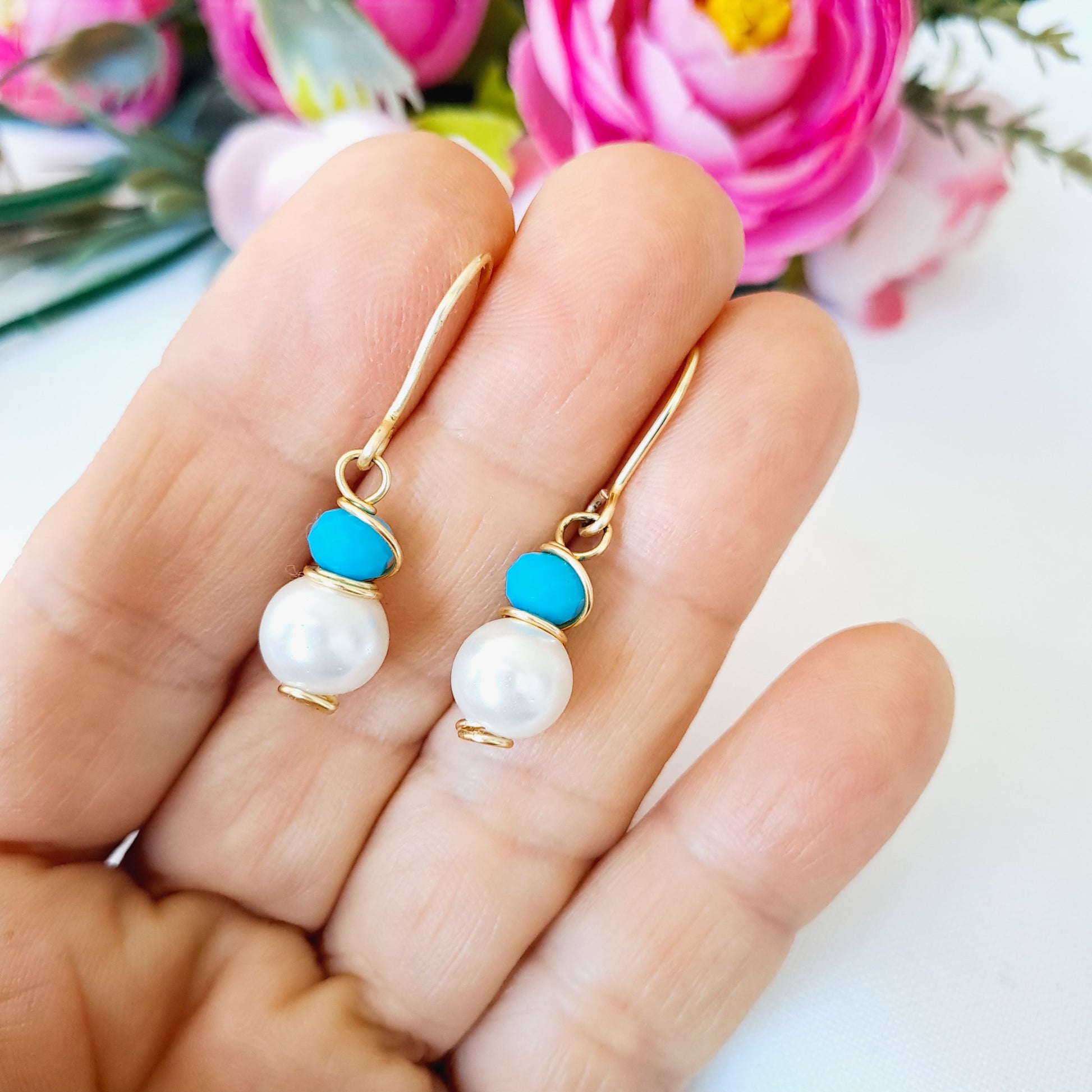 Cada aro lleva una piedra (o perla) de 8 milímetros y un cristal (o perla) de 6 milímetros, ambas engarzadas juntitas y colgando de un pequeño anzuelo.