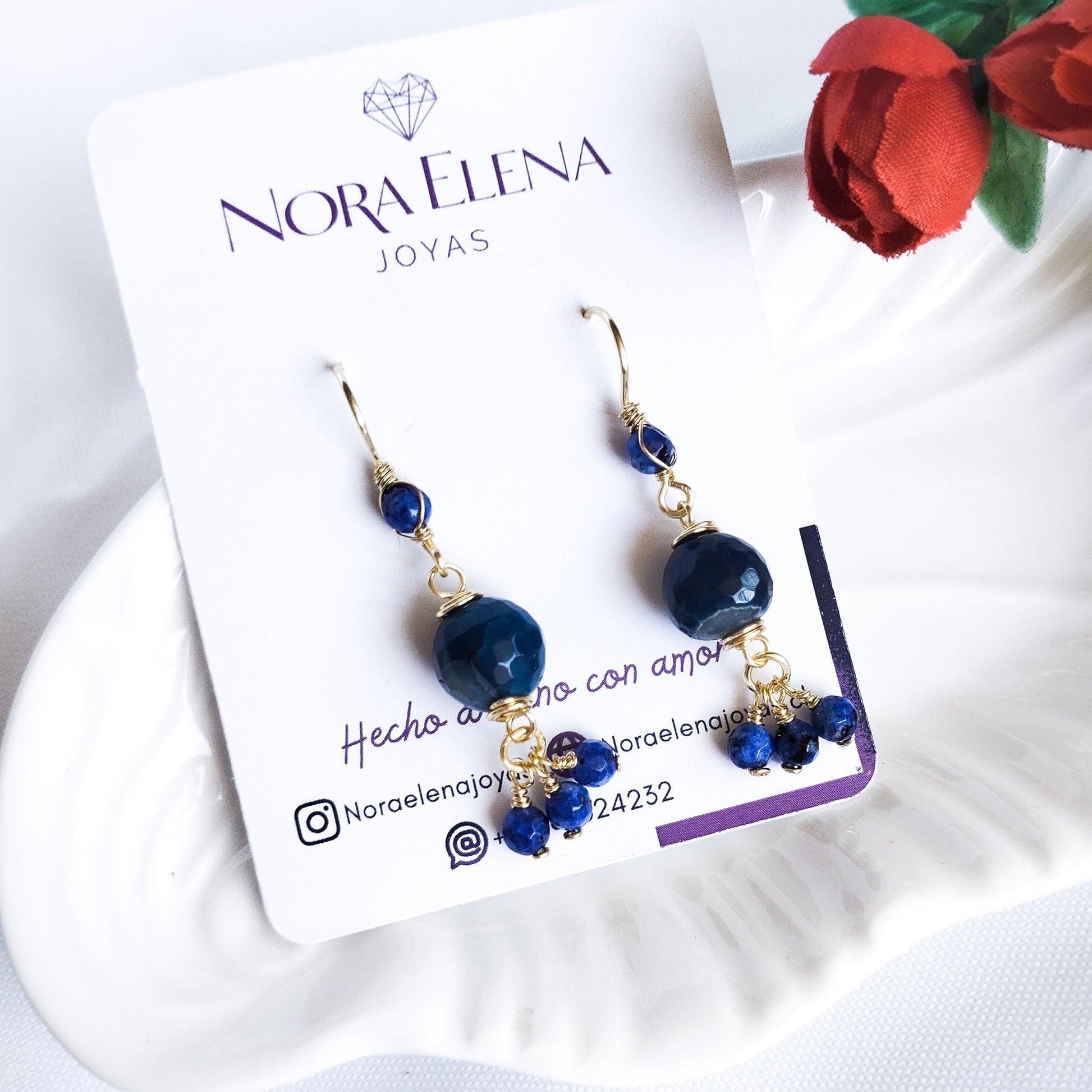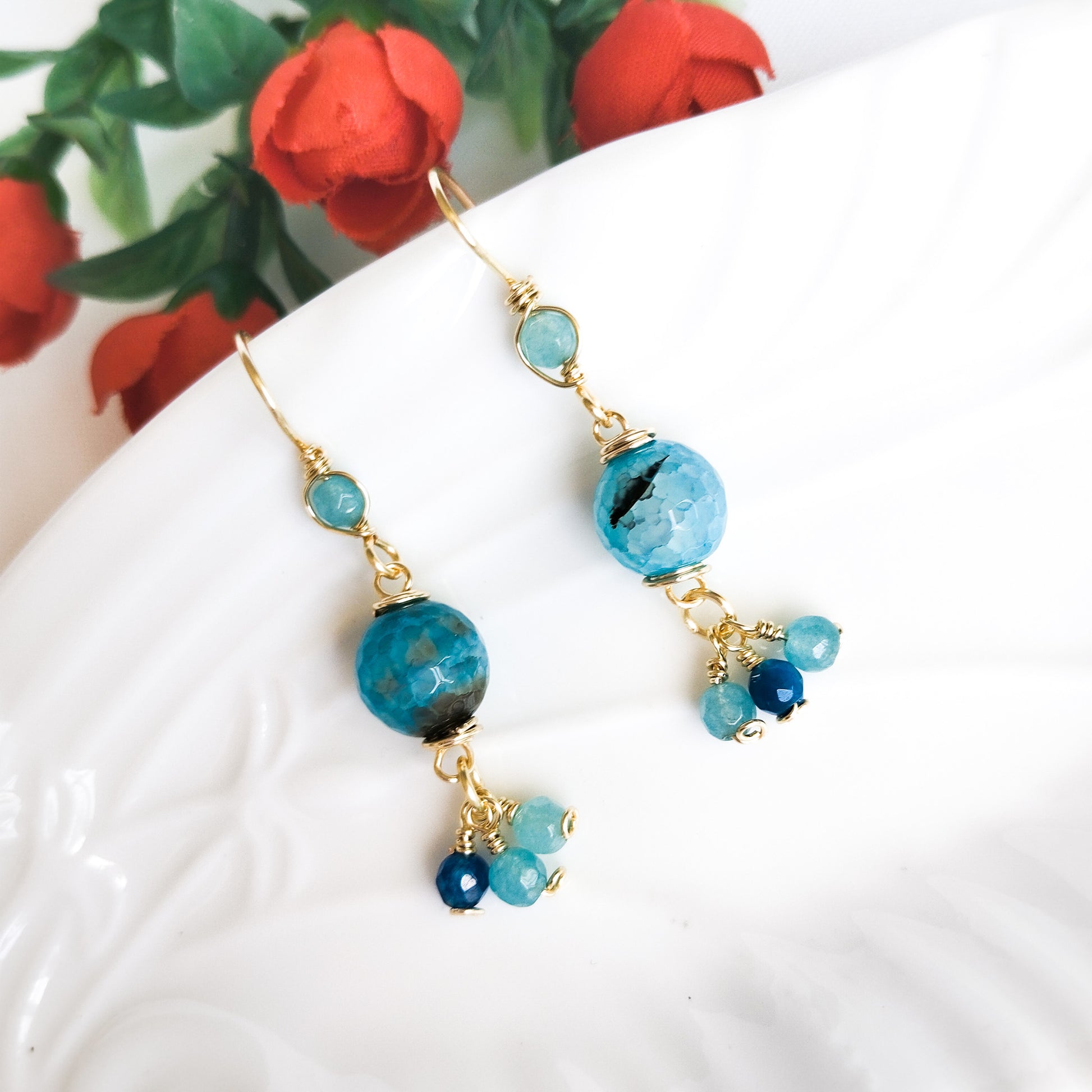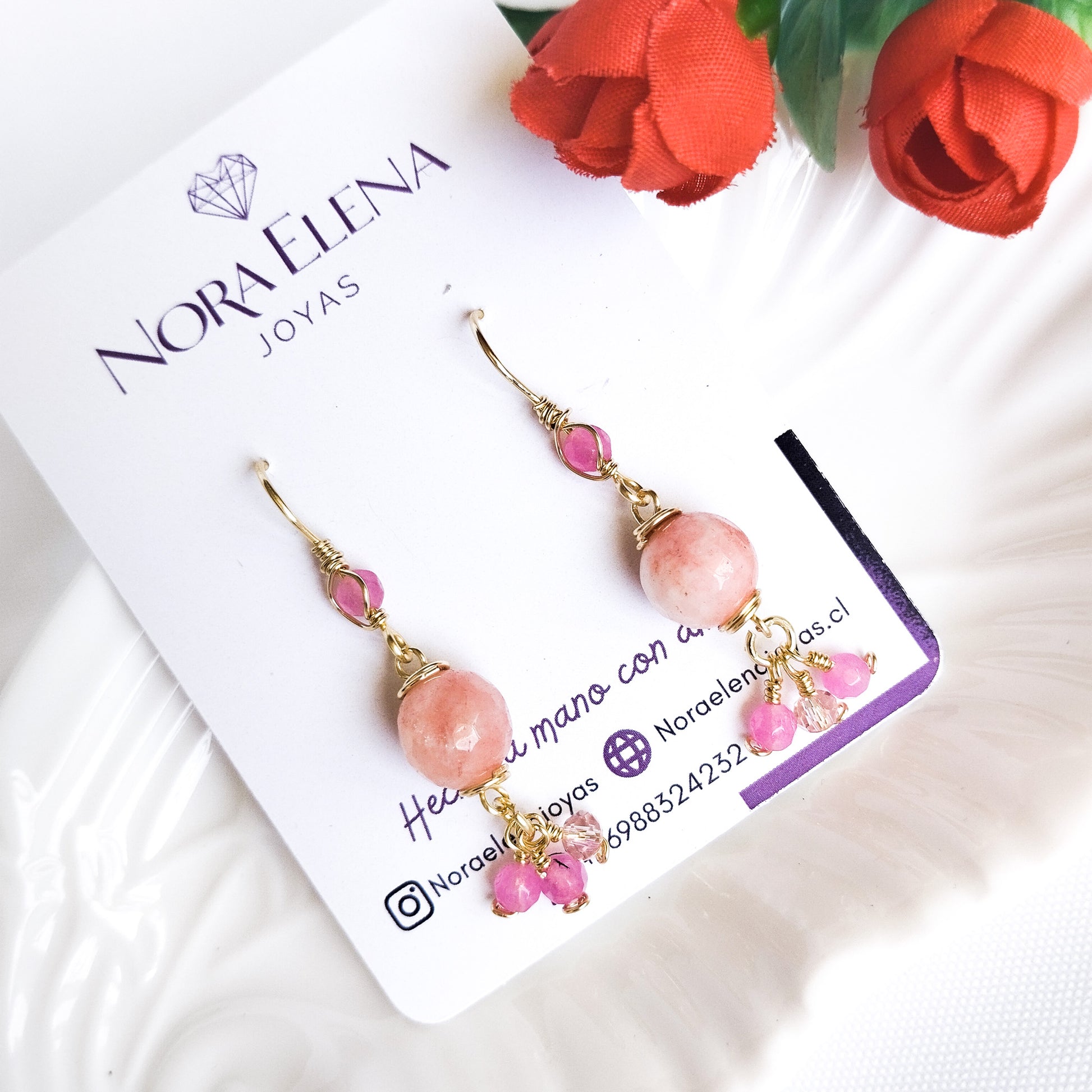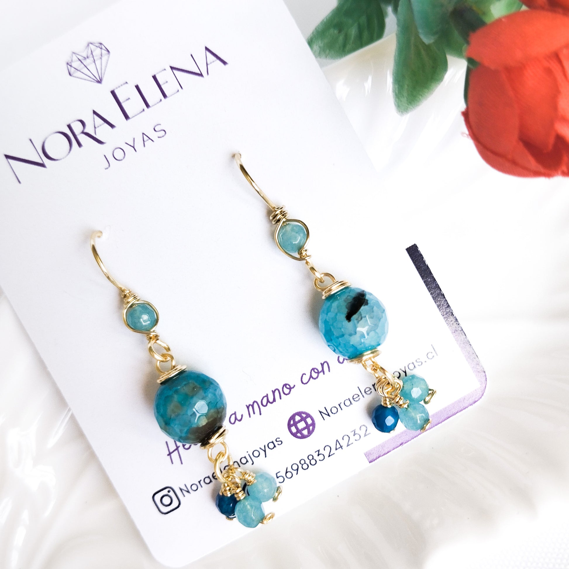 Aros Colgantes de Ágatas Naturales Y Anzuelo en Baño de Oro