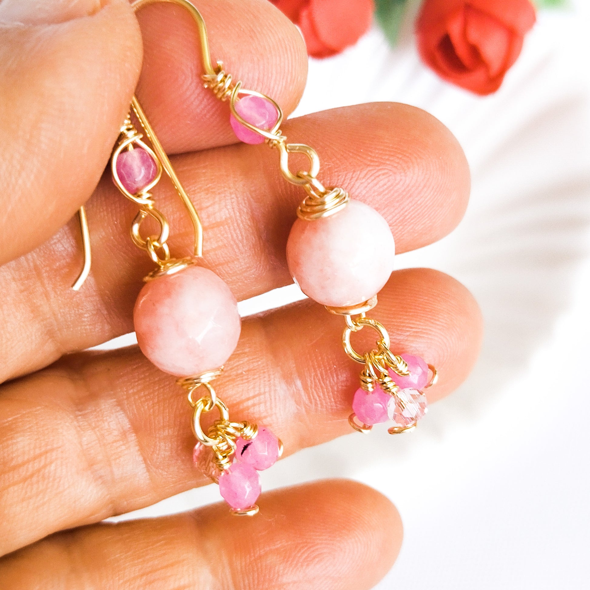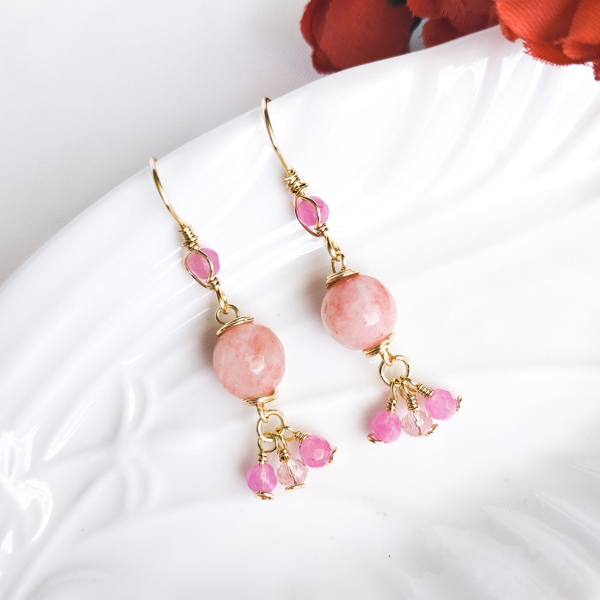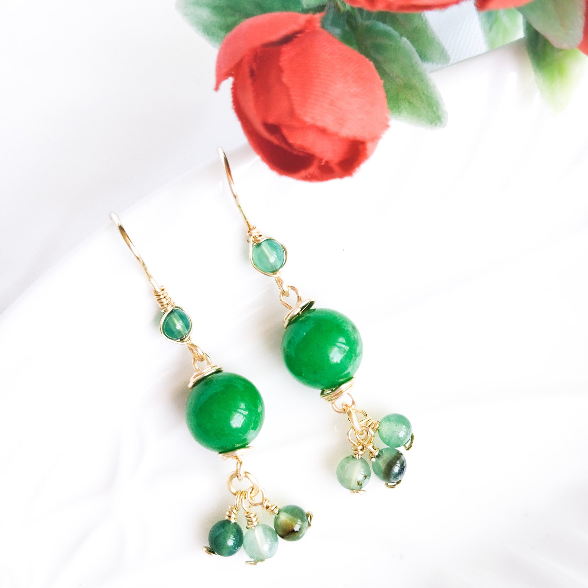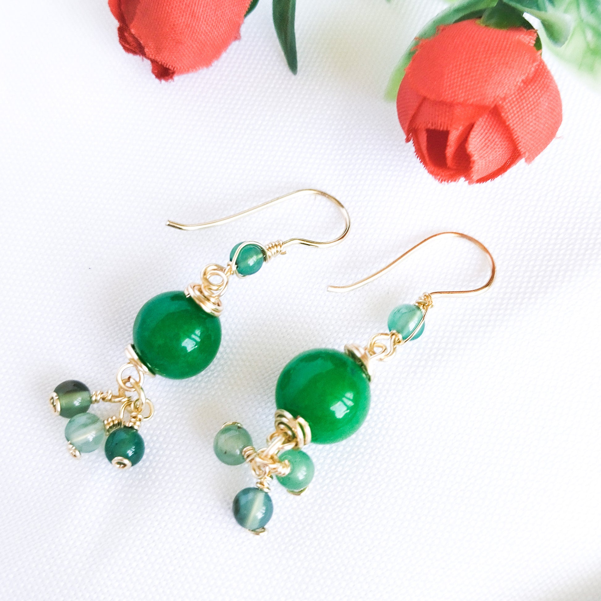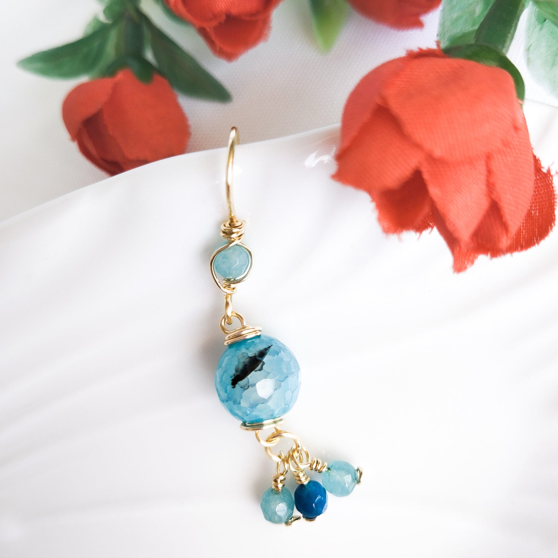Aros Colgantes de Ágatas Naturales Y Anzuelo en Baño de Oro