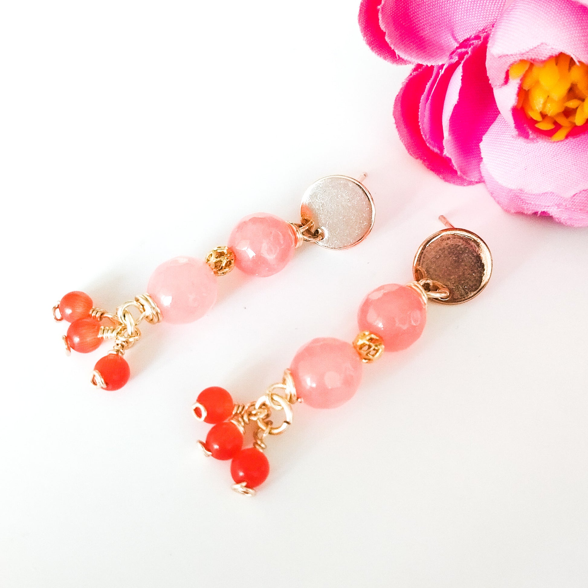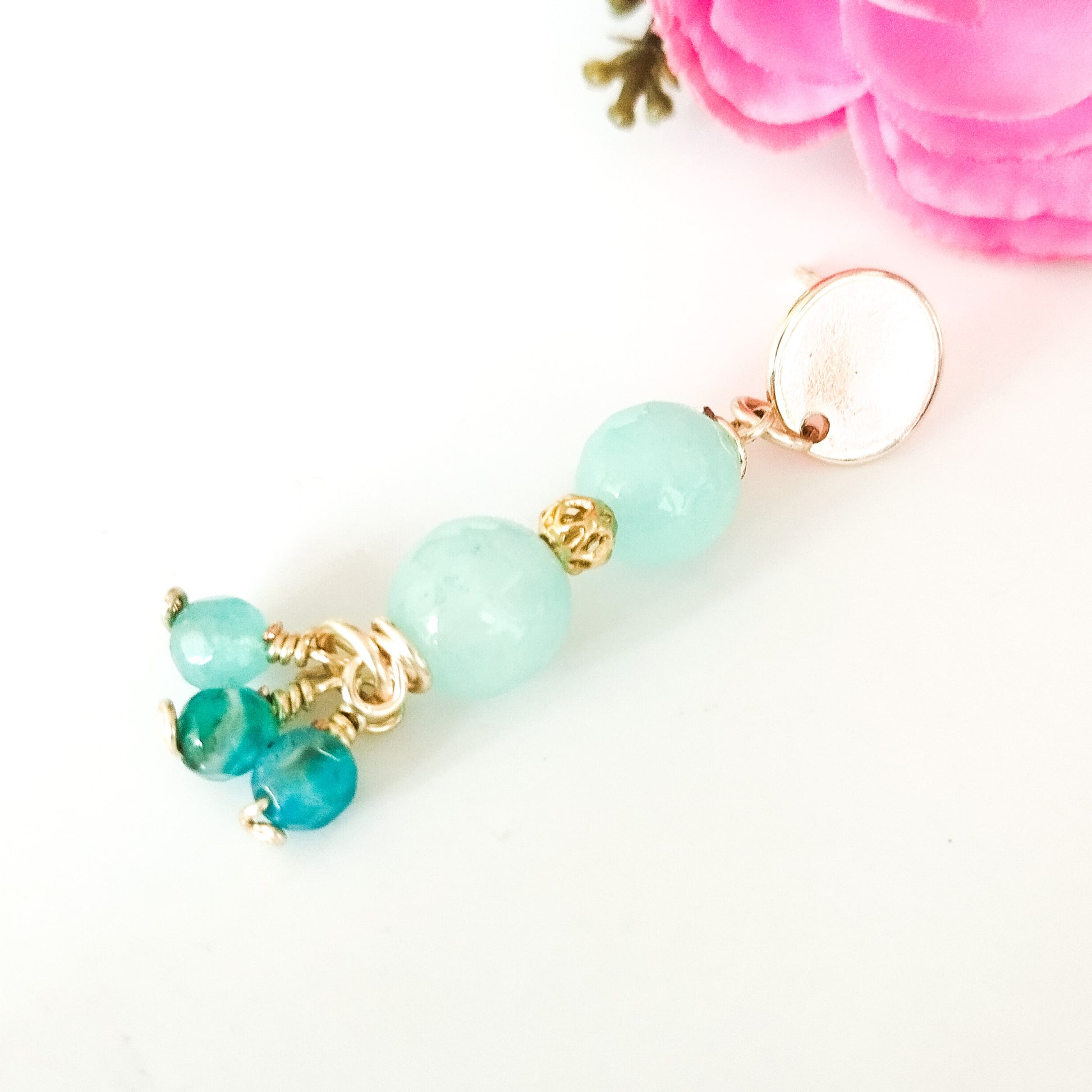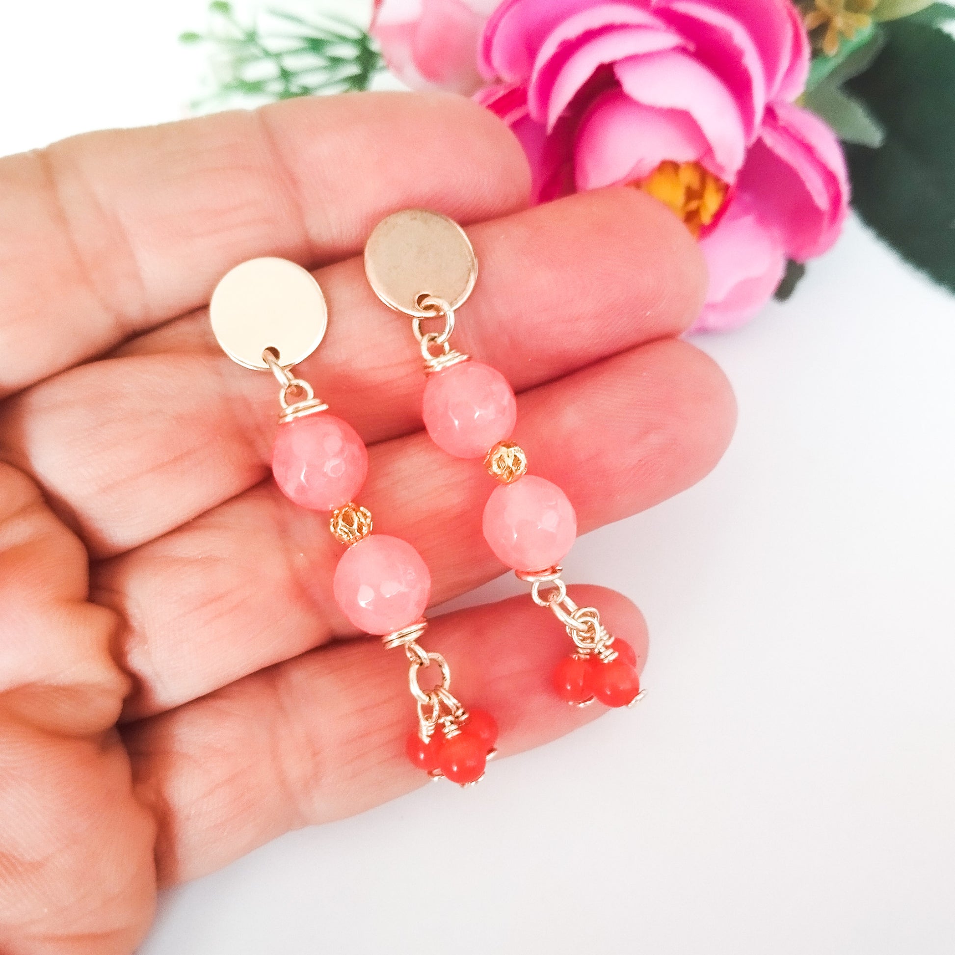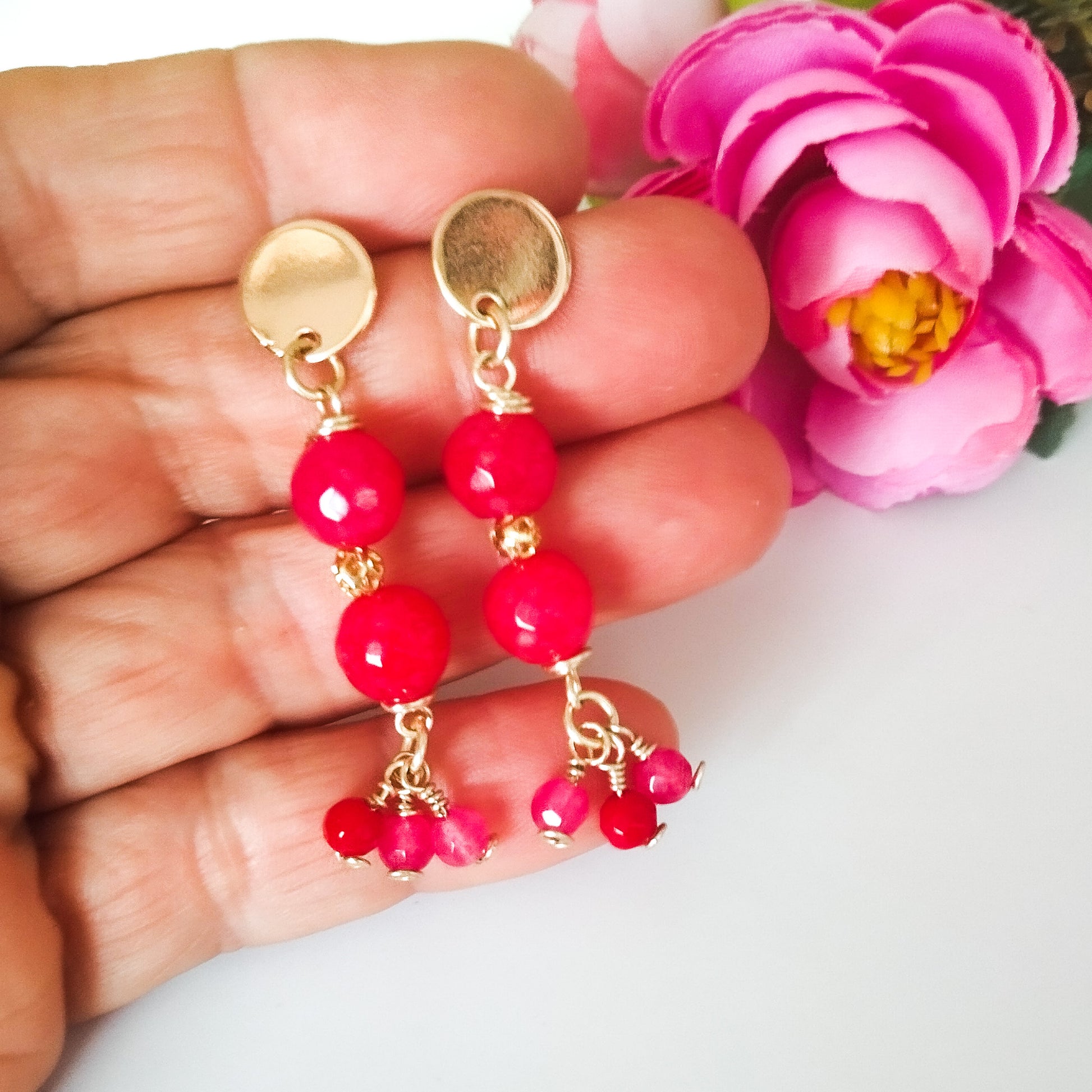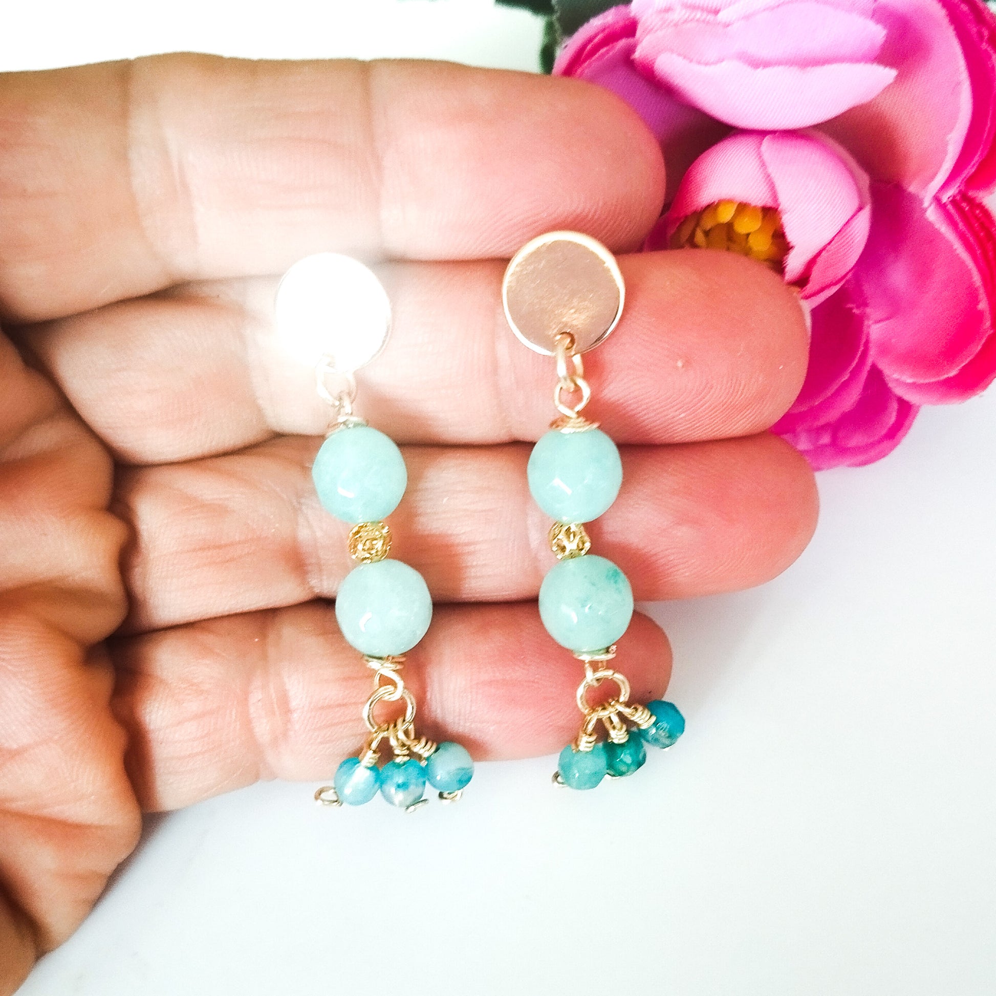 Aros Colgantes Largos Con Dos Piedras Ágatas Grandes Y Piedras Pequeñas Colgando