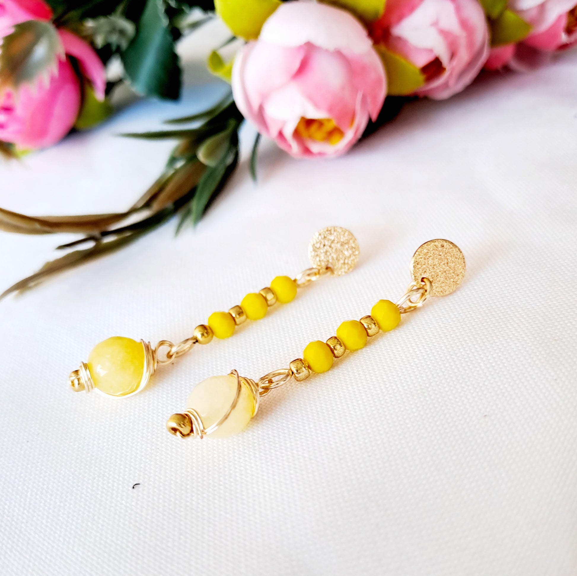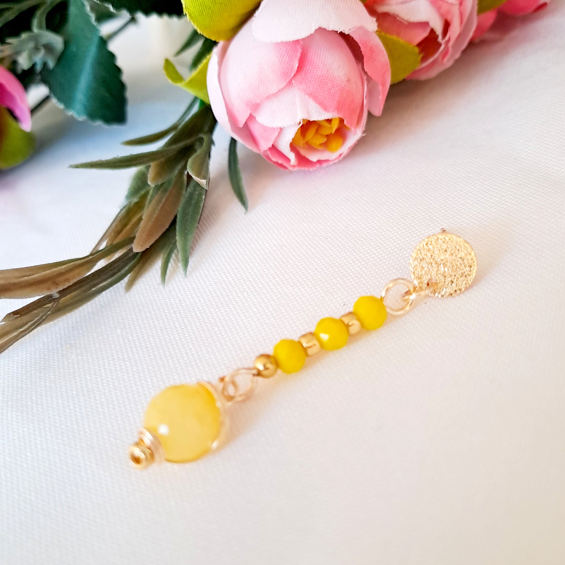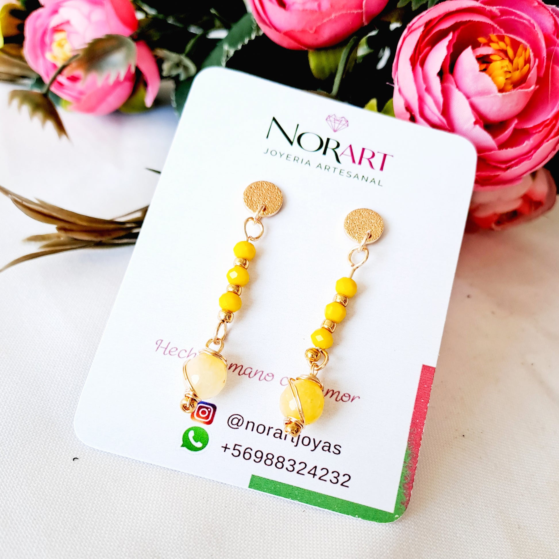 Aros Con Base Bañada en Oro Con Tres Cristales Y Agata Colgante