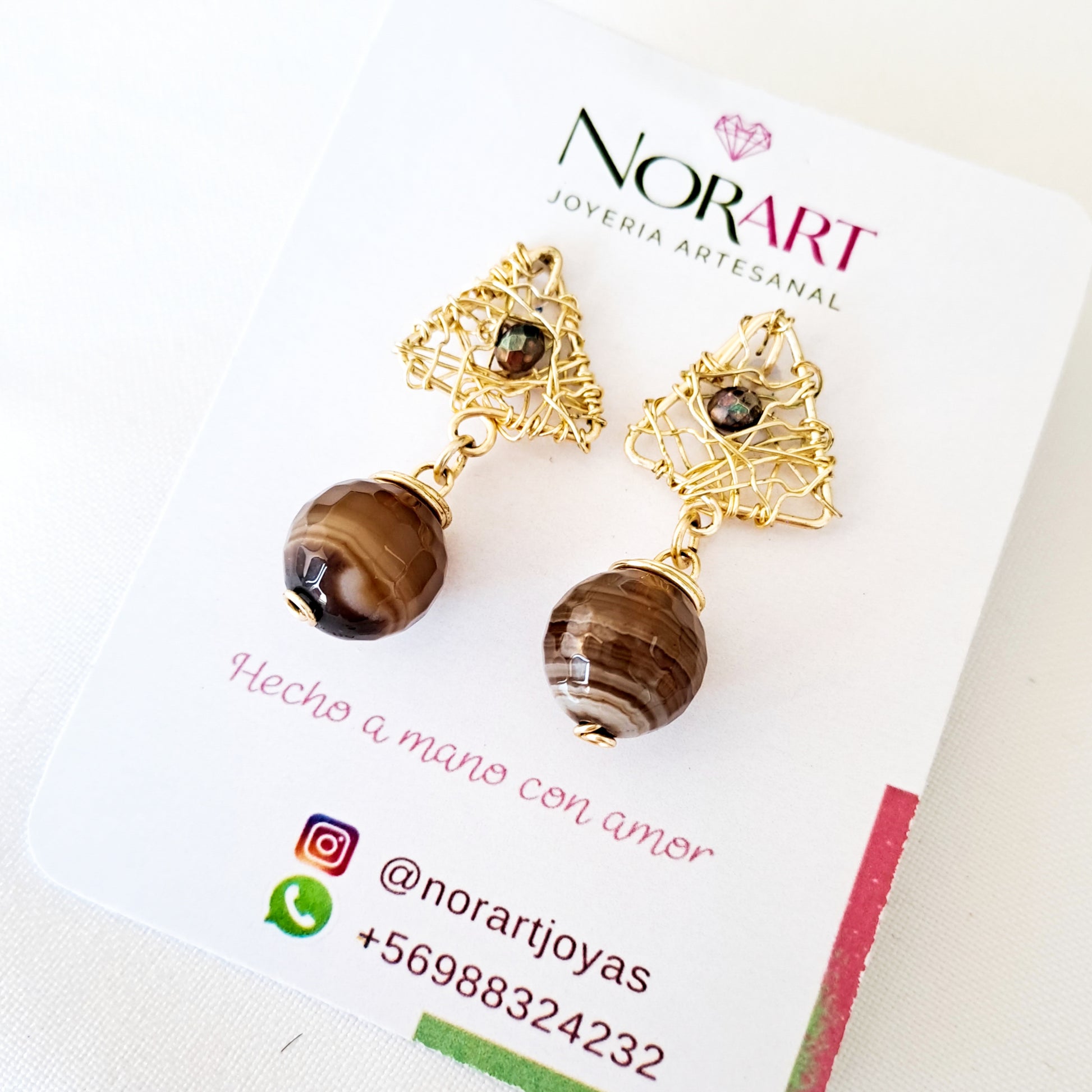 Aros Con Base en Forma de Triángulo Y Piedra de Ágata Colgante