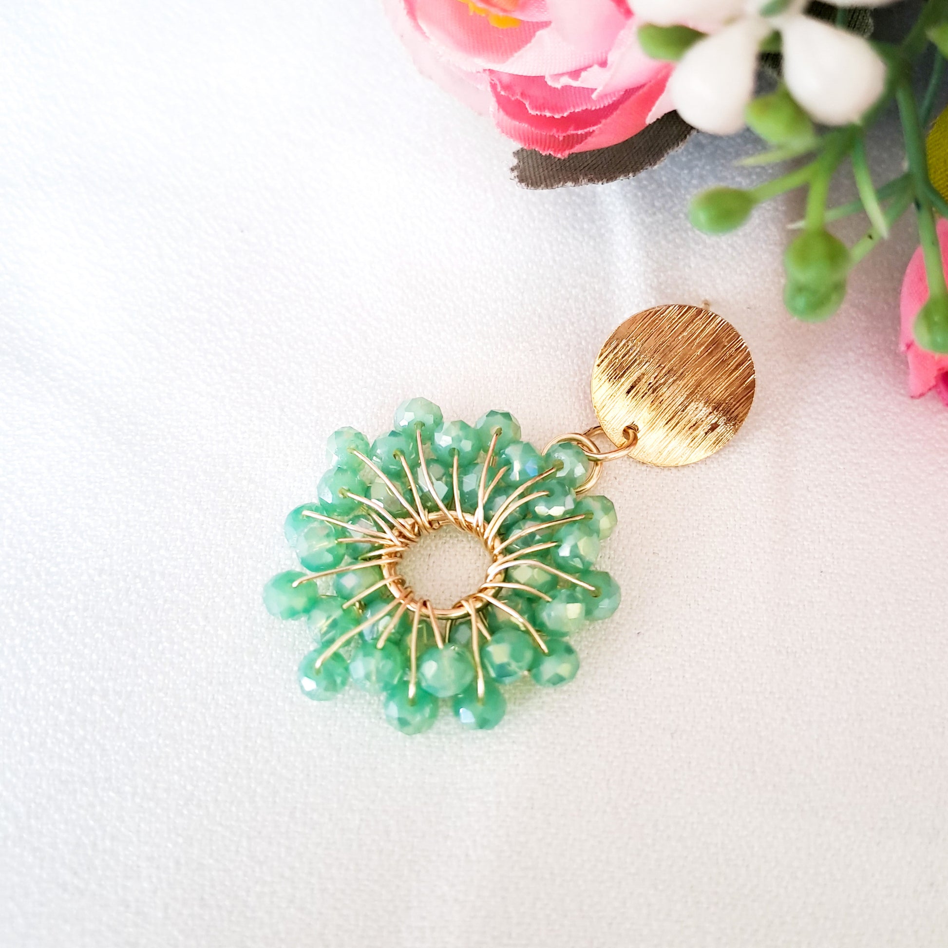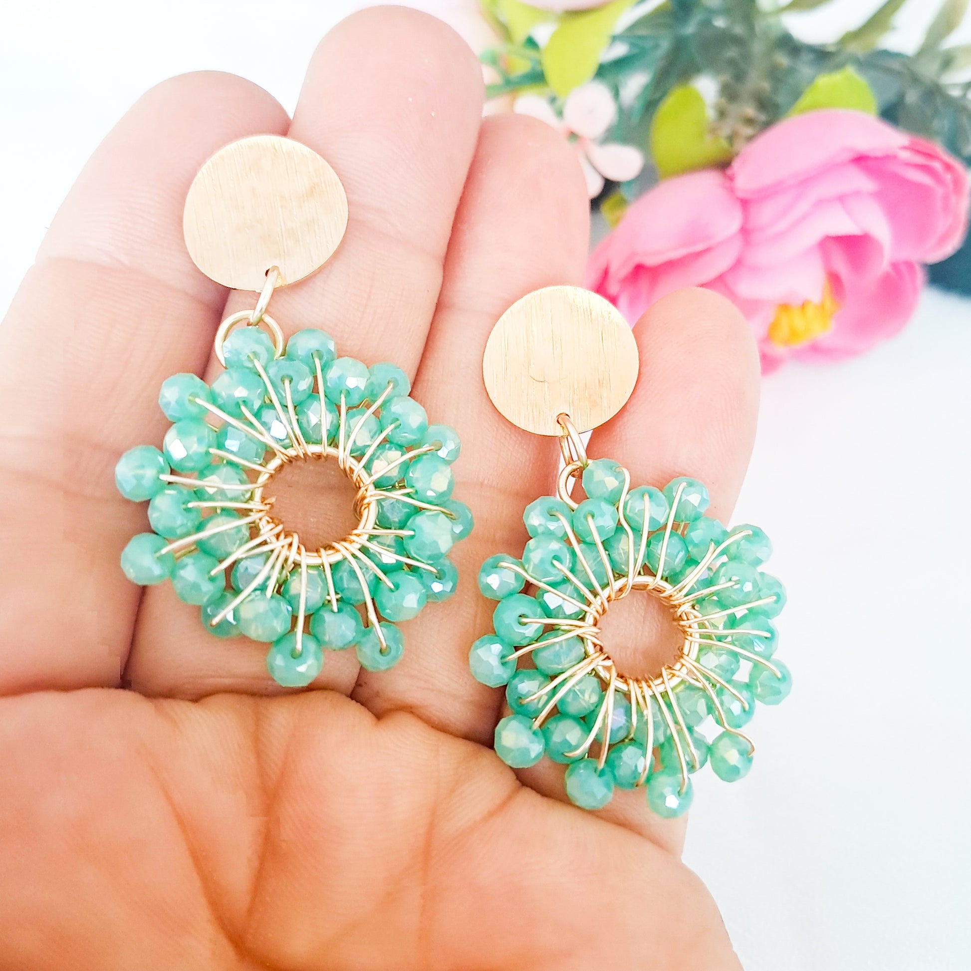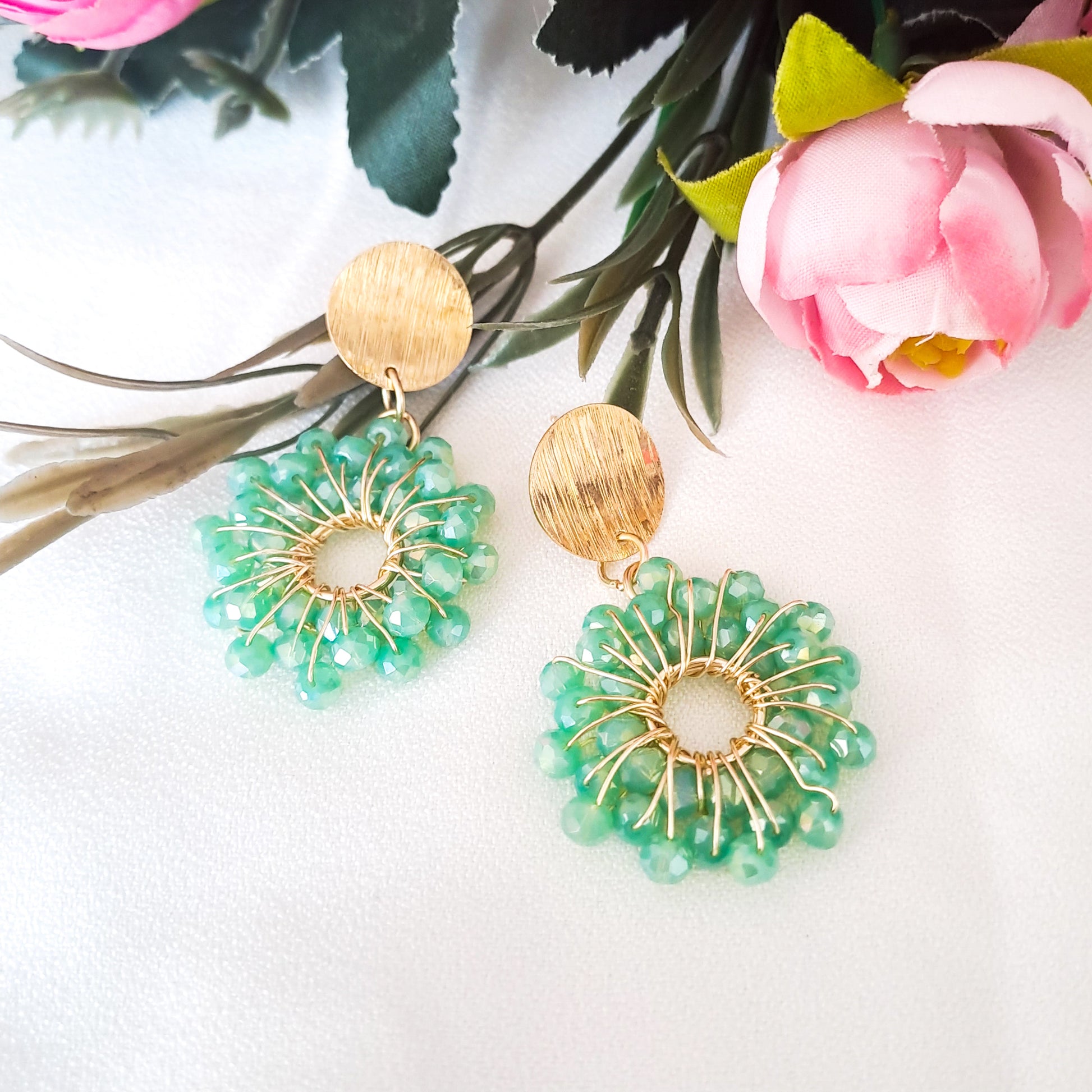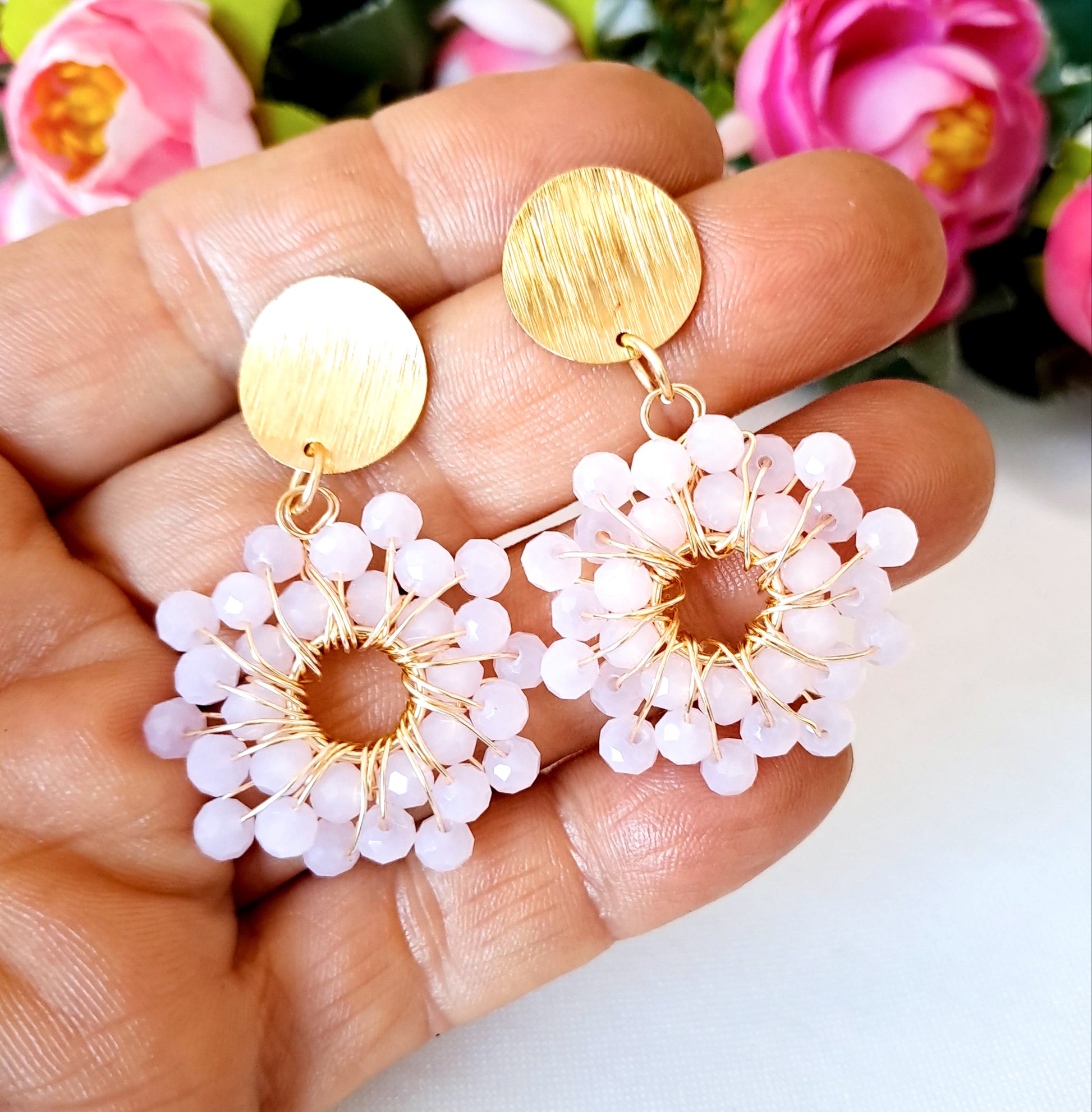 Aros Con Forma de Flor y Base con Baño de Oro