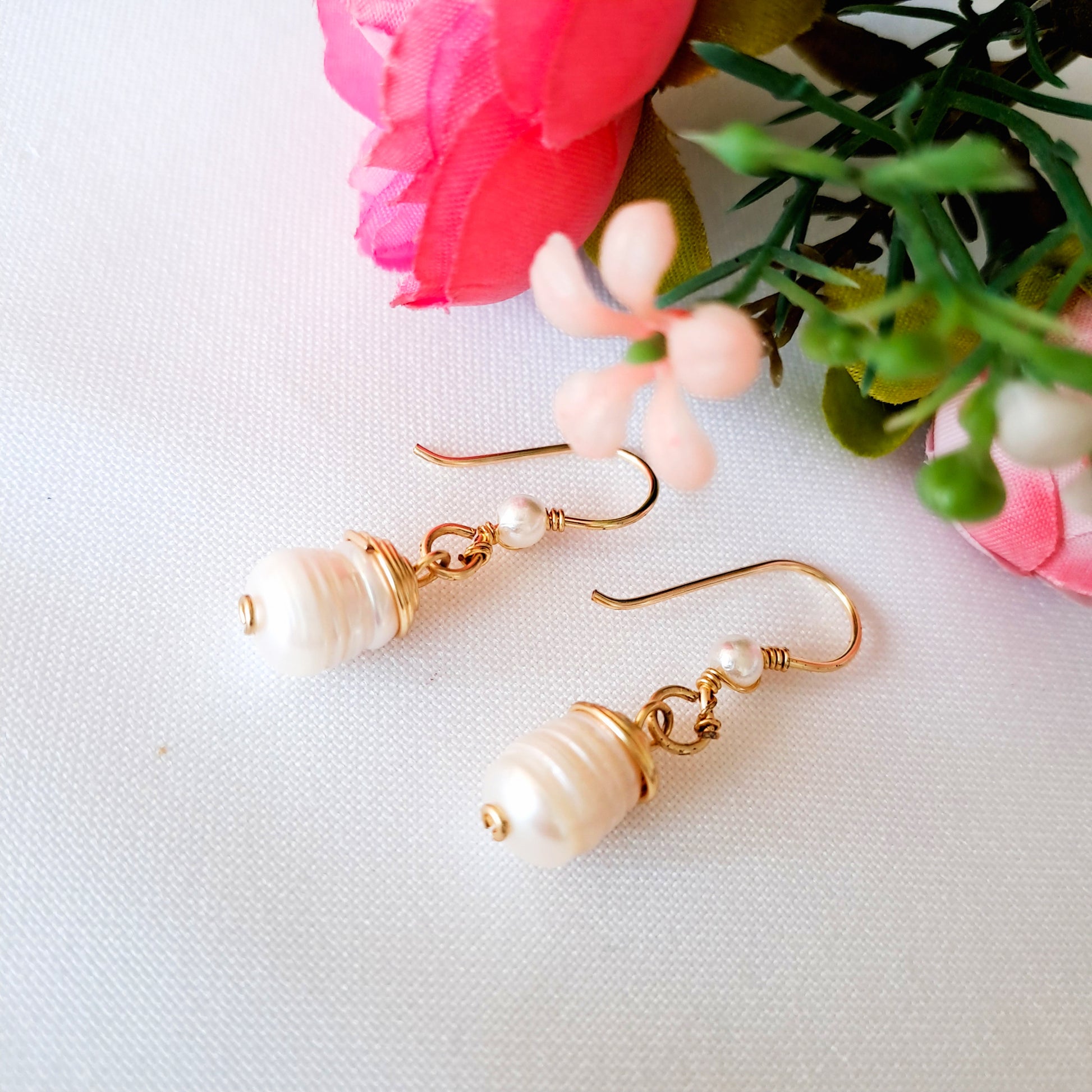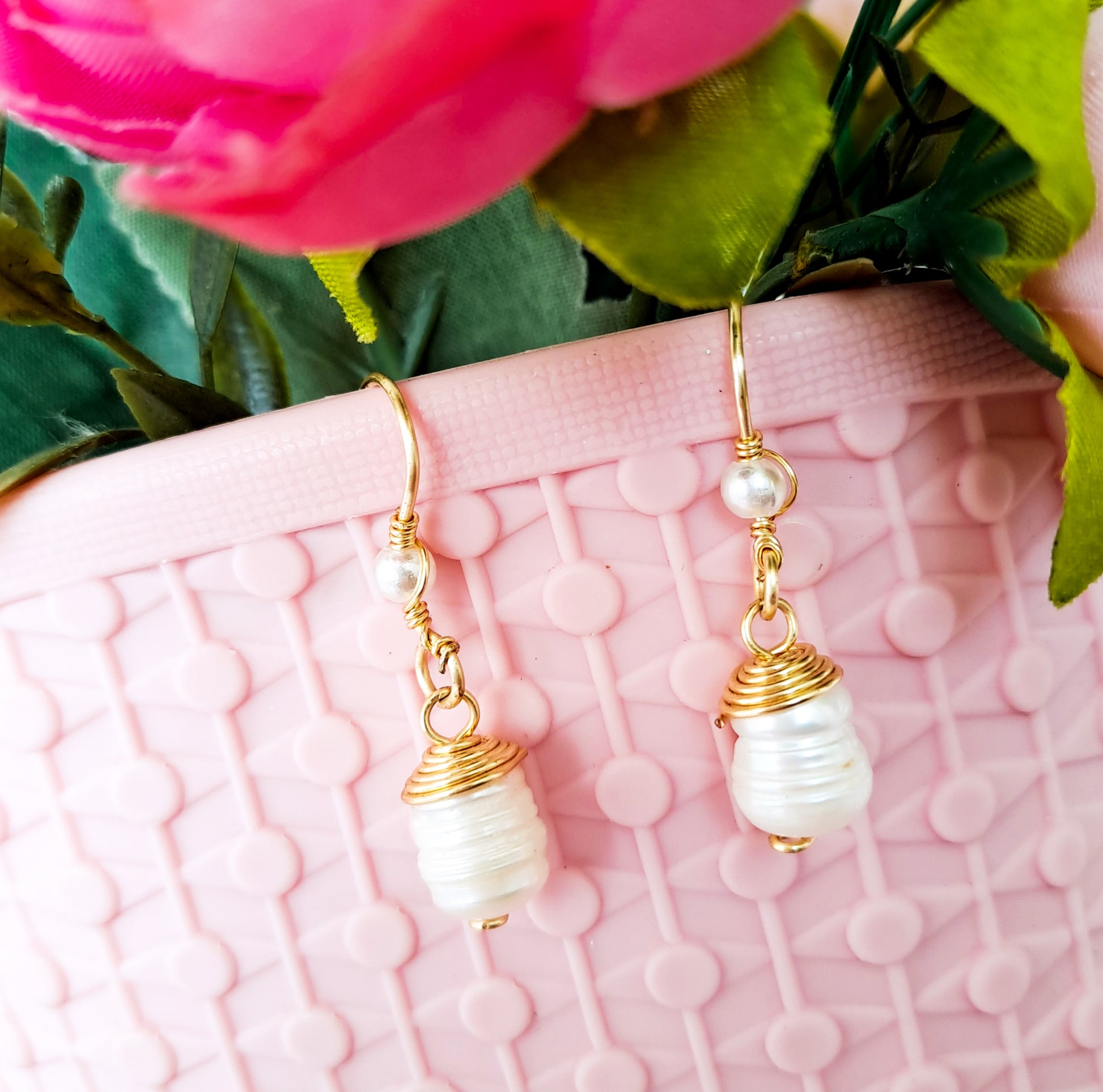 Aros de Perla de Río Engarzada Con Alambre Y Anzuelo