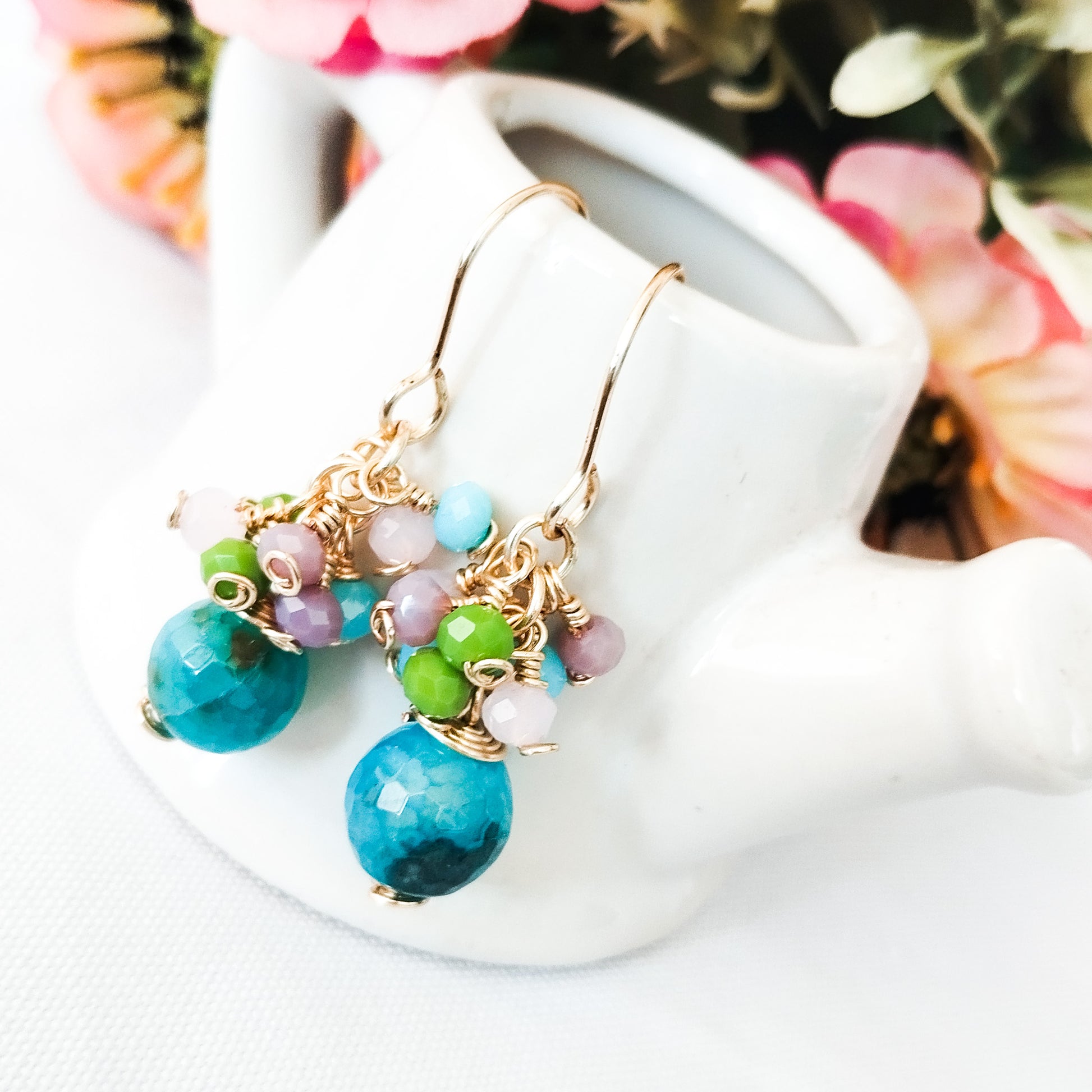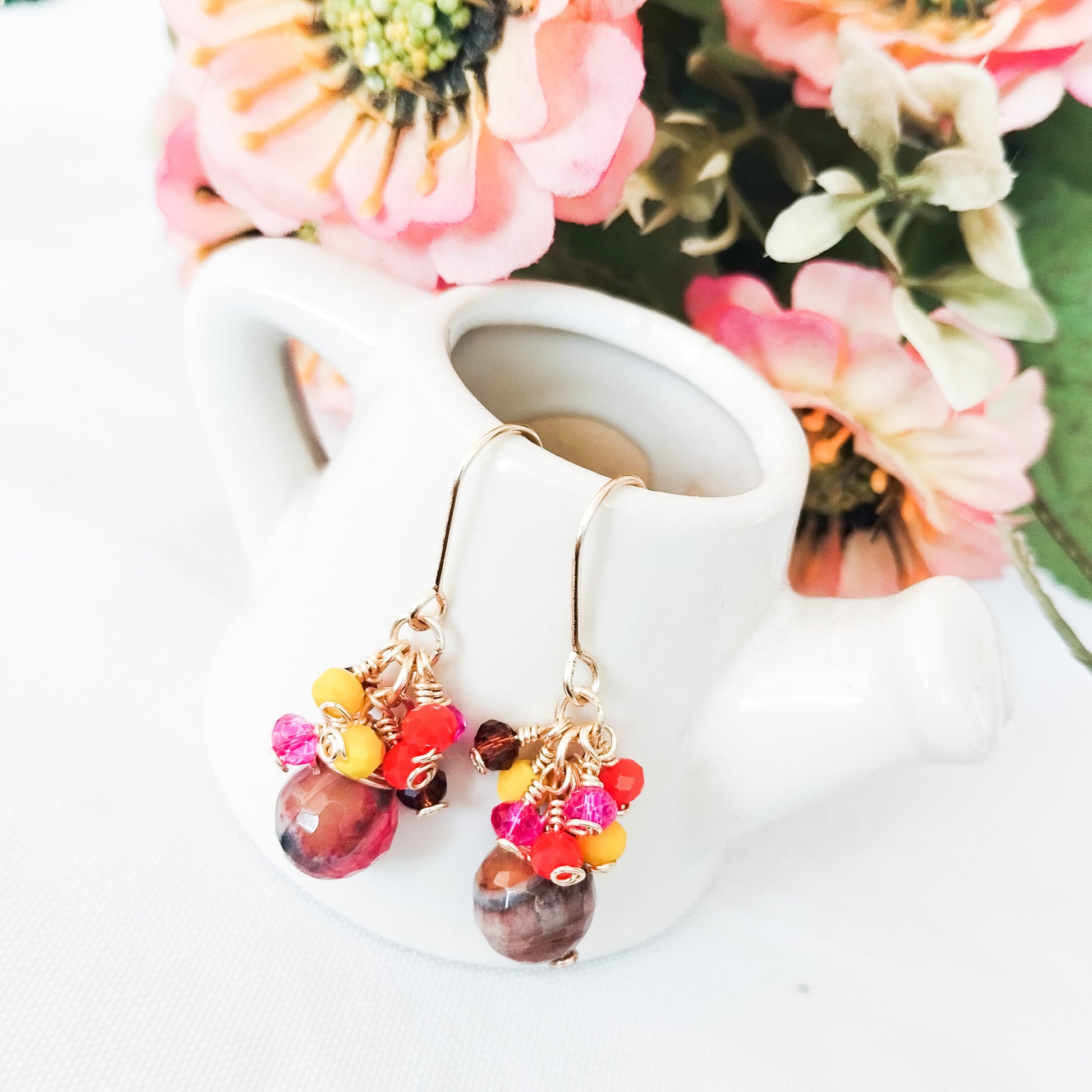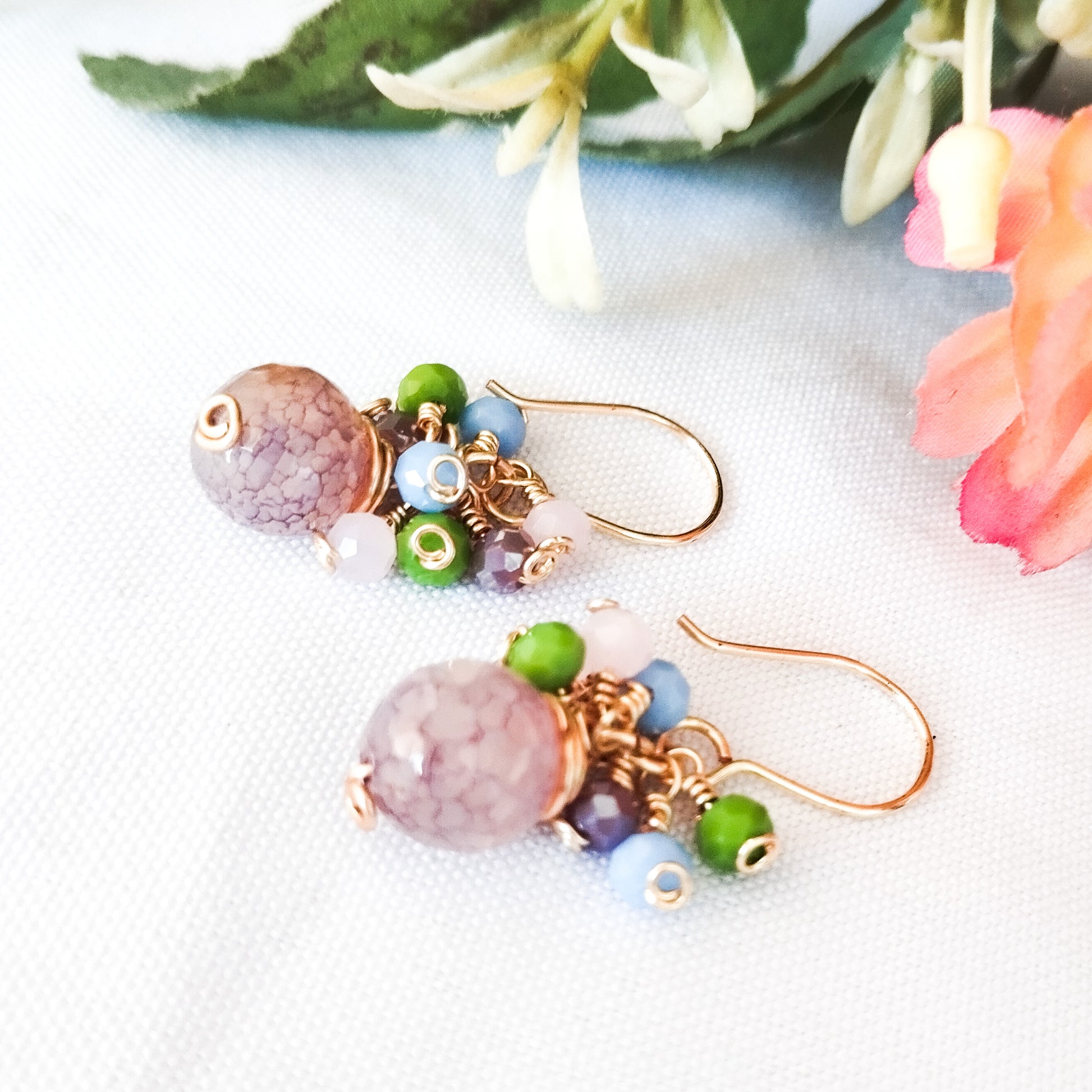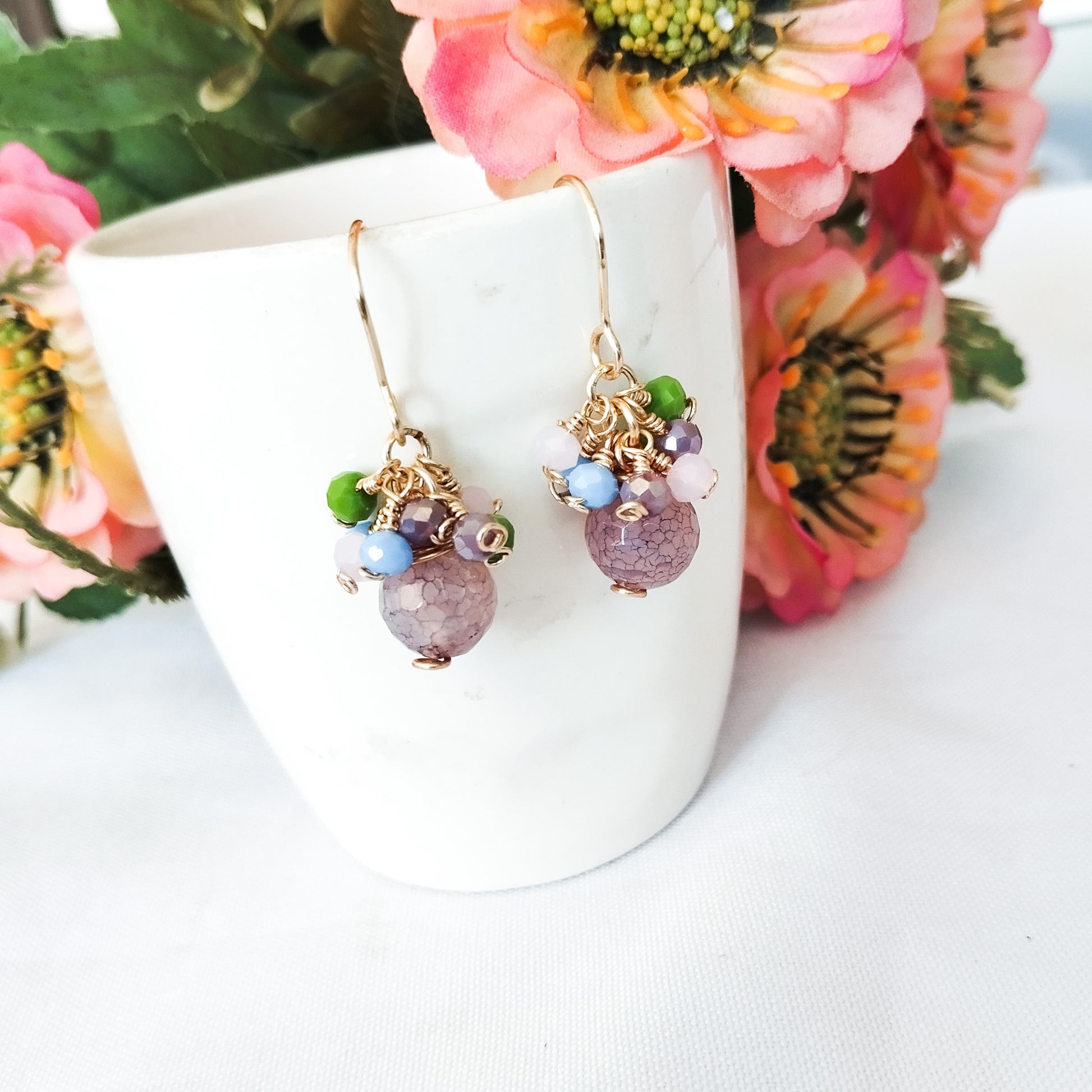 Aros de Una Ágata Natural Grande Y Pequeños Cristales Colgantes