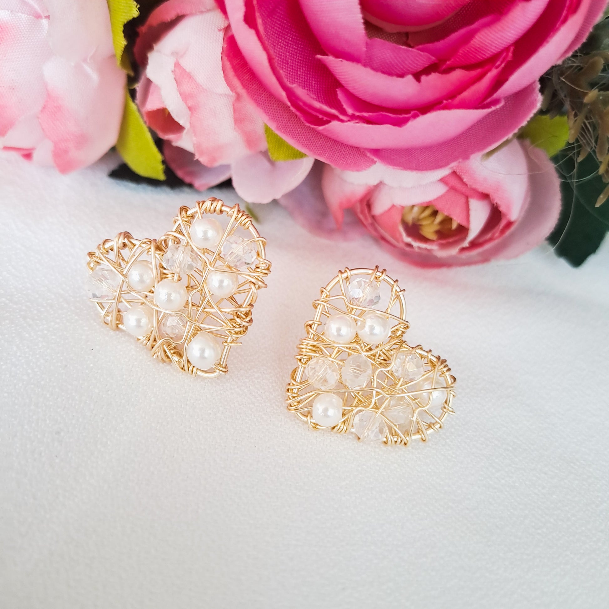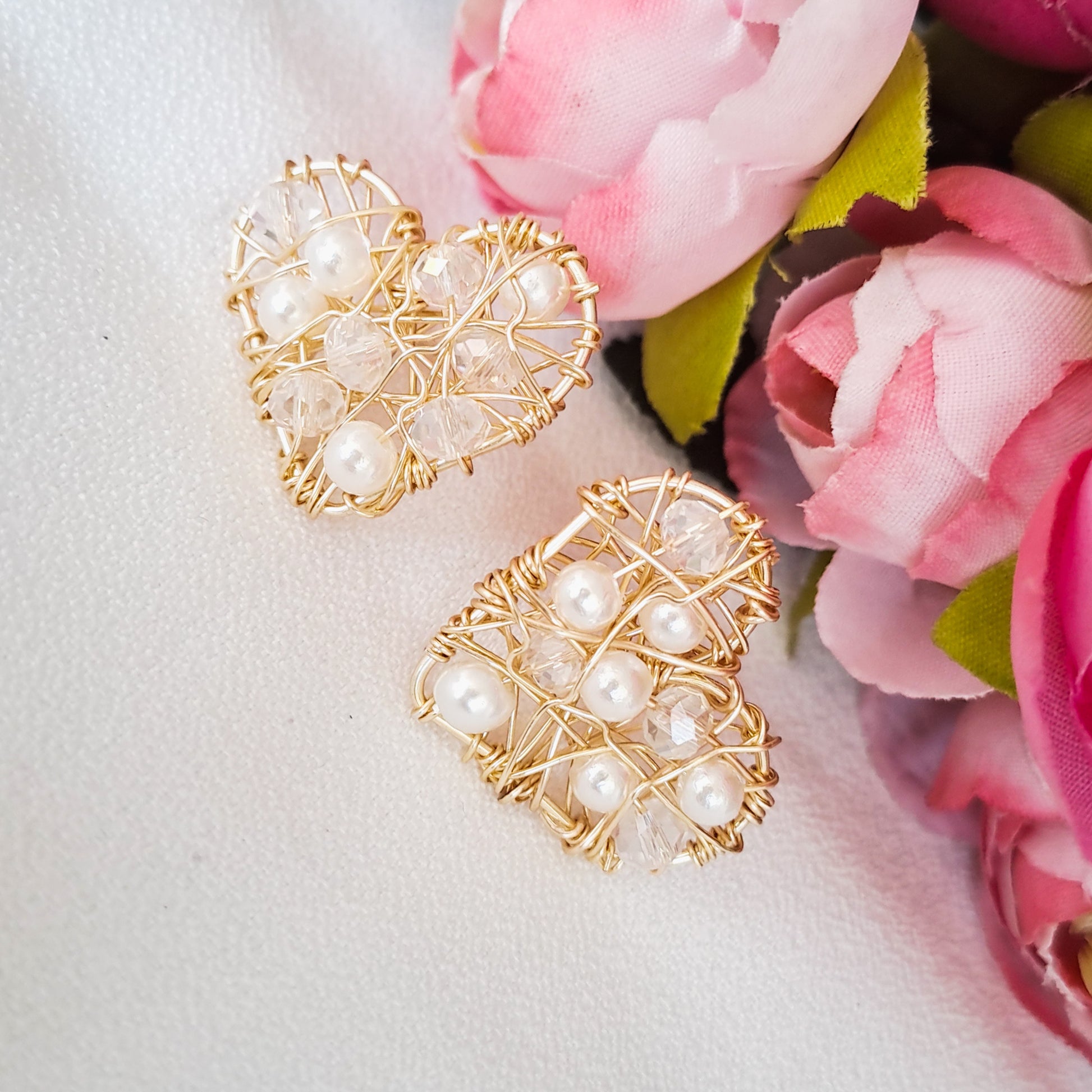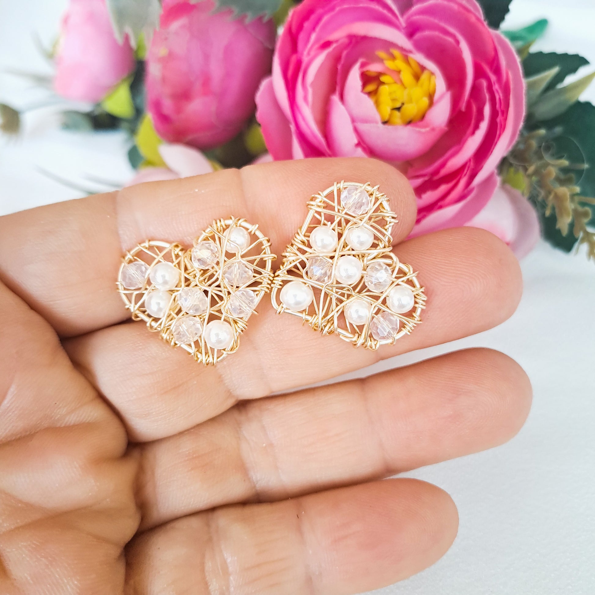 Aros en Forma de Corazón Con Cristales Checos y Perlas