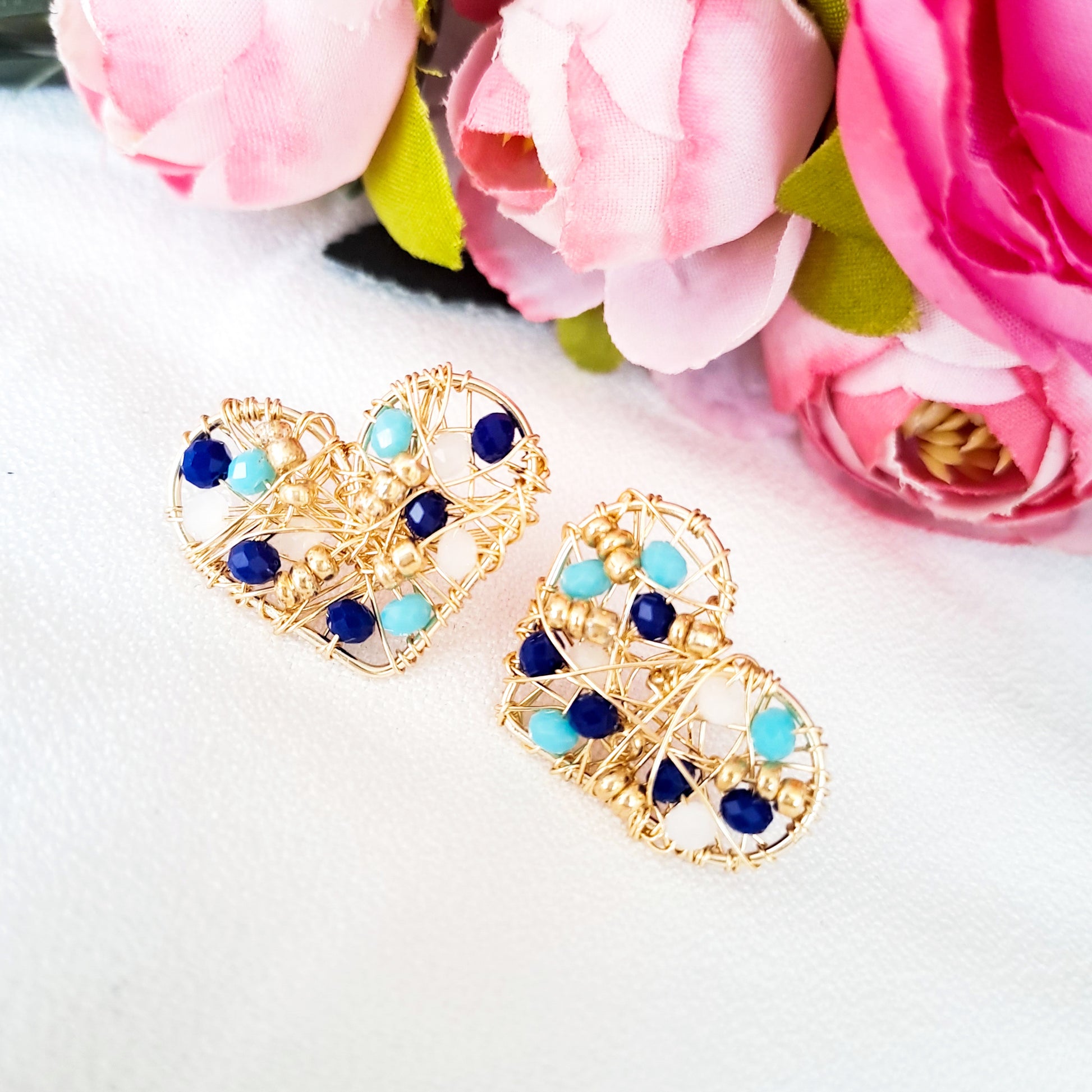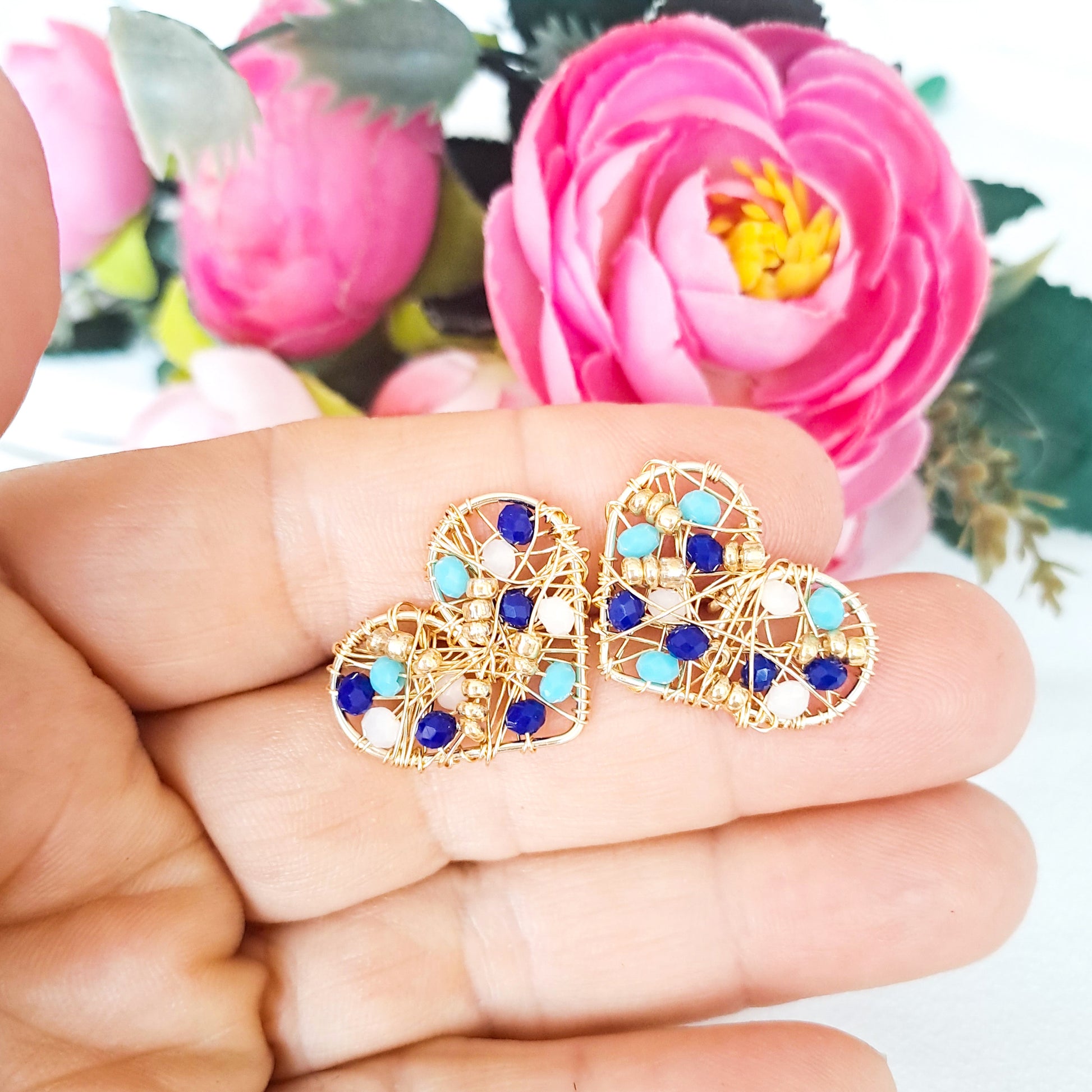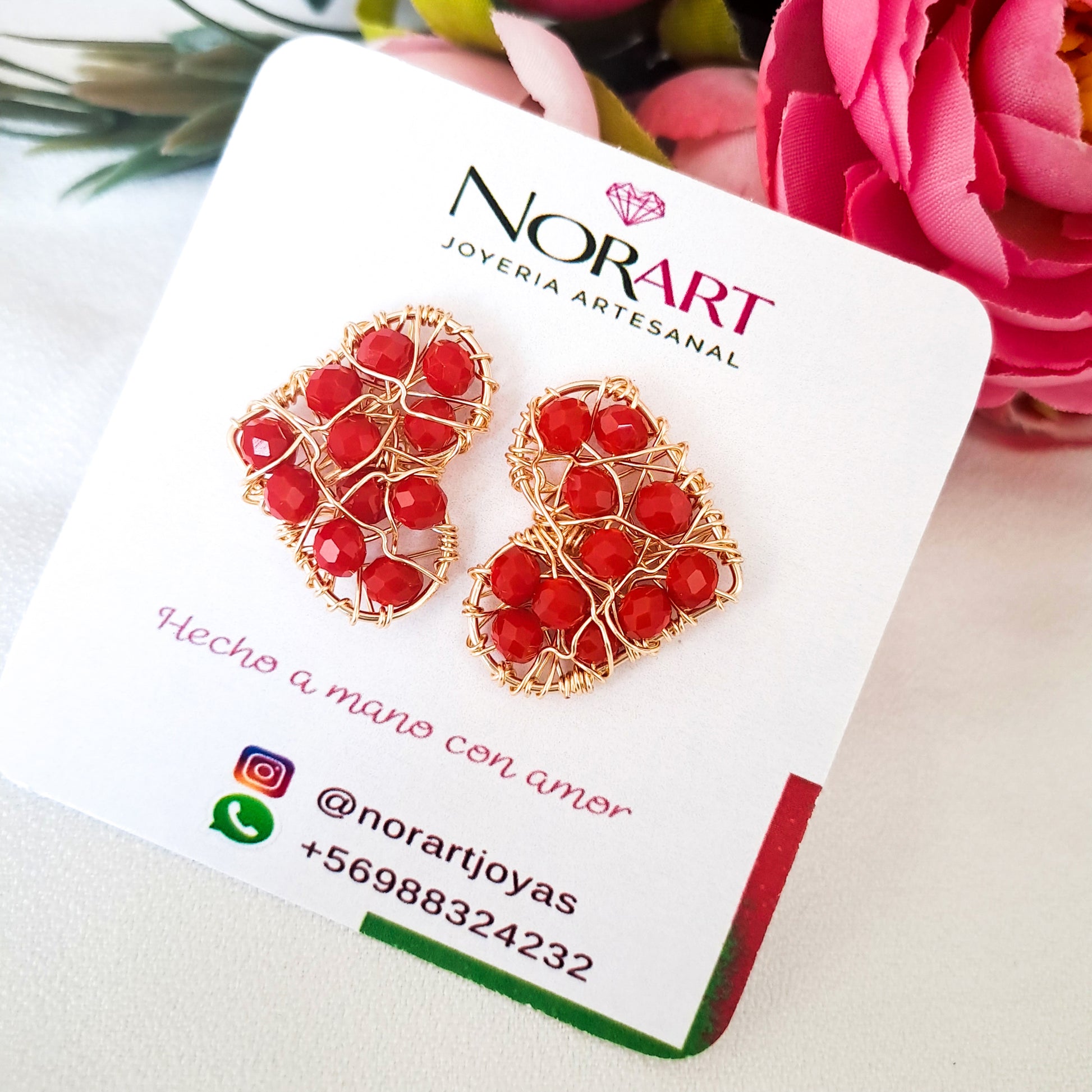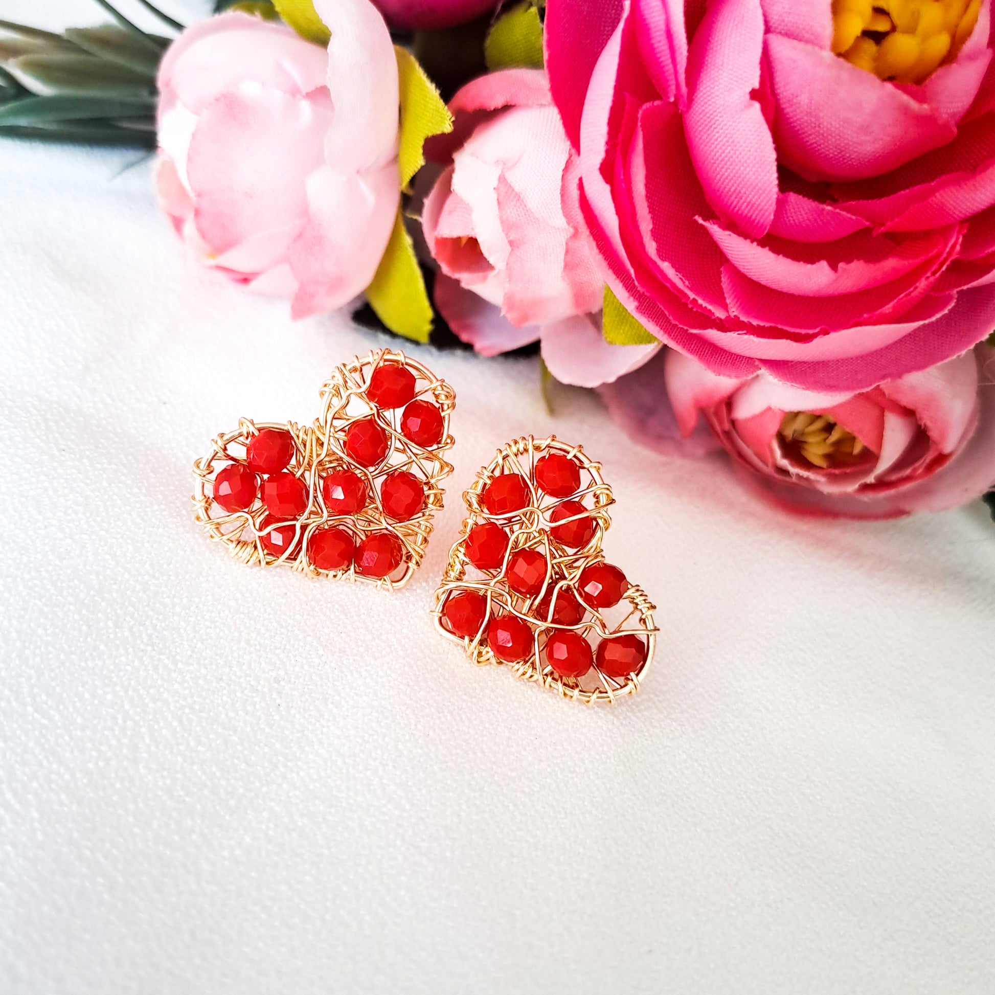 Aros en Forma de Corazón Con Cristales Checos y Perlas