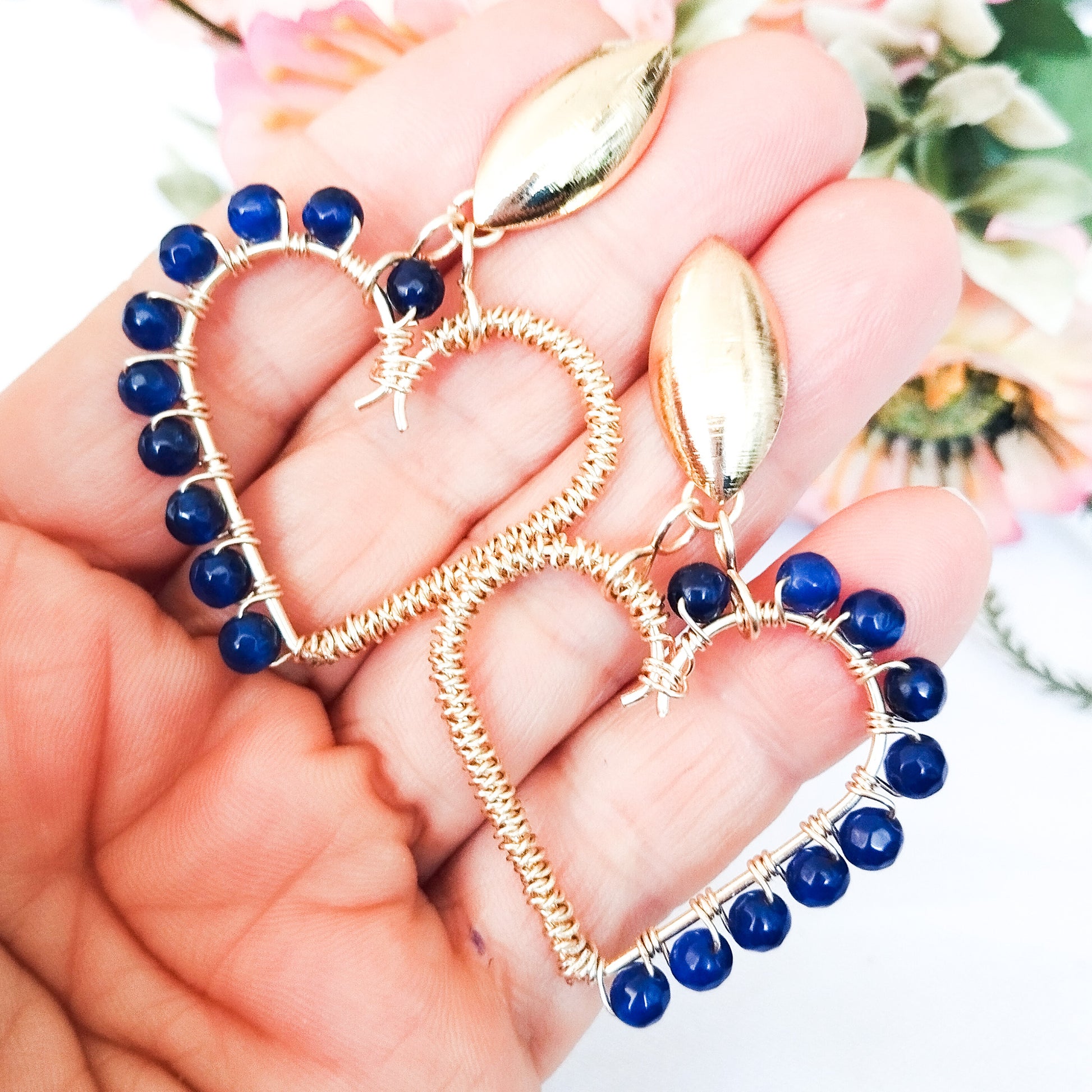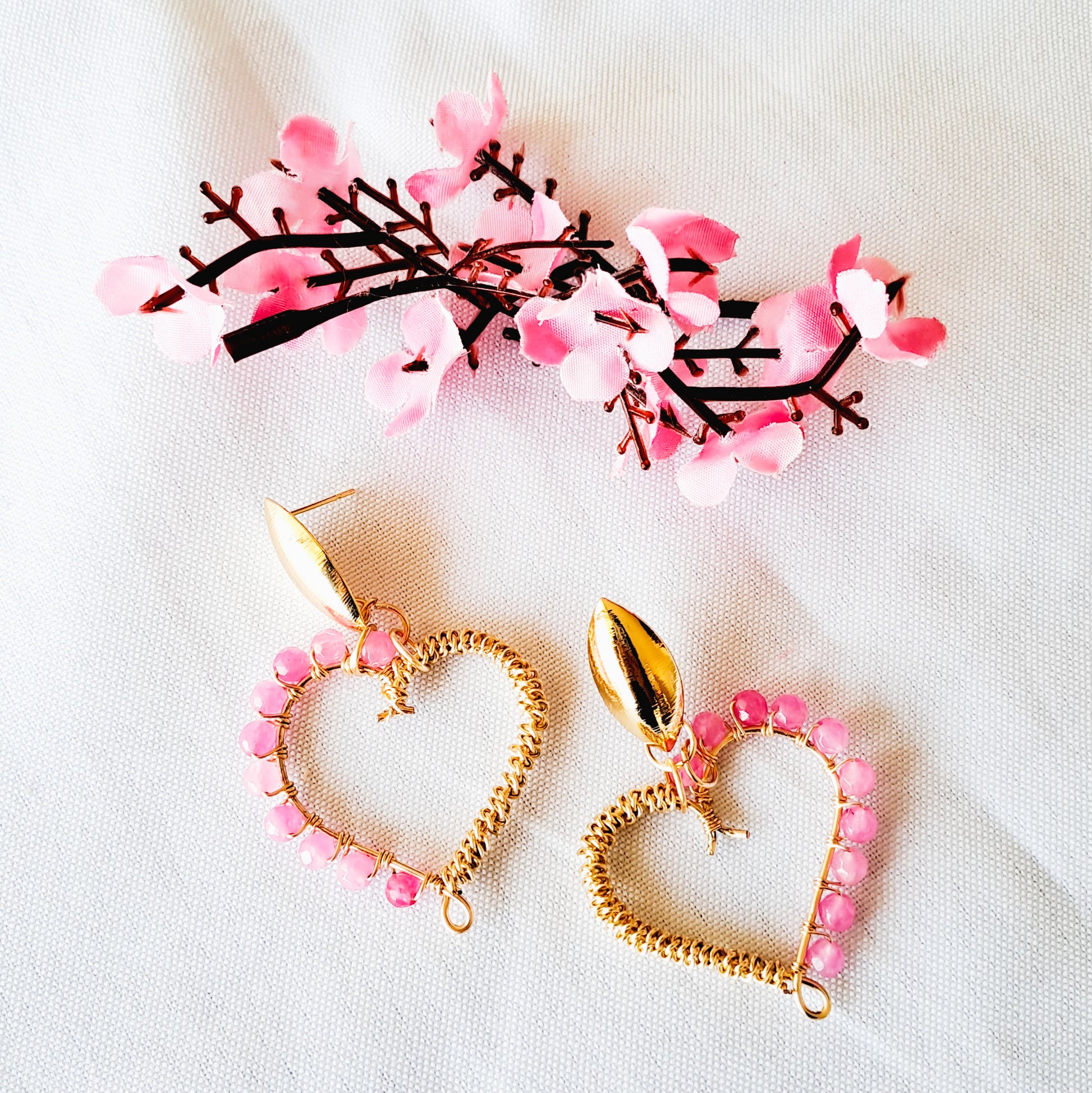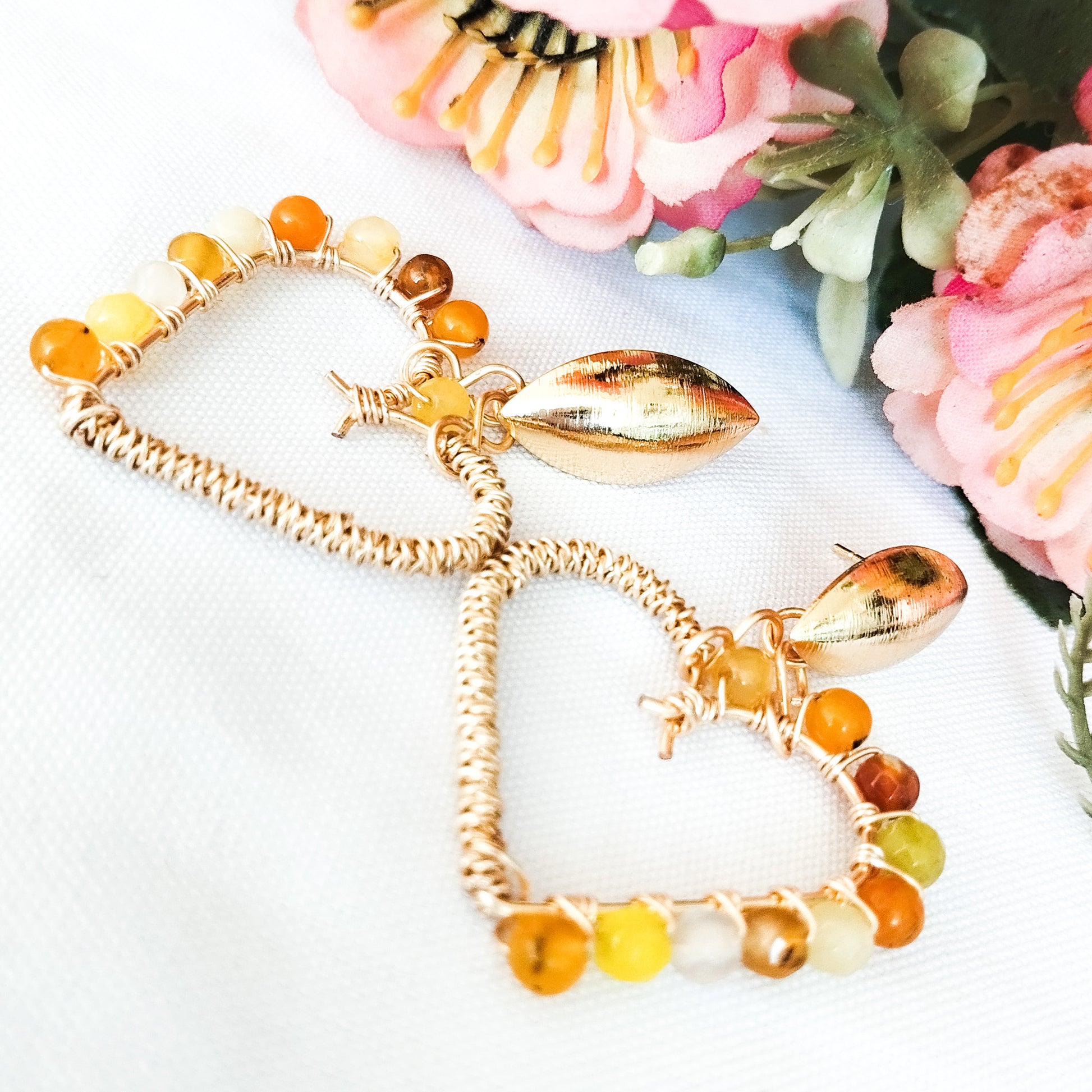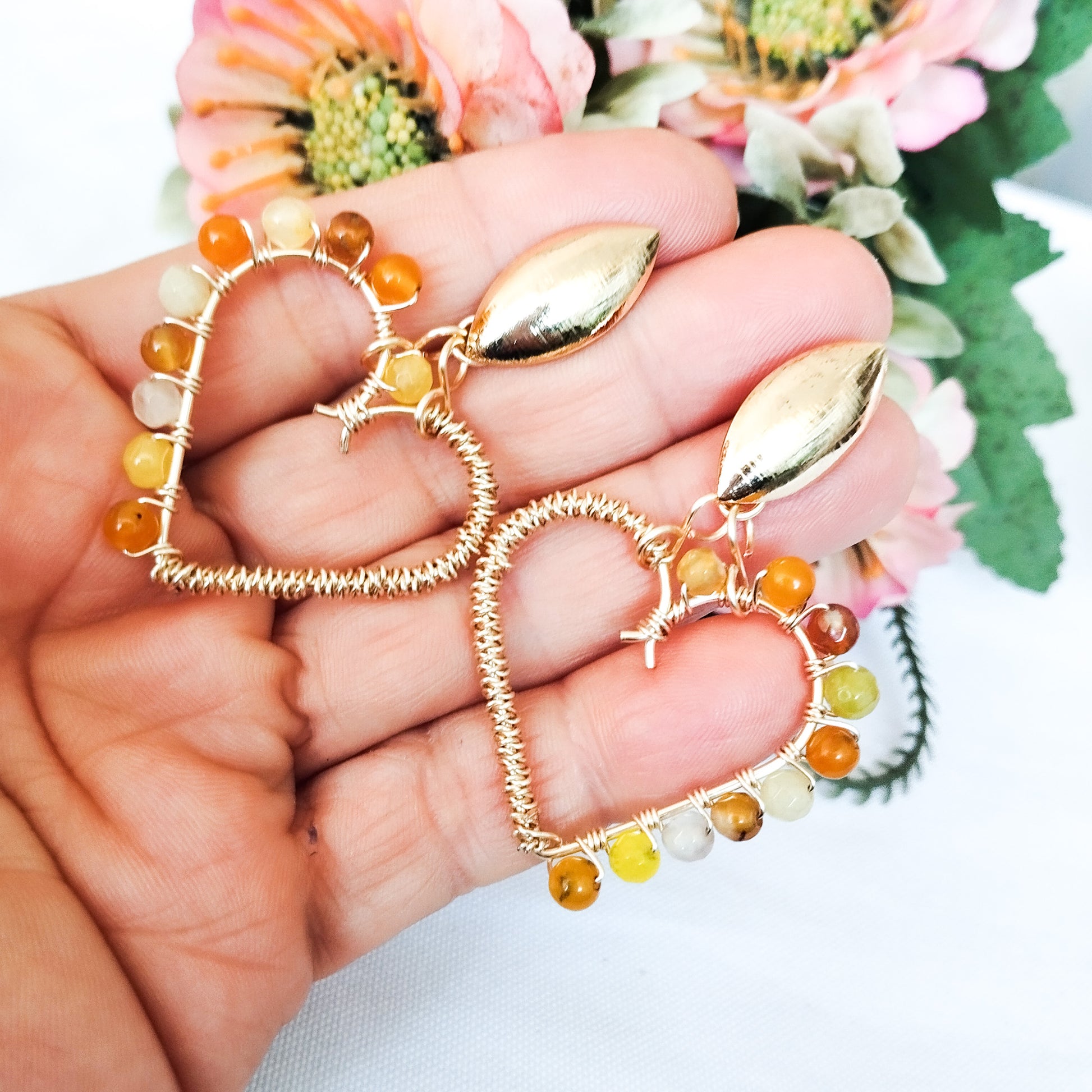 Aros Grandes en Forma de Corazón Con Ágatas Naturales