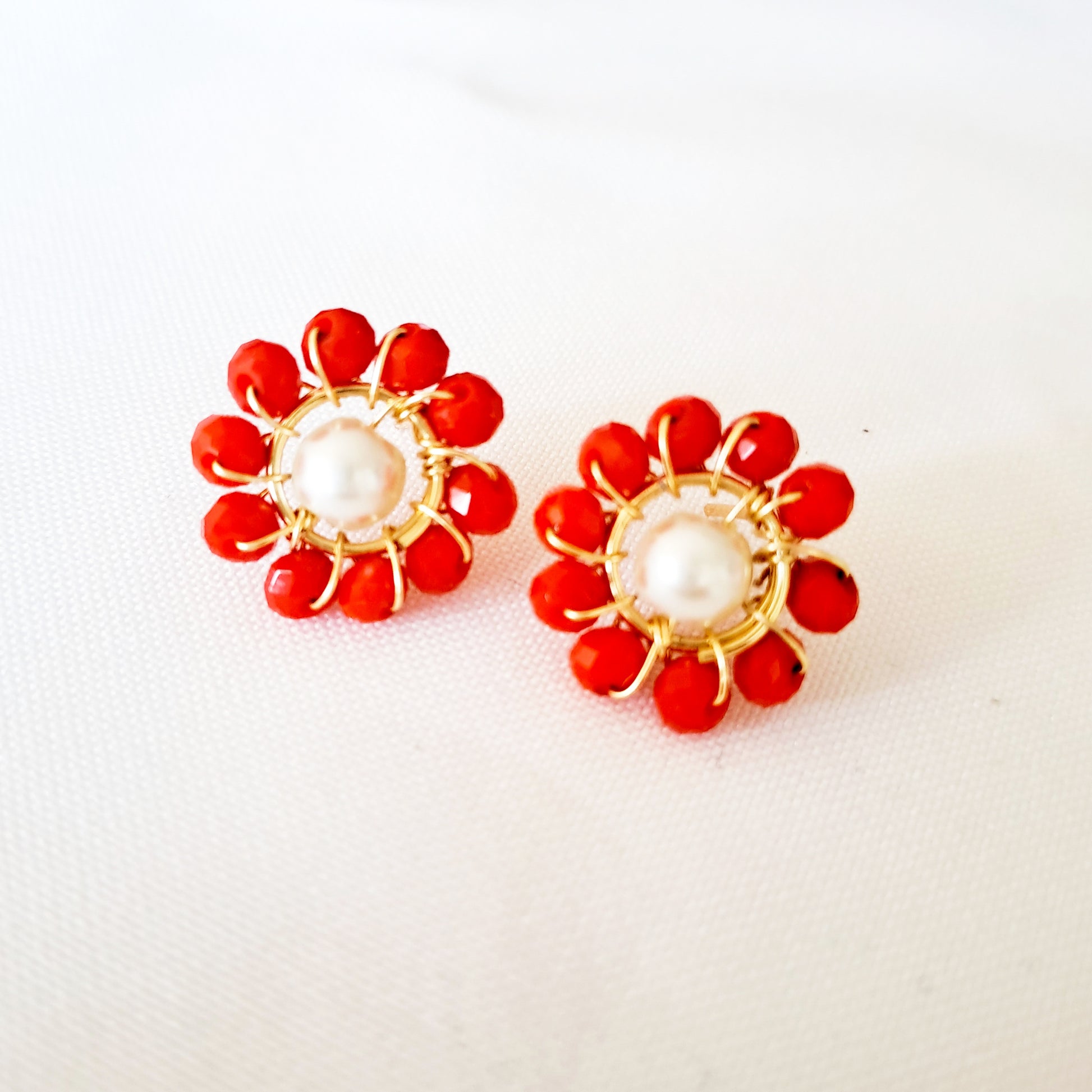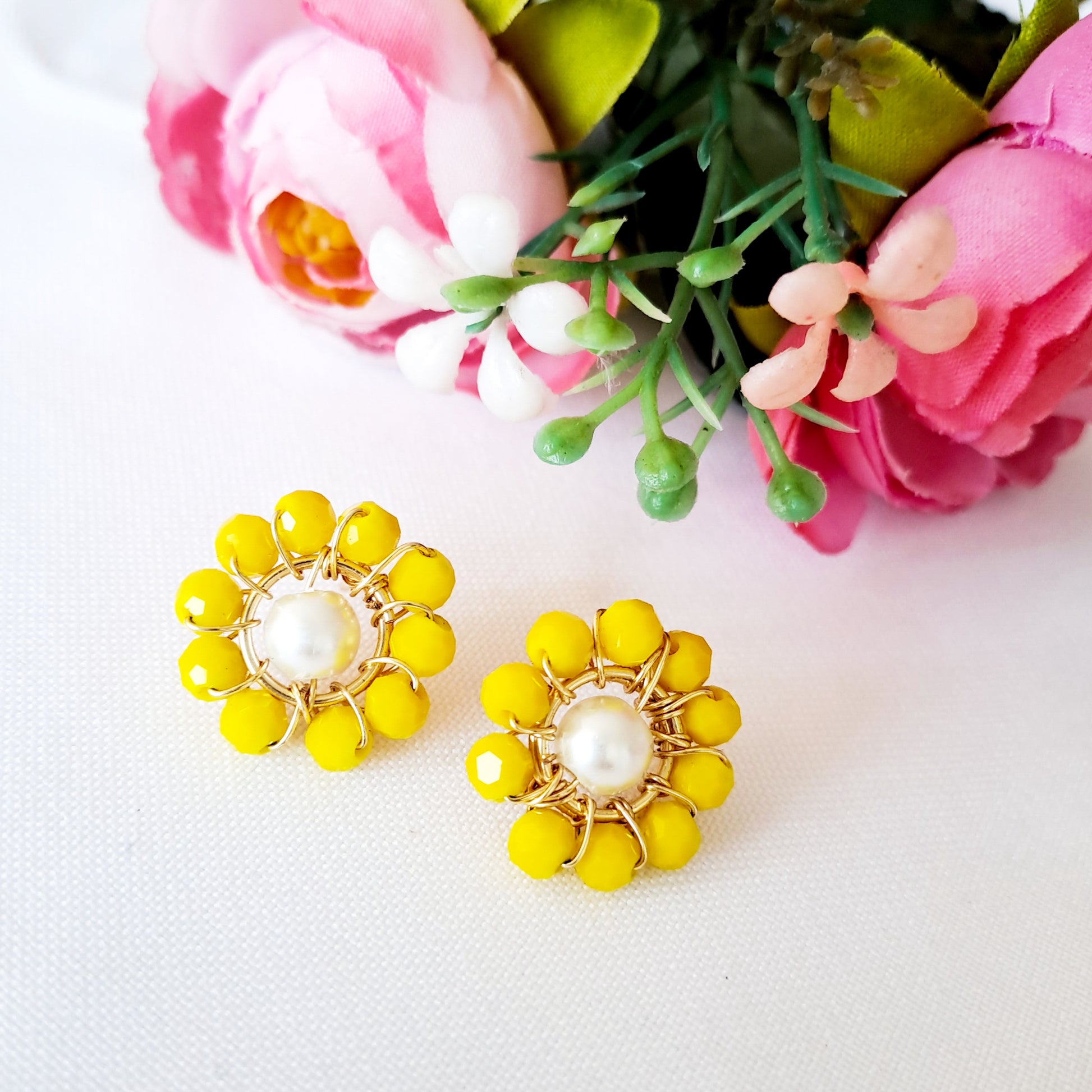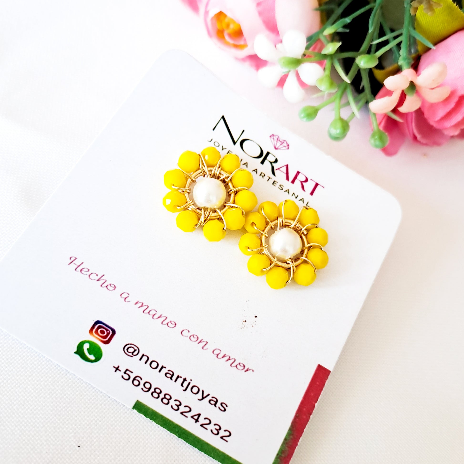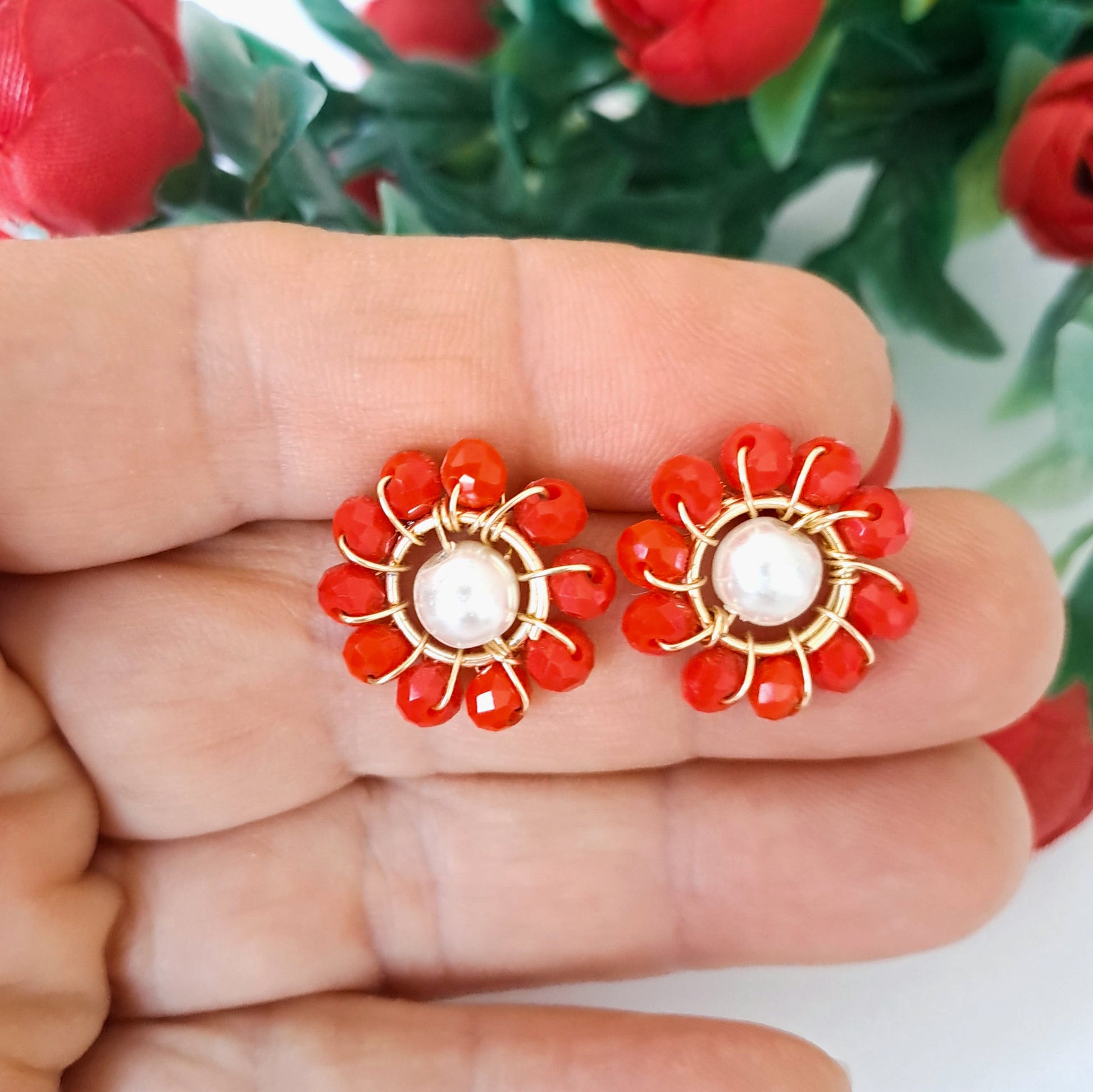 Aros Pequeños Con Cristales Y Perla Engarzada en El Centro