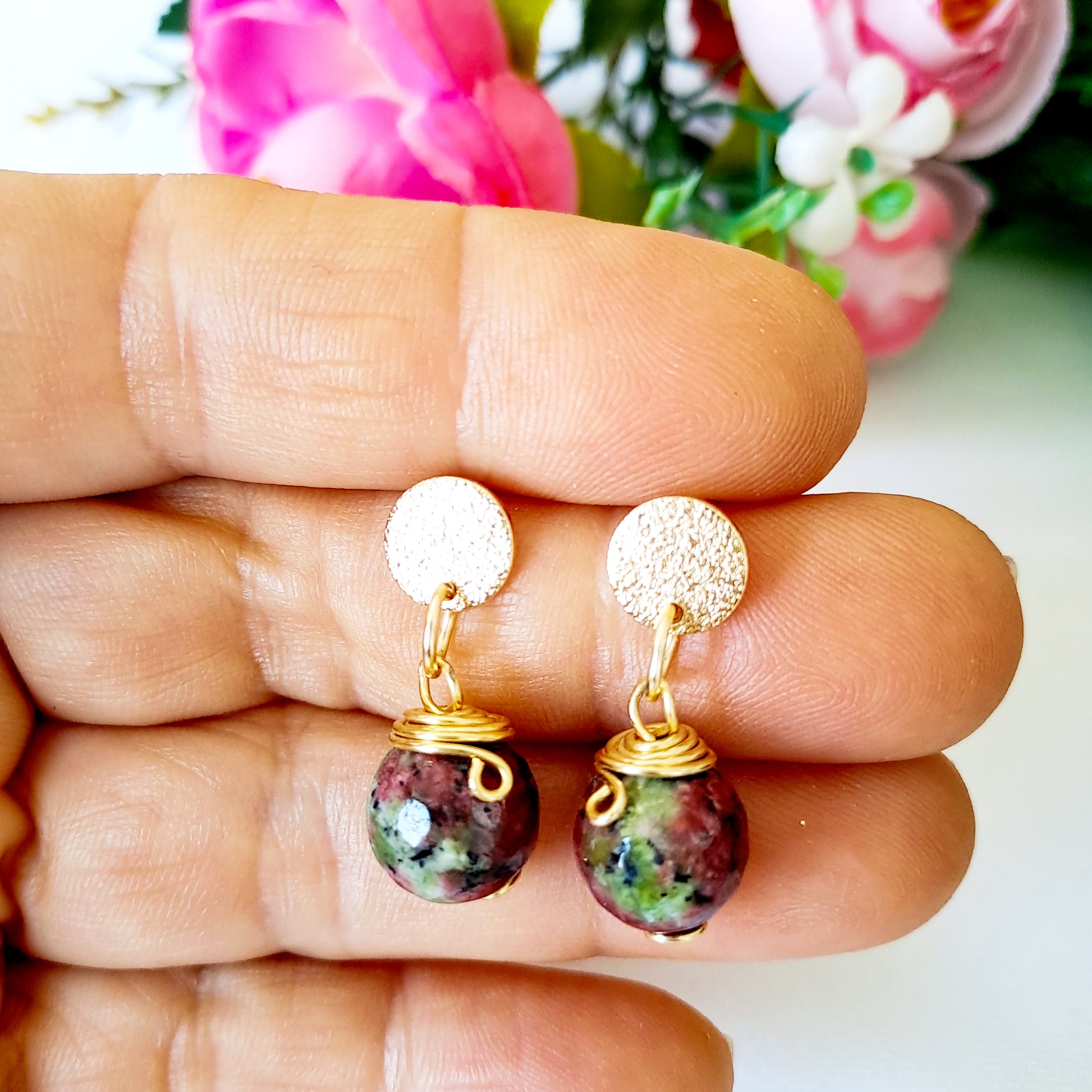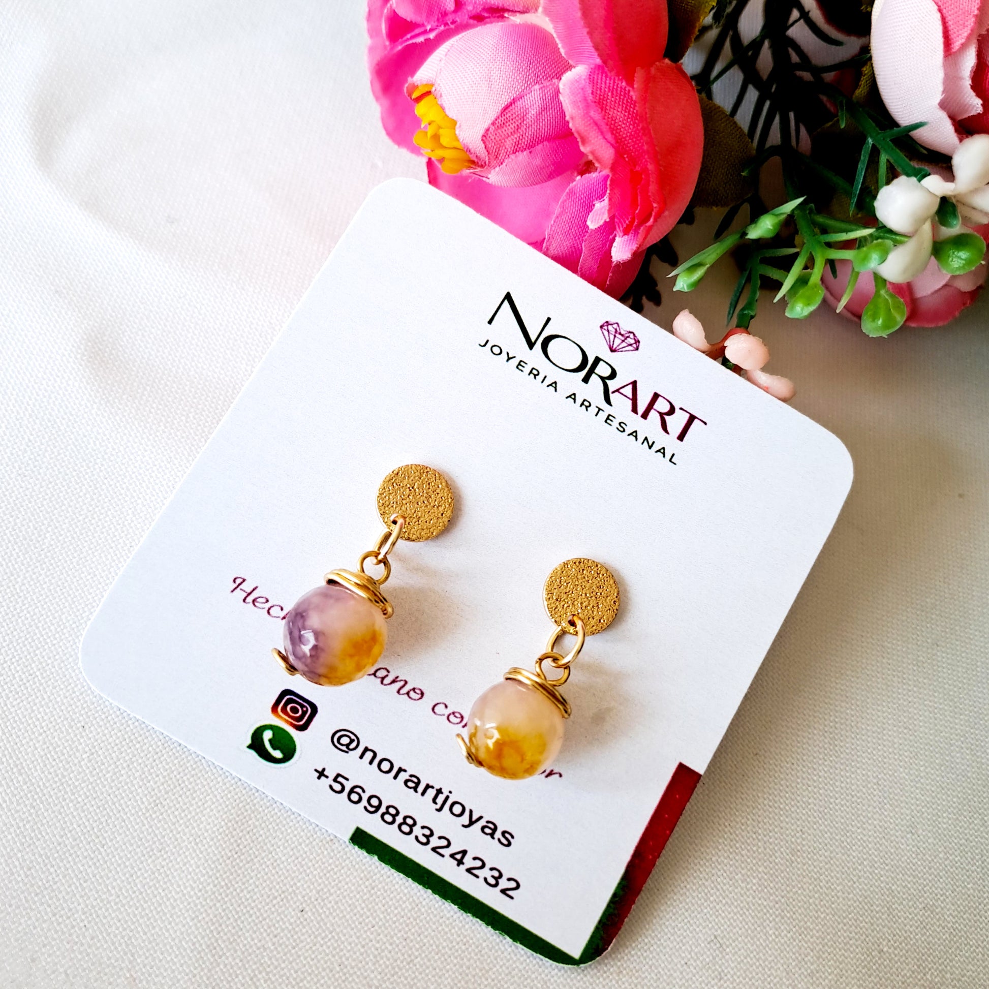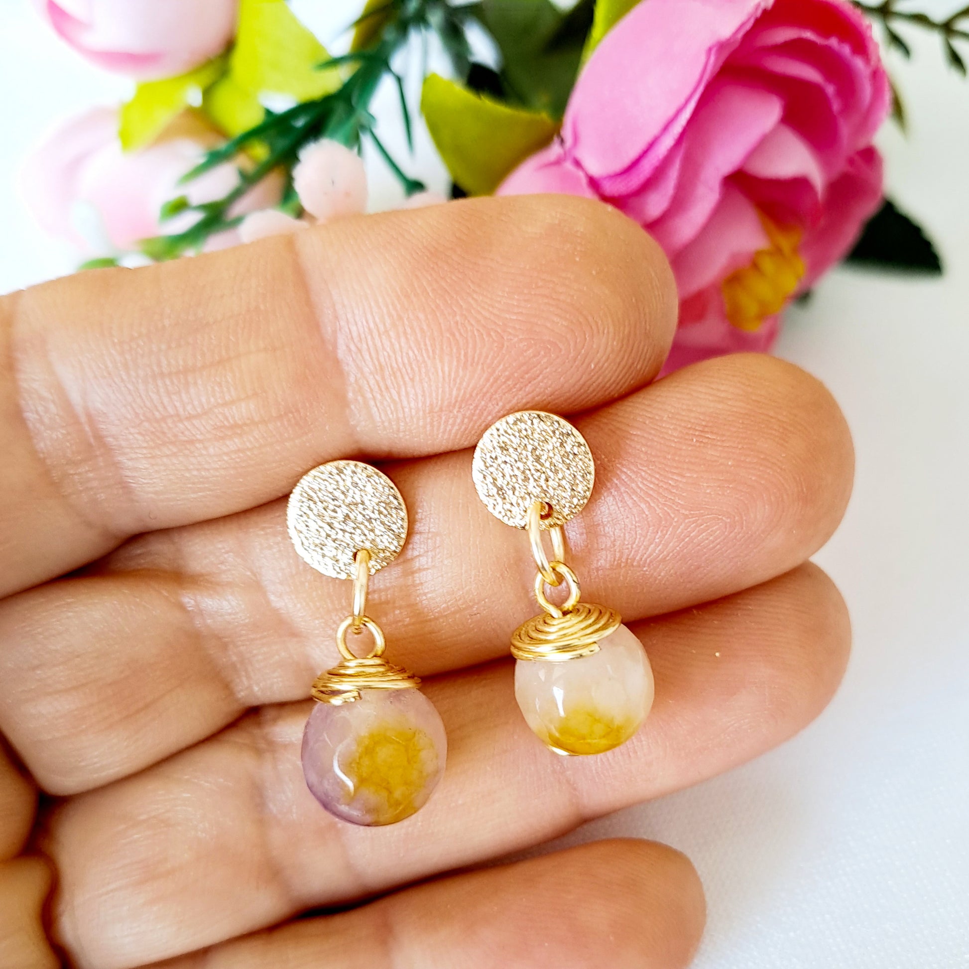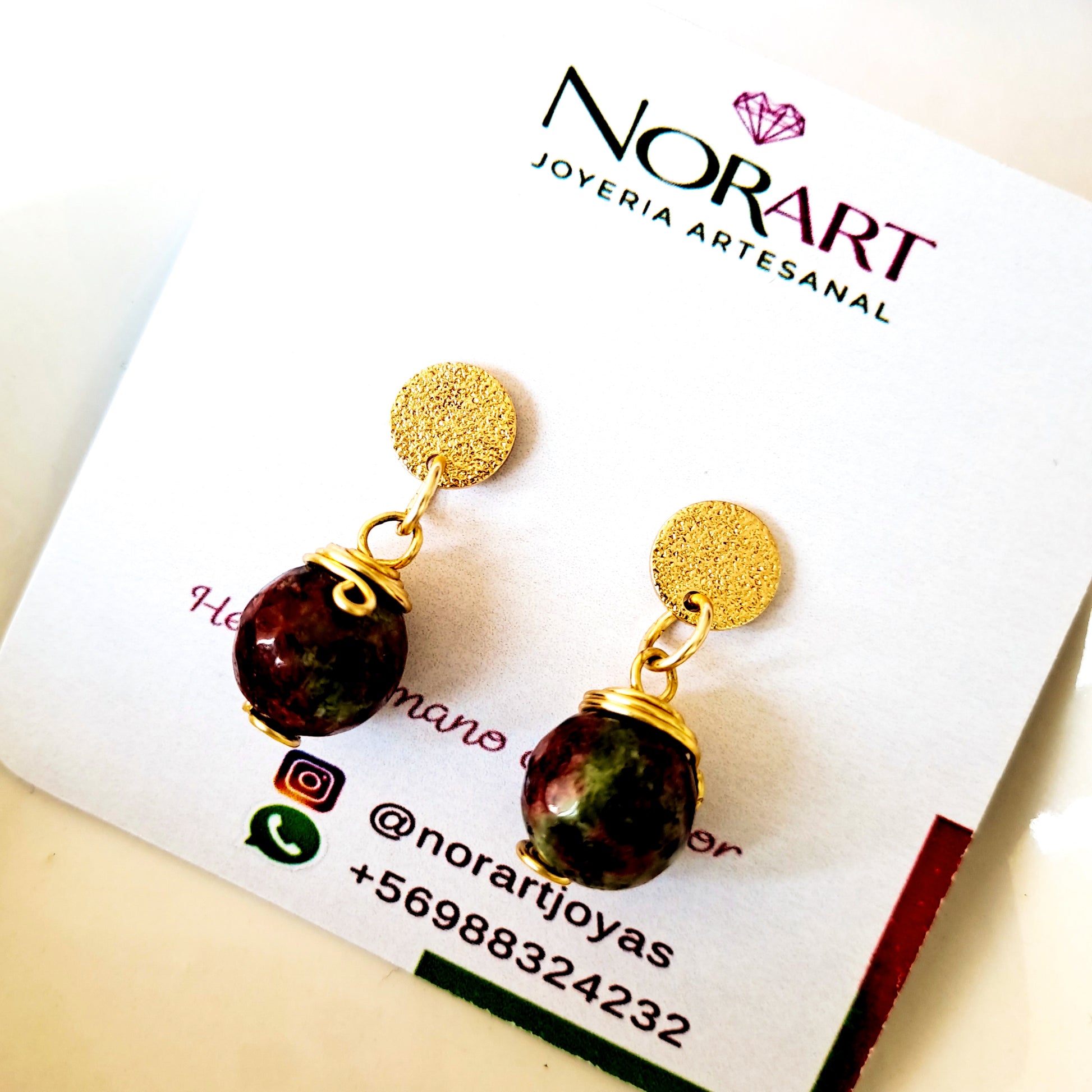 Aros Pequeños Con Una Piedra Colgando de Una Base Redonda en Baño de Oro