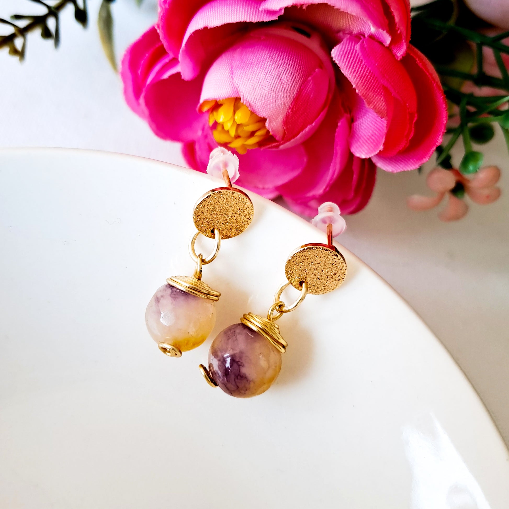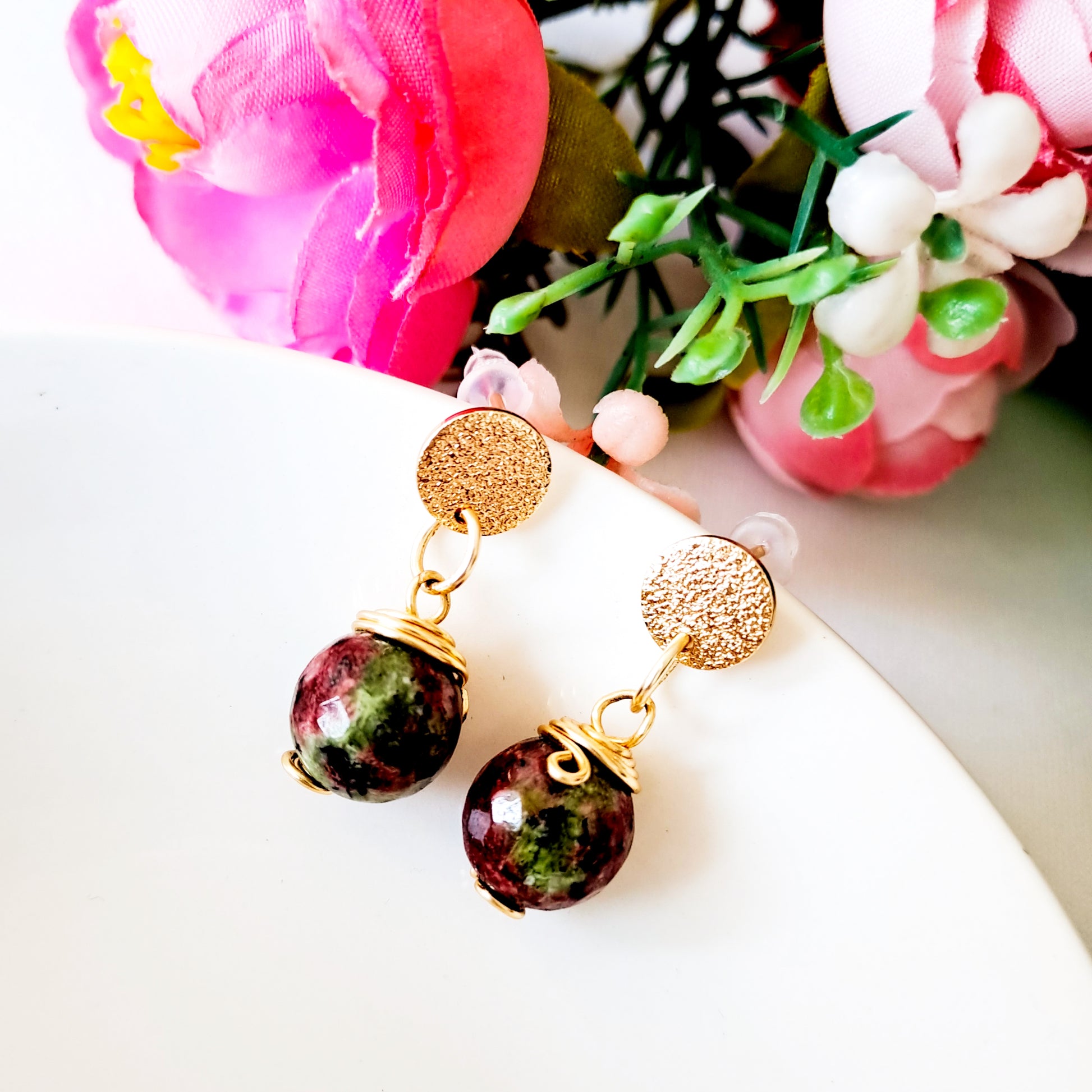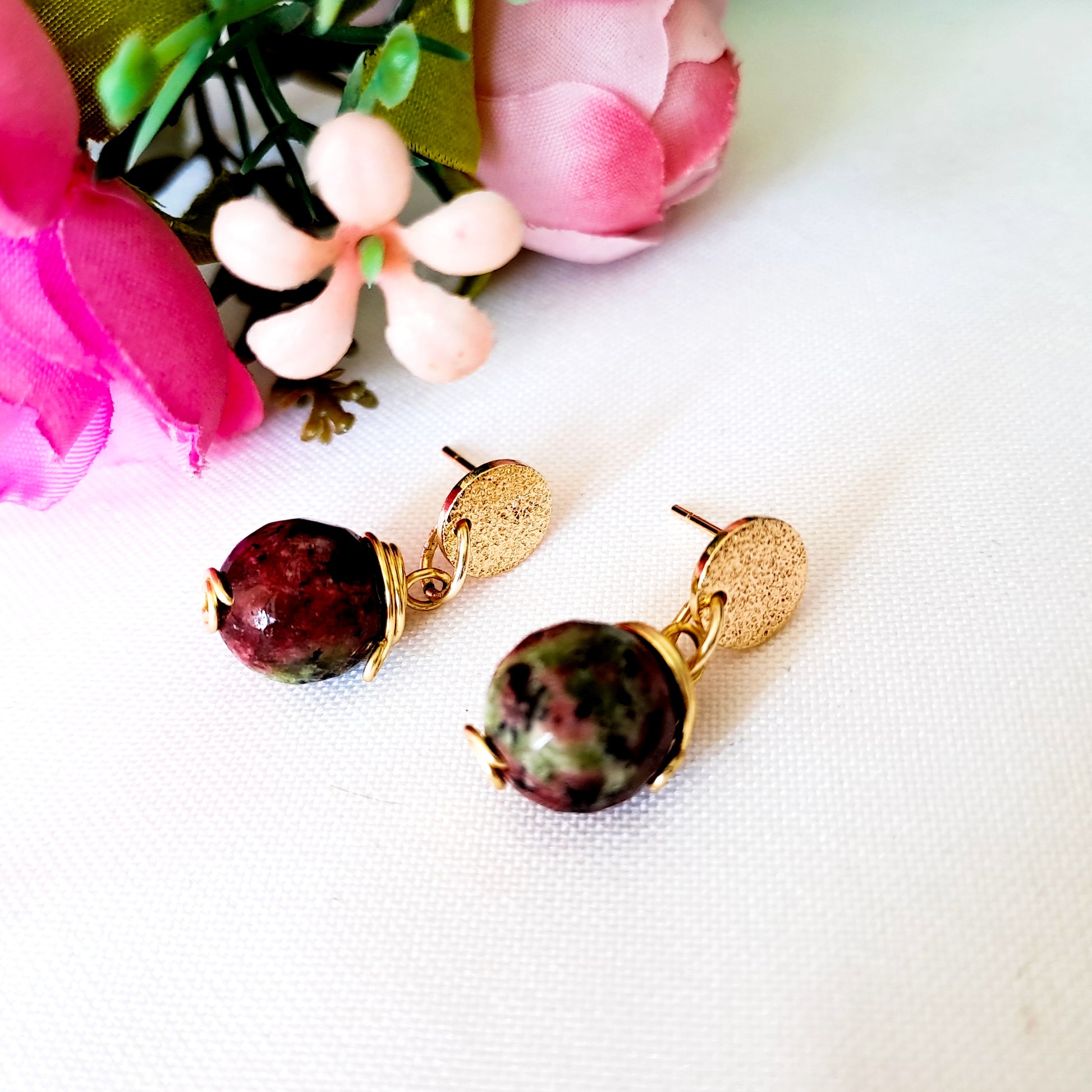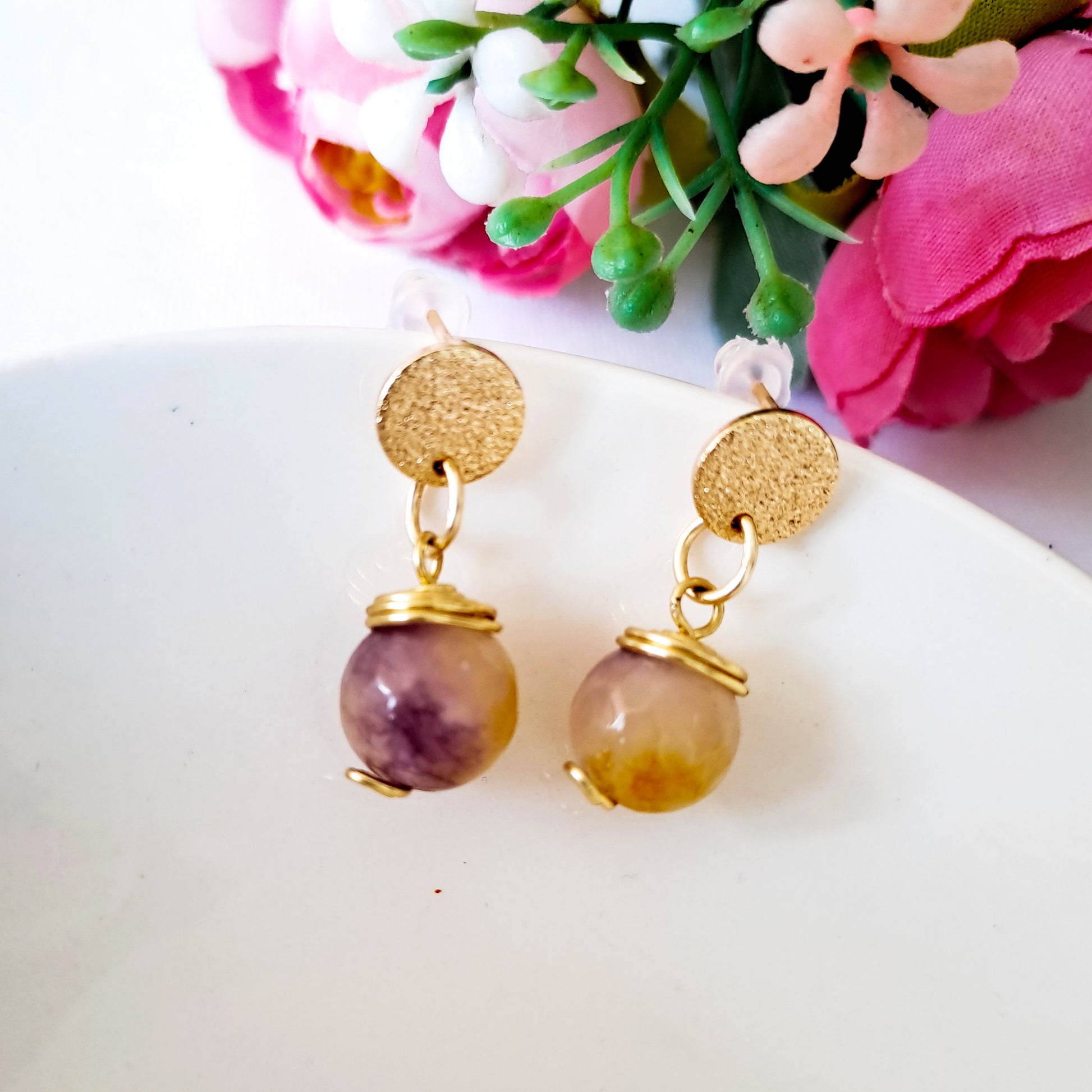 Aros Pequeños Con Una Piedra Colgando de Una Base Redonda en Baño de Oro