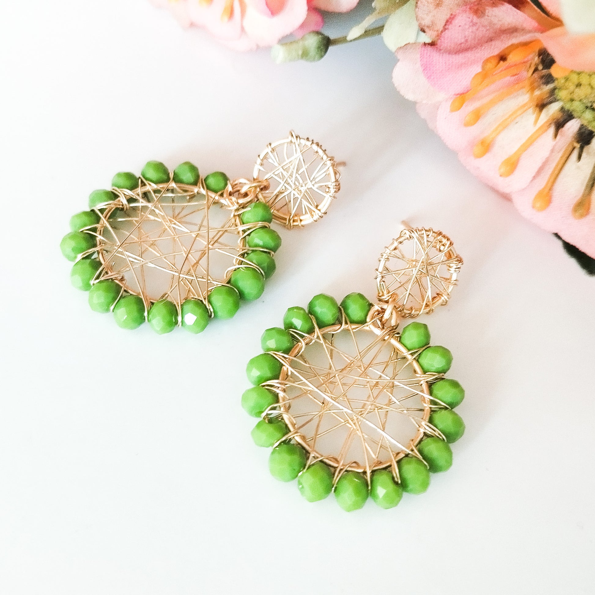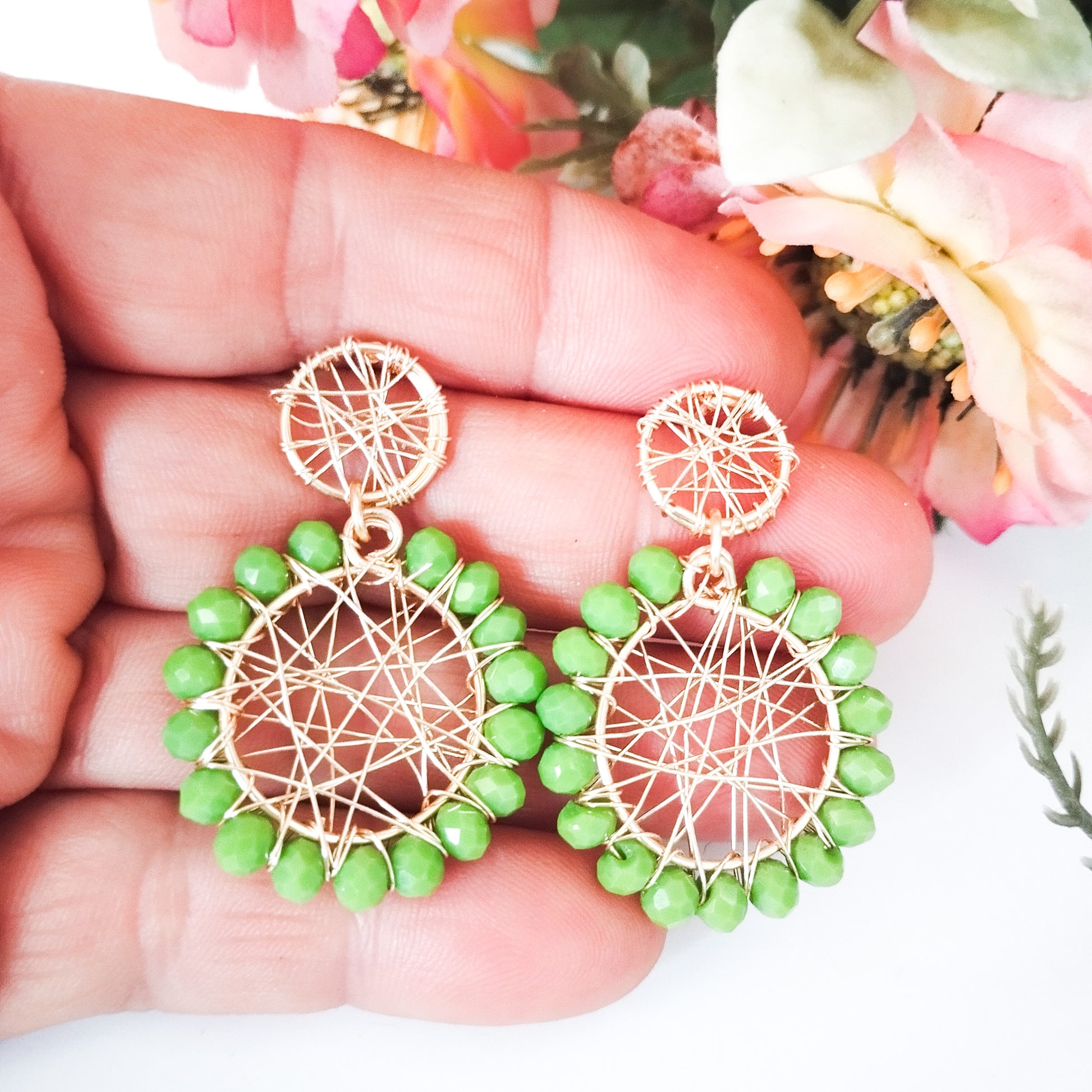 Aros Redondos Con Cristales Entramados Y Base de Alambre Entramado