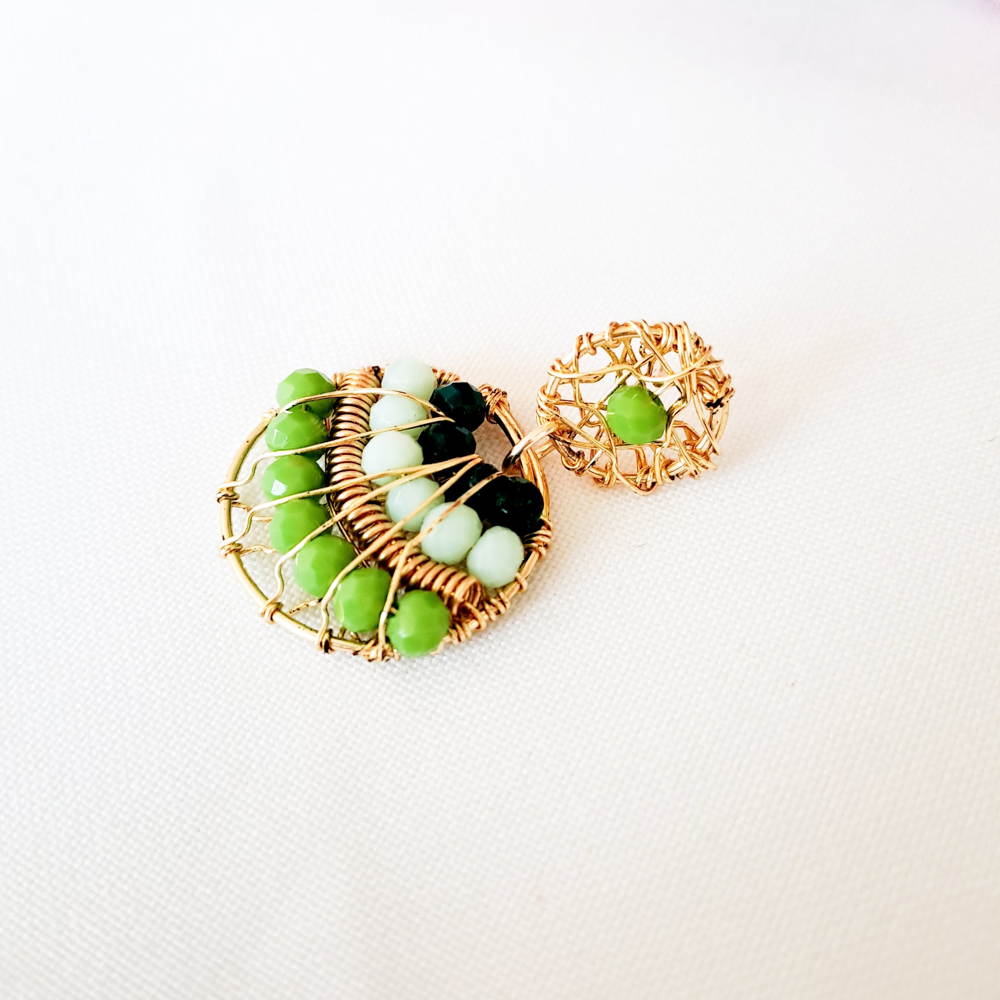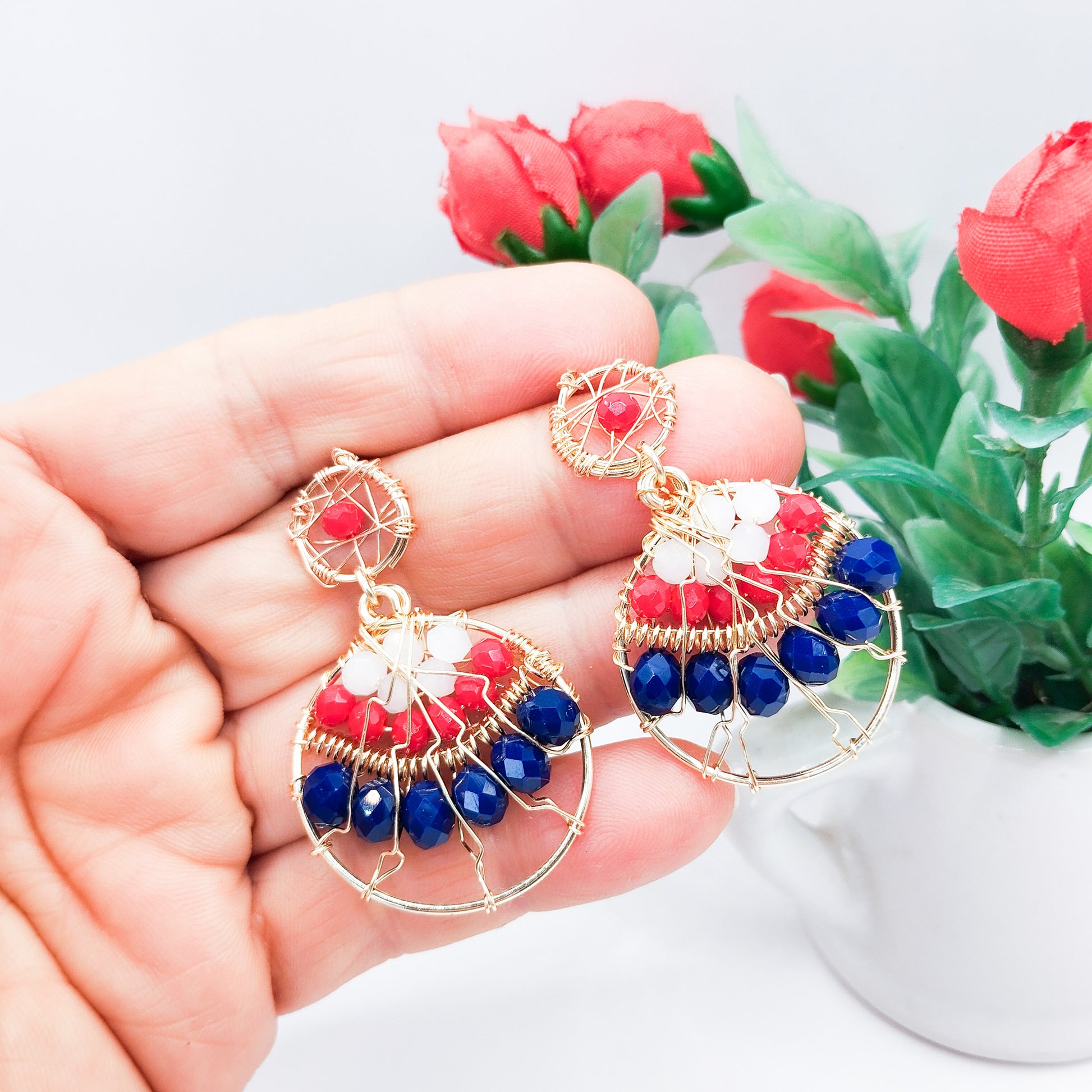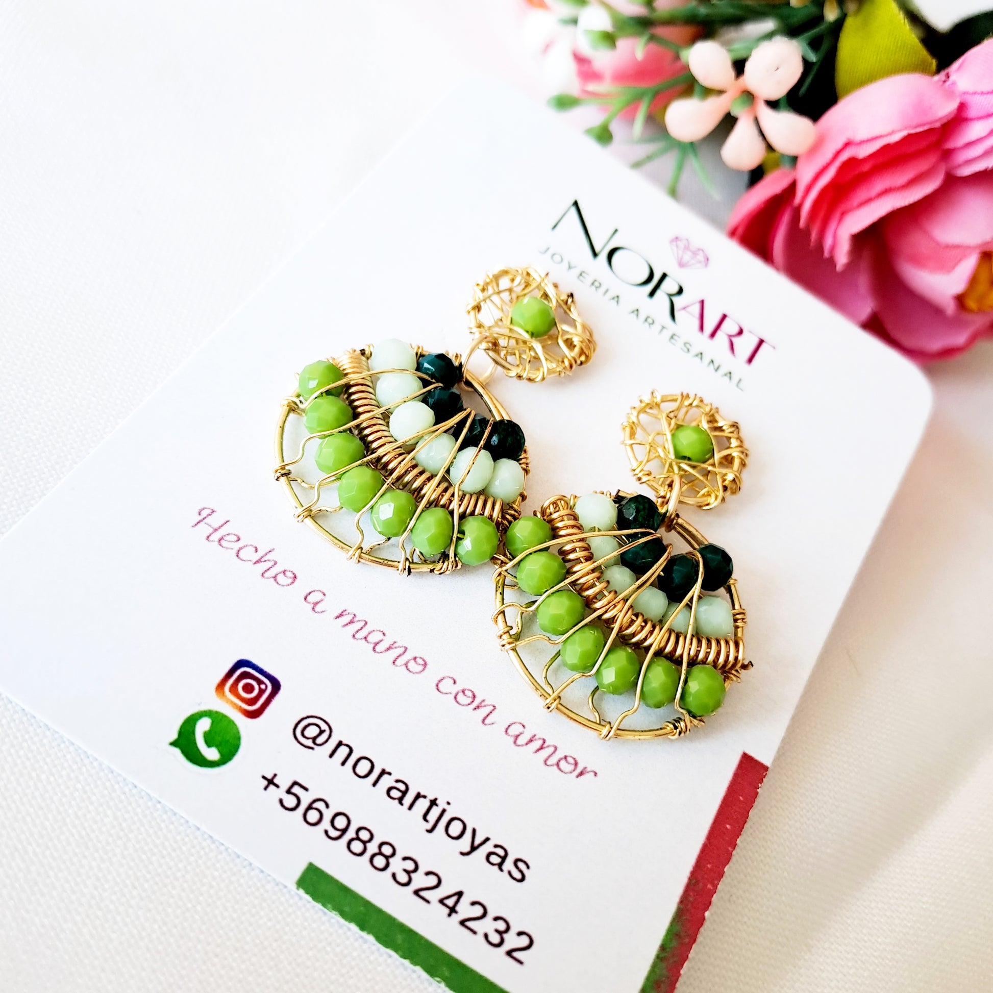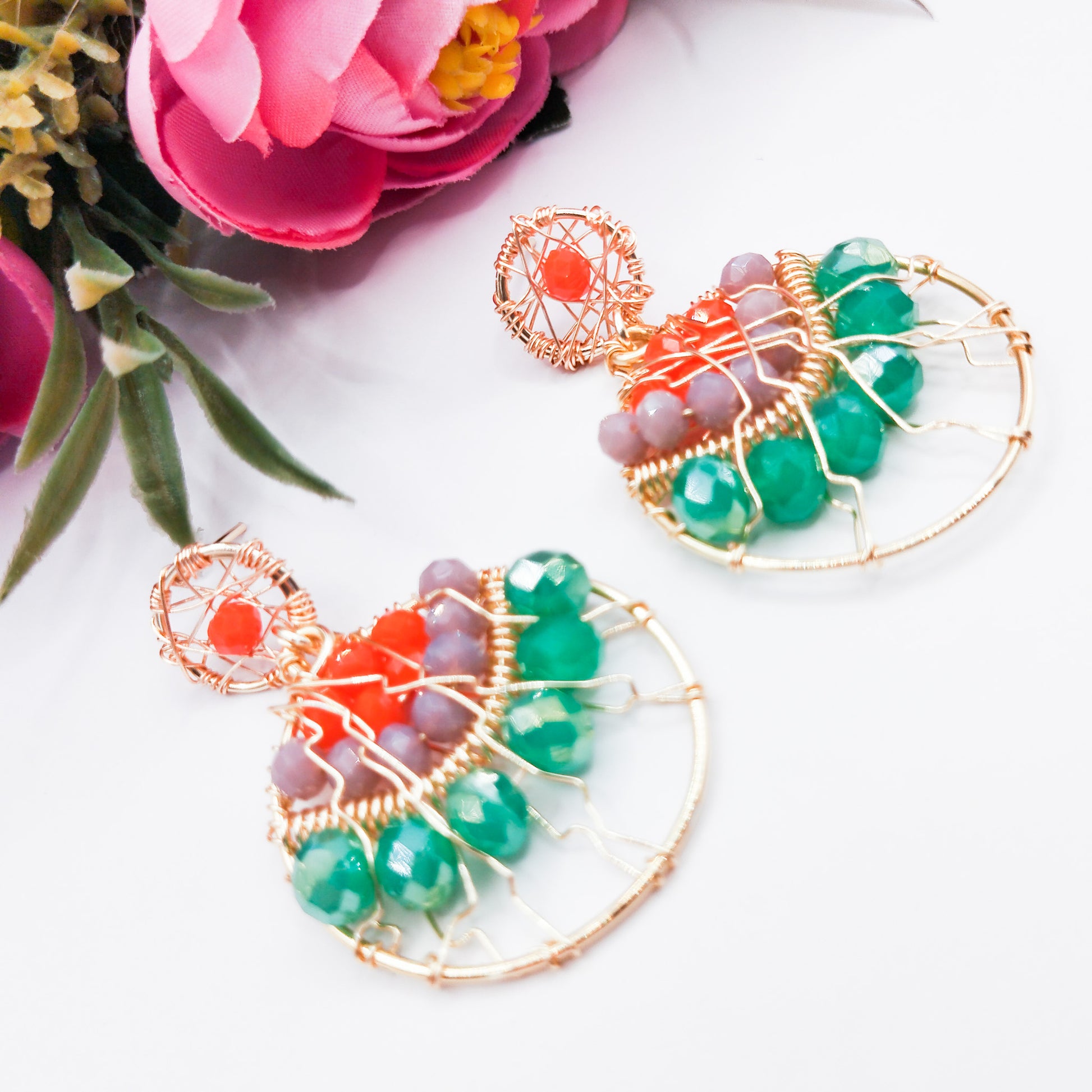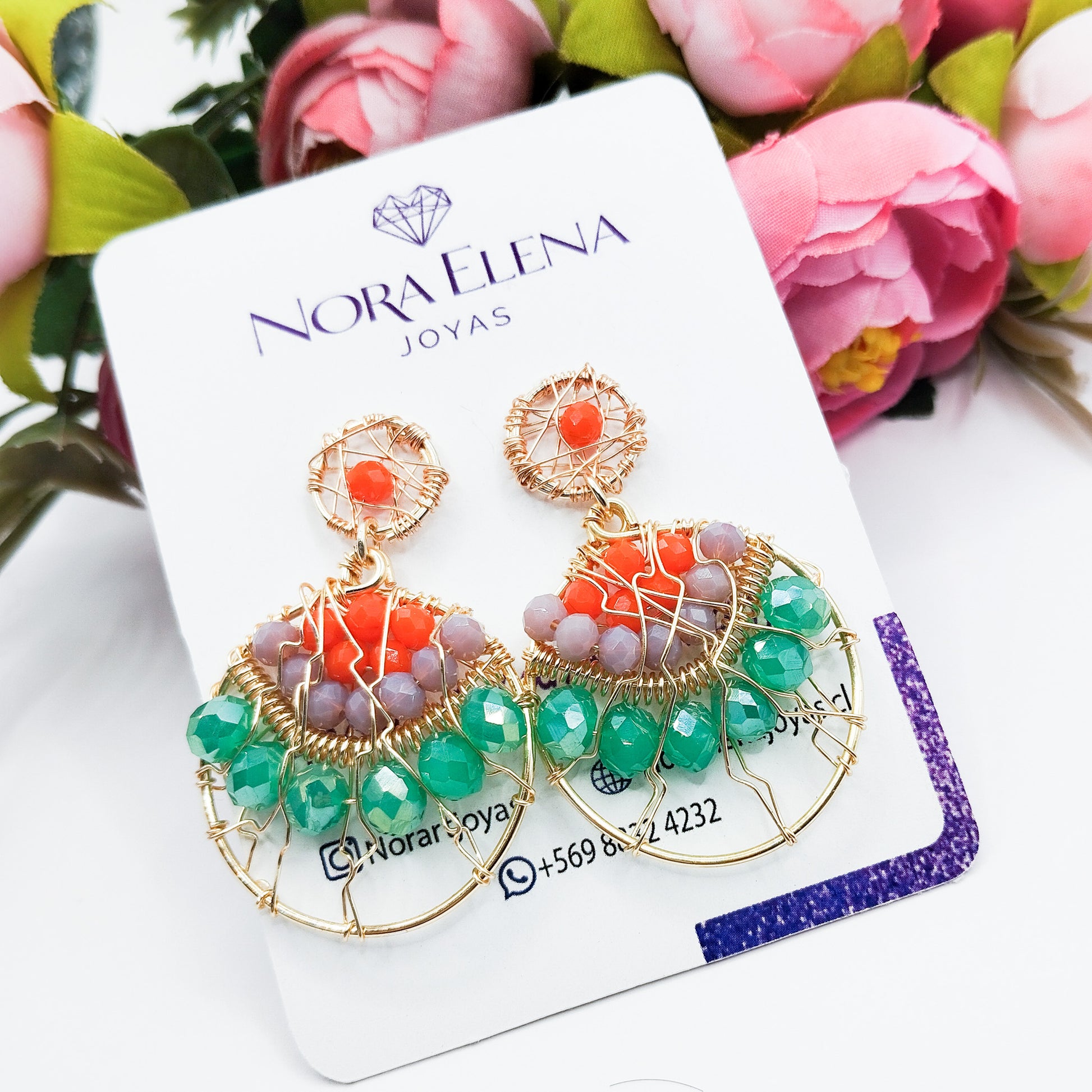 Aros Redondos Con Cristales Y Base Tejida en Alambre