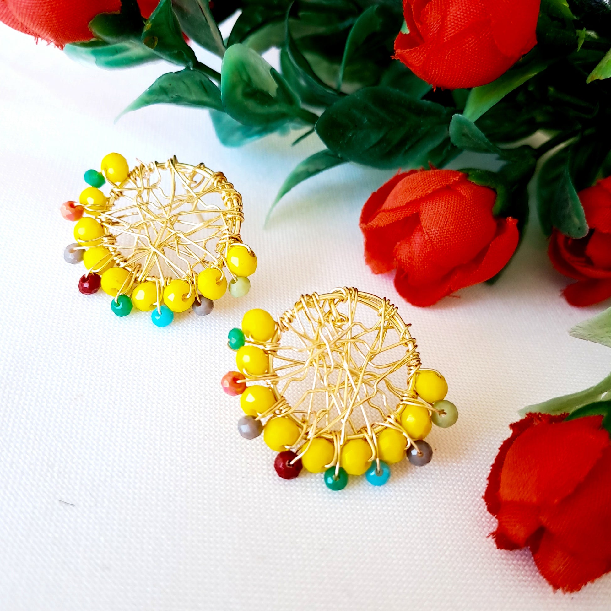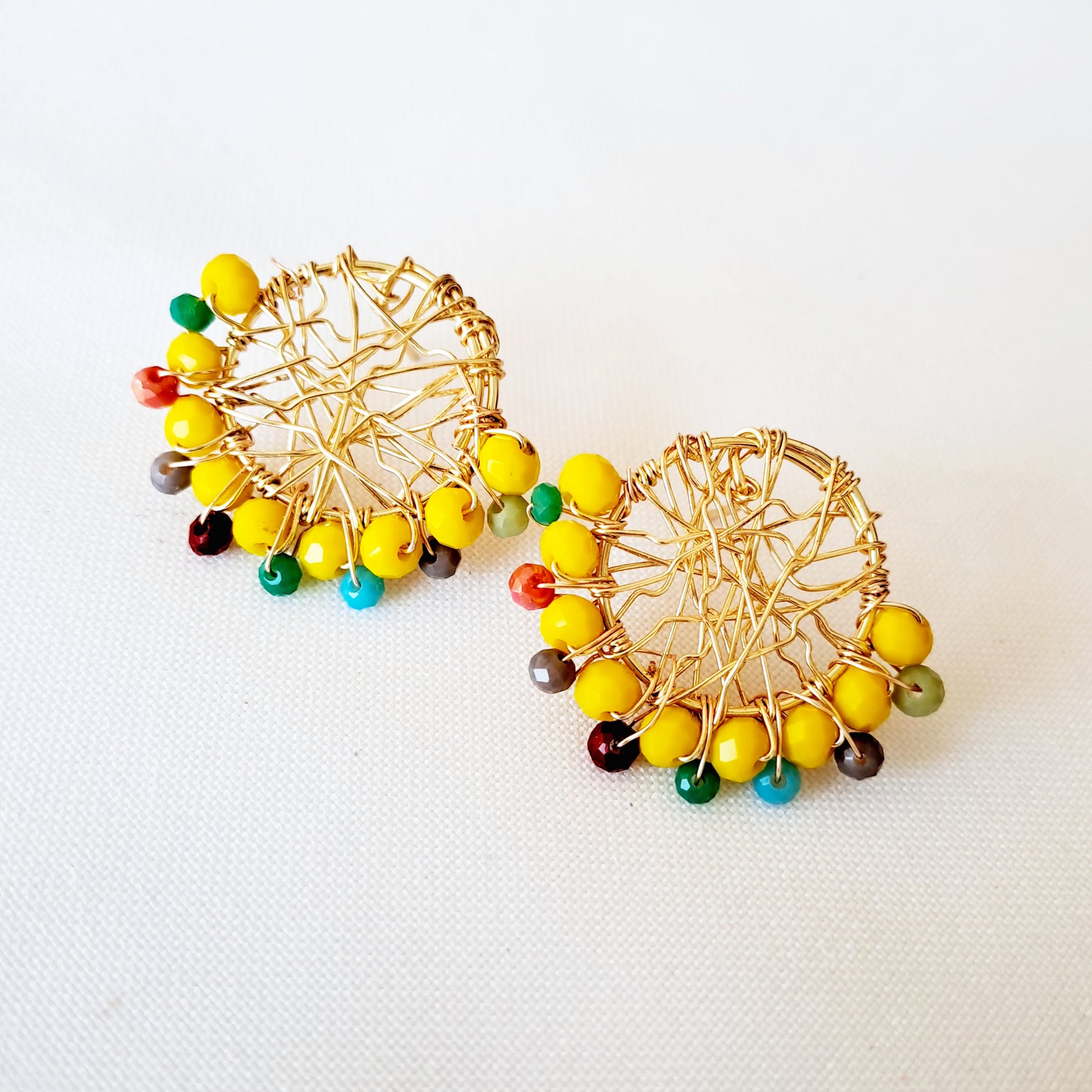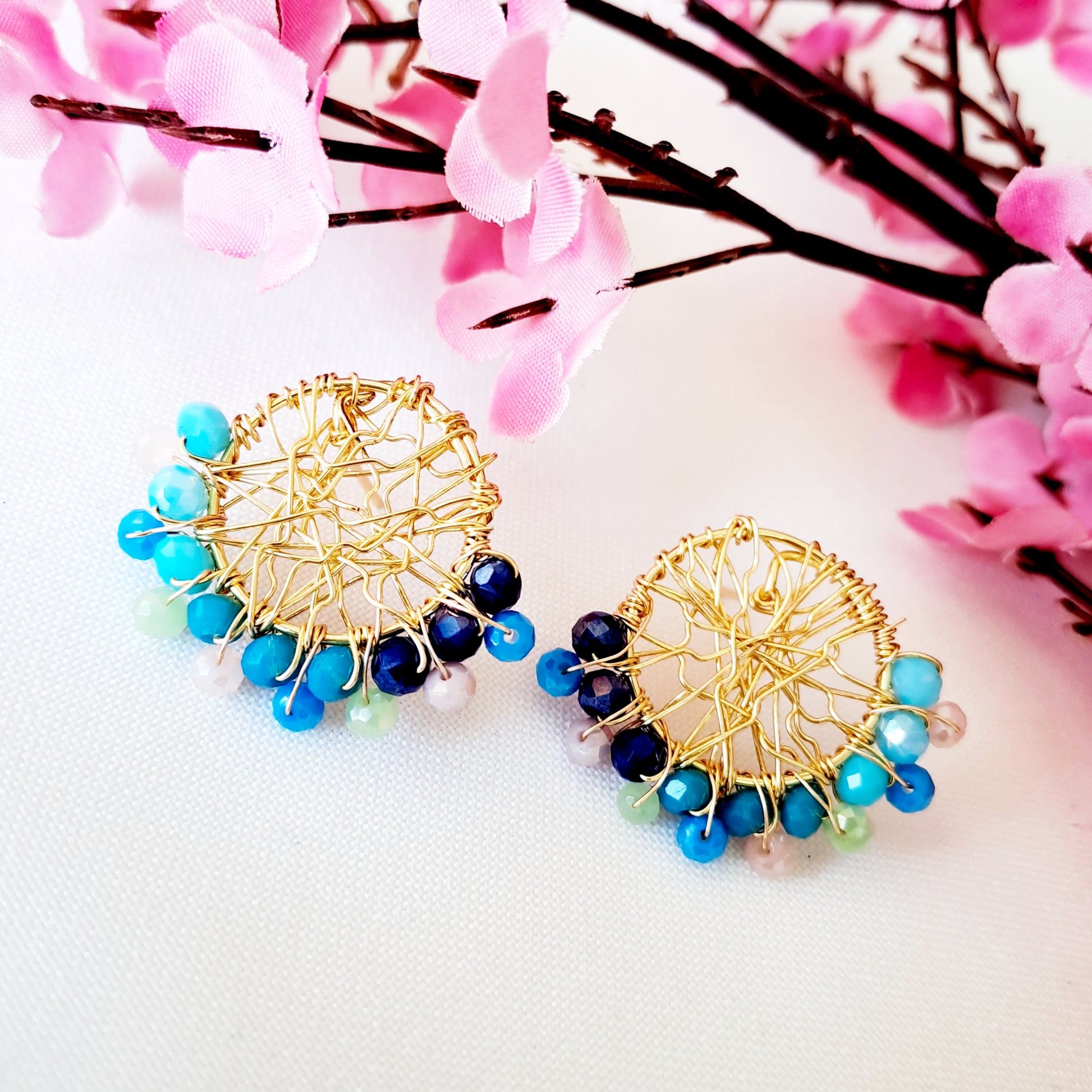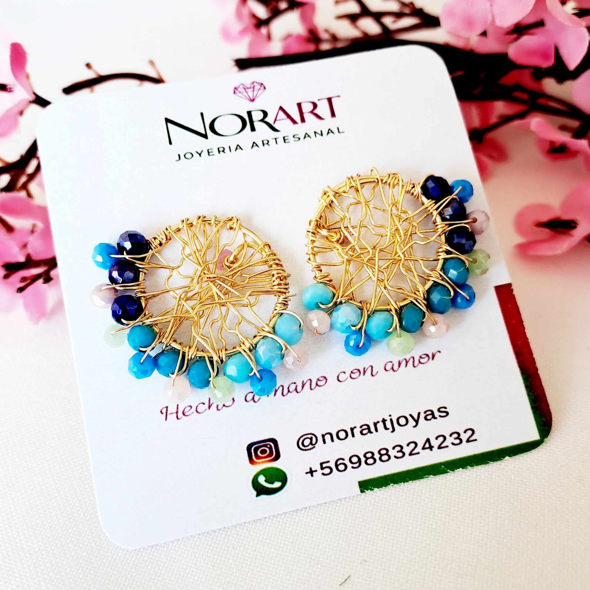 Aros Redondos Con Estructura Tejida Y Cristales Entorchados