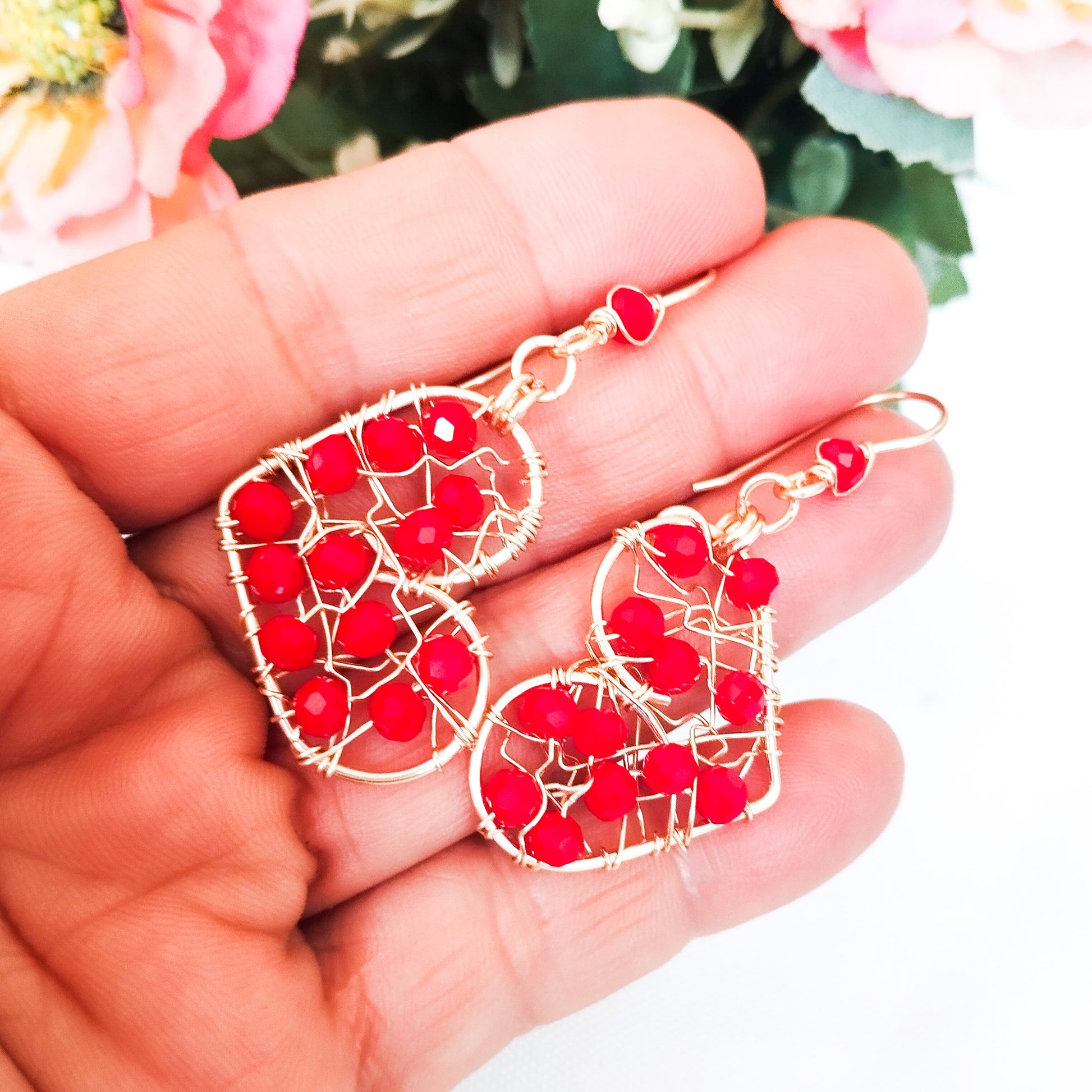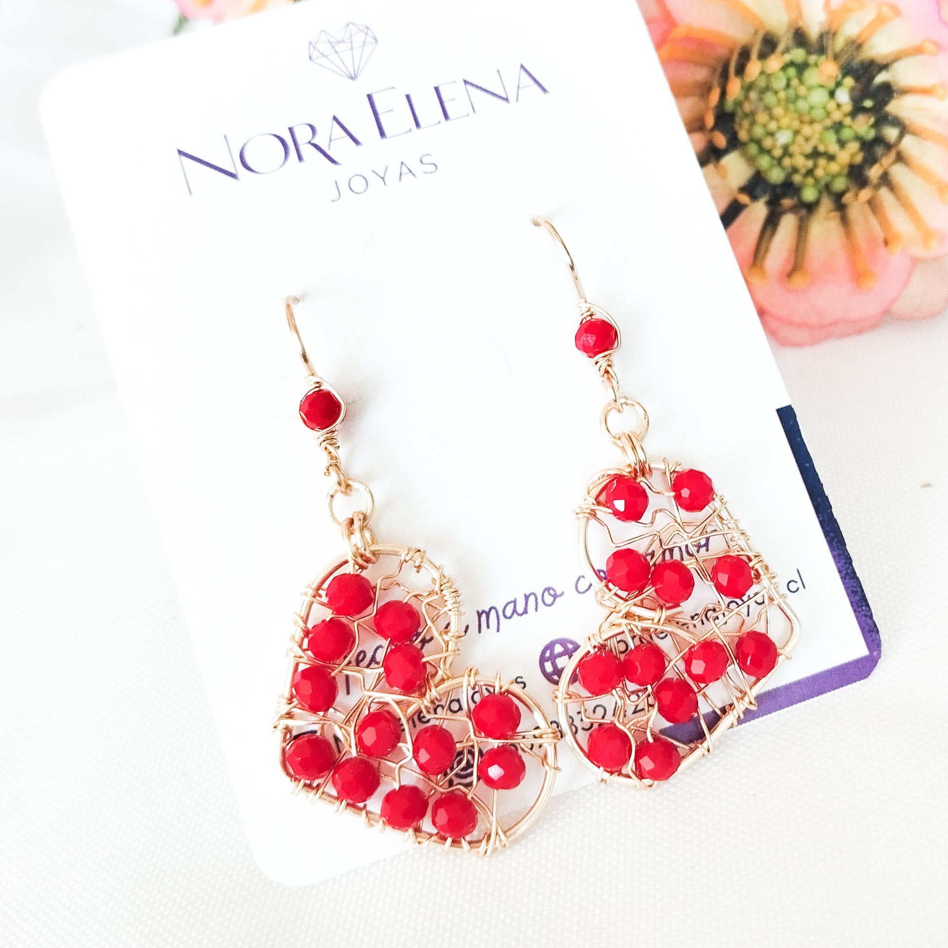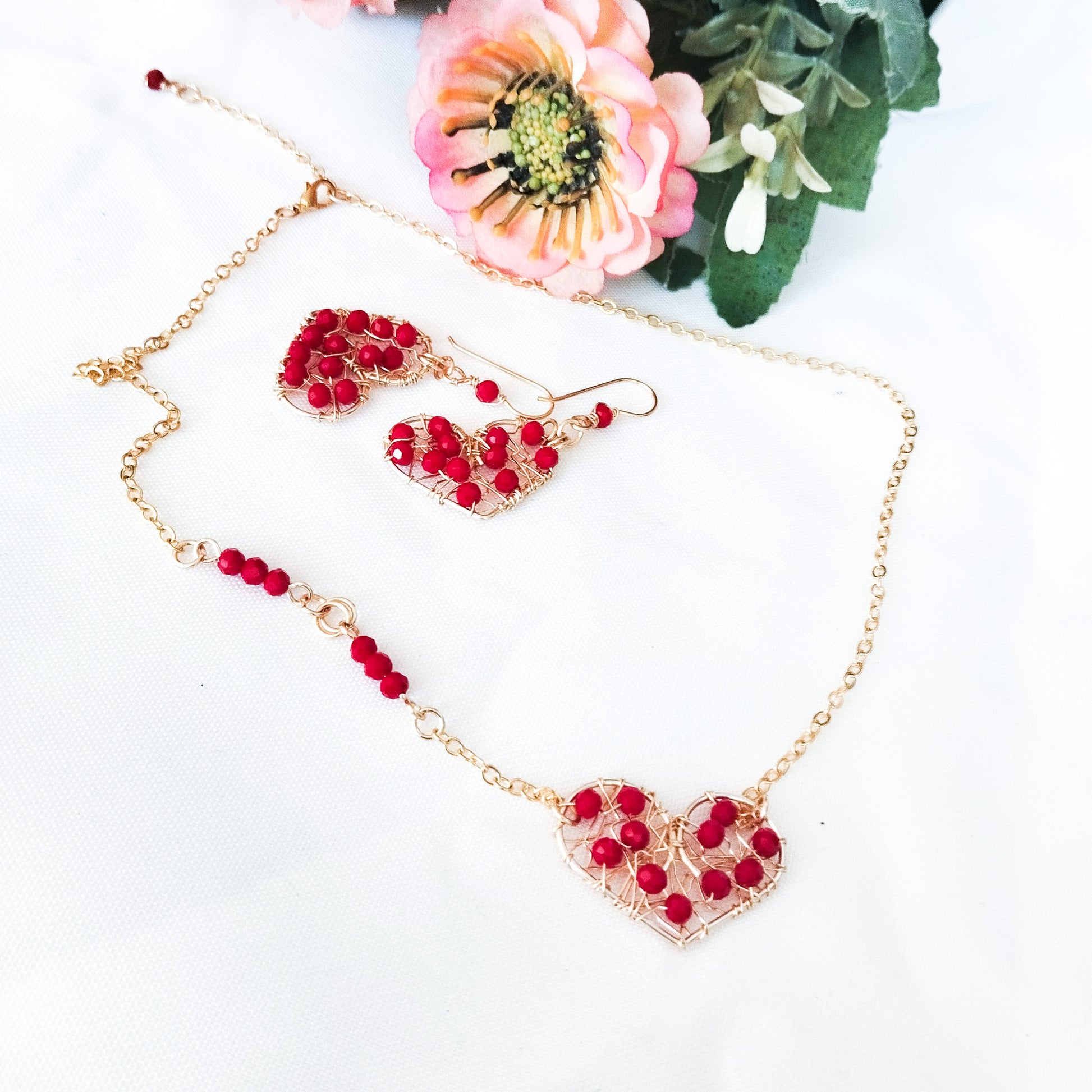 Conjunto de Colgante Y Aros en Forma de Corazon Entramados Con Cristales Checos