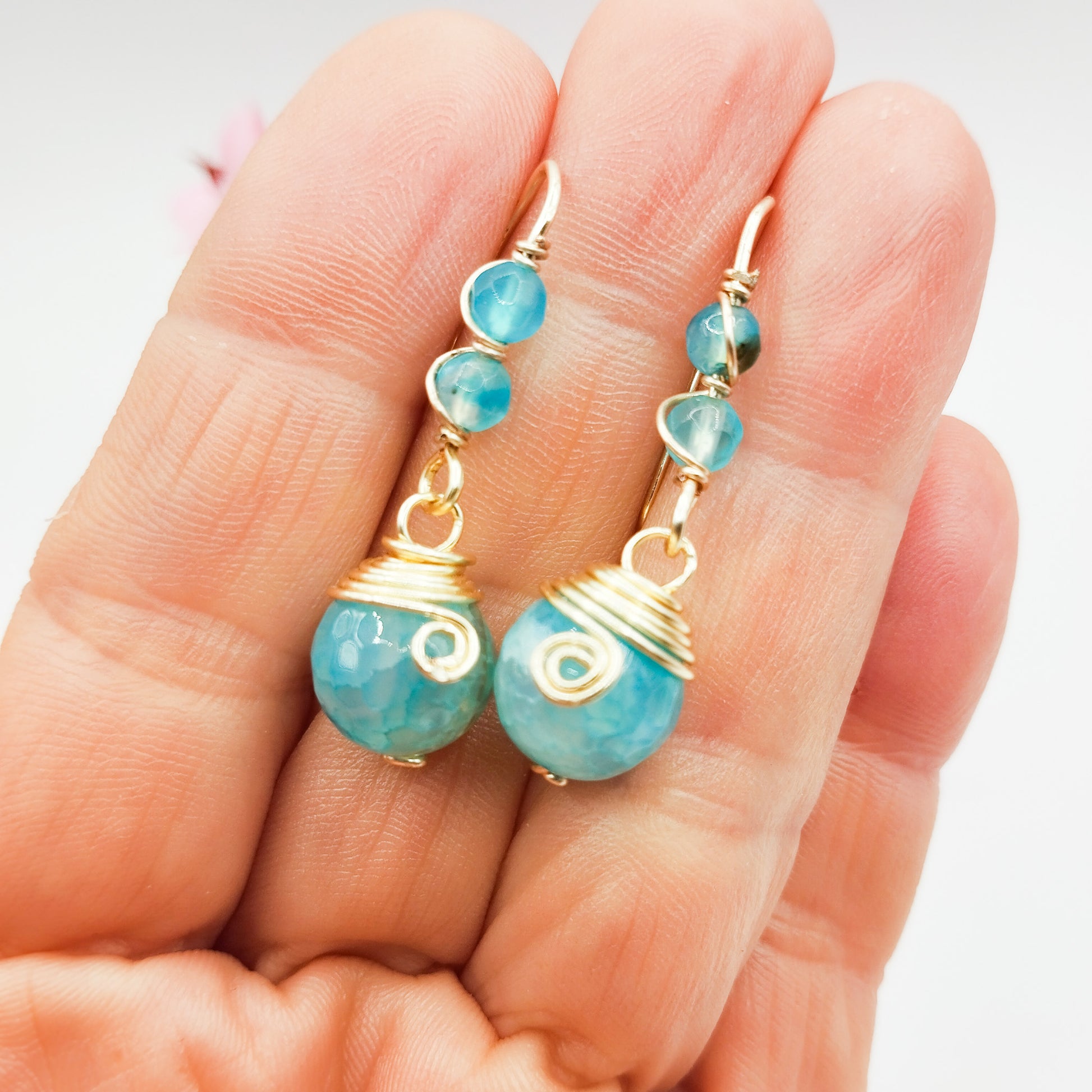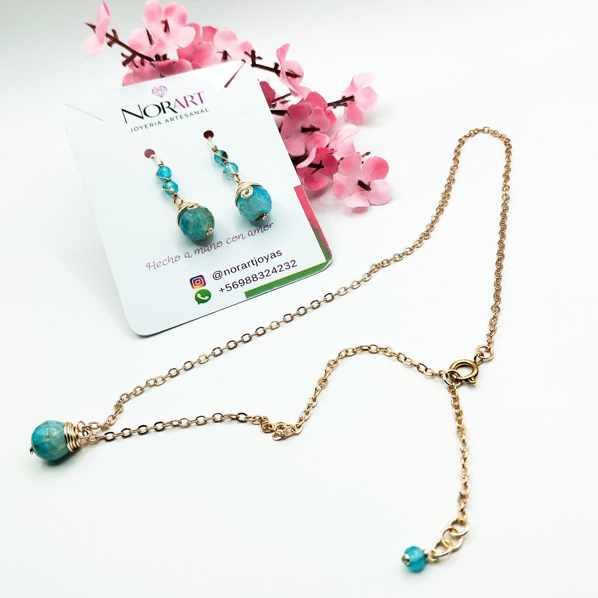 Conjunto de Collar y Aros con Ágatas color Turquesa