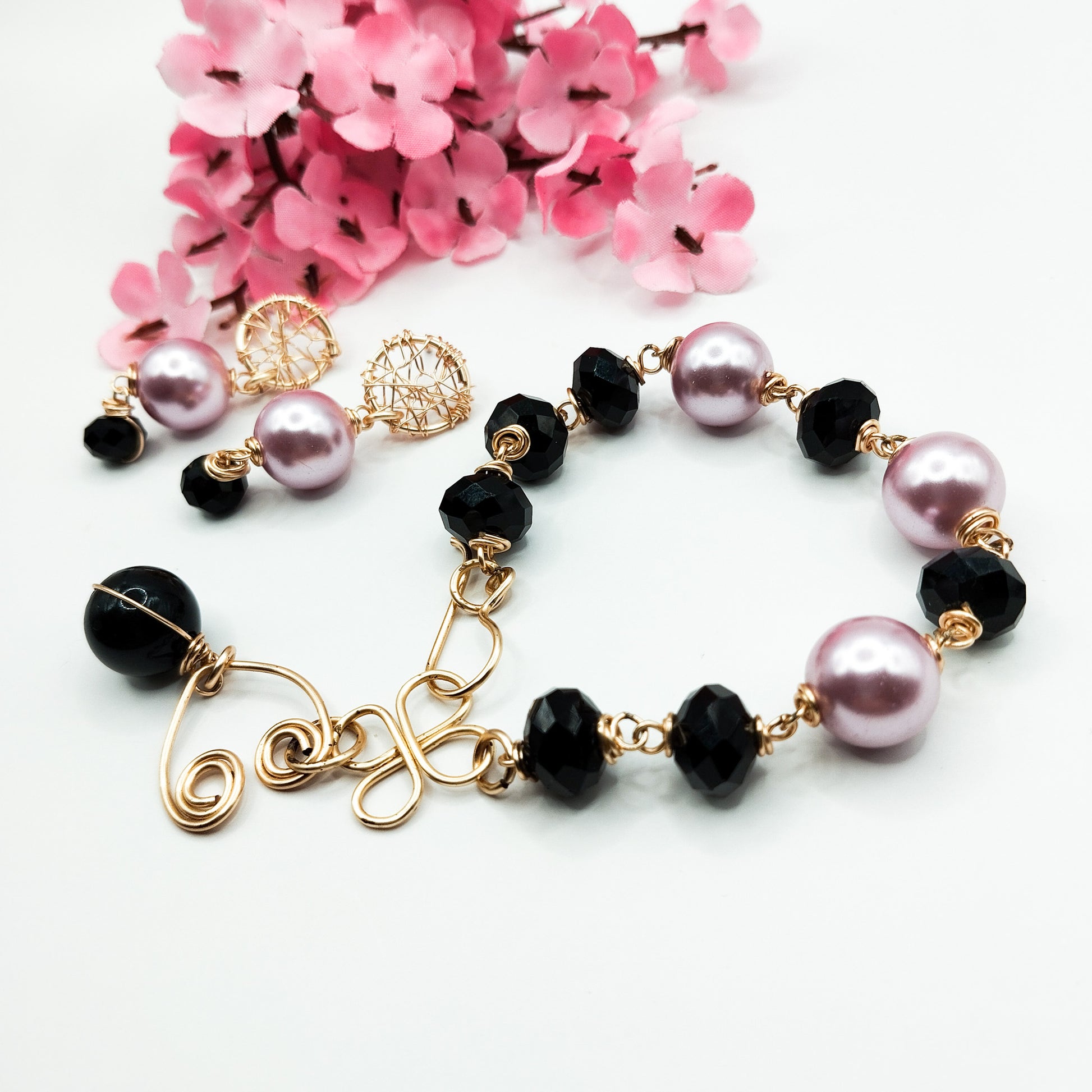 Conjunto de Pulsera y Aros con Perlas Shell y Cristales Checos