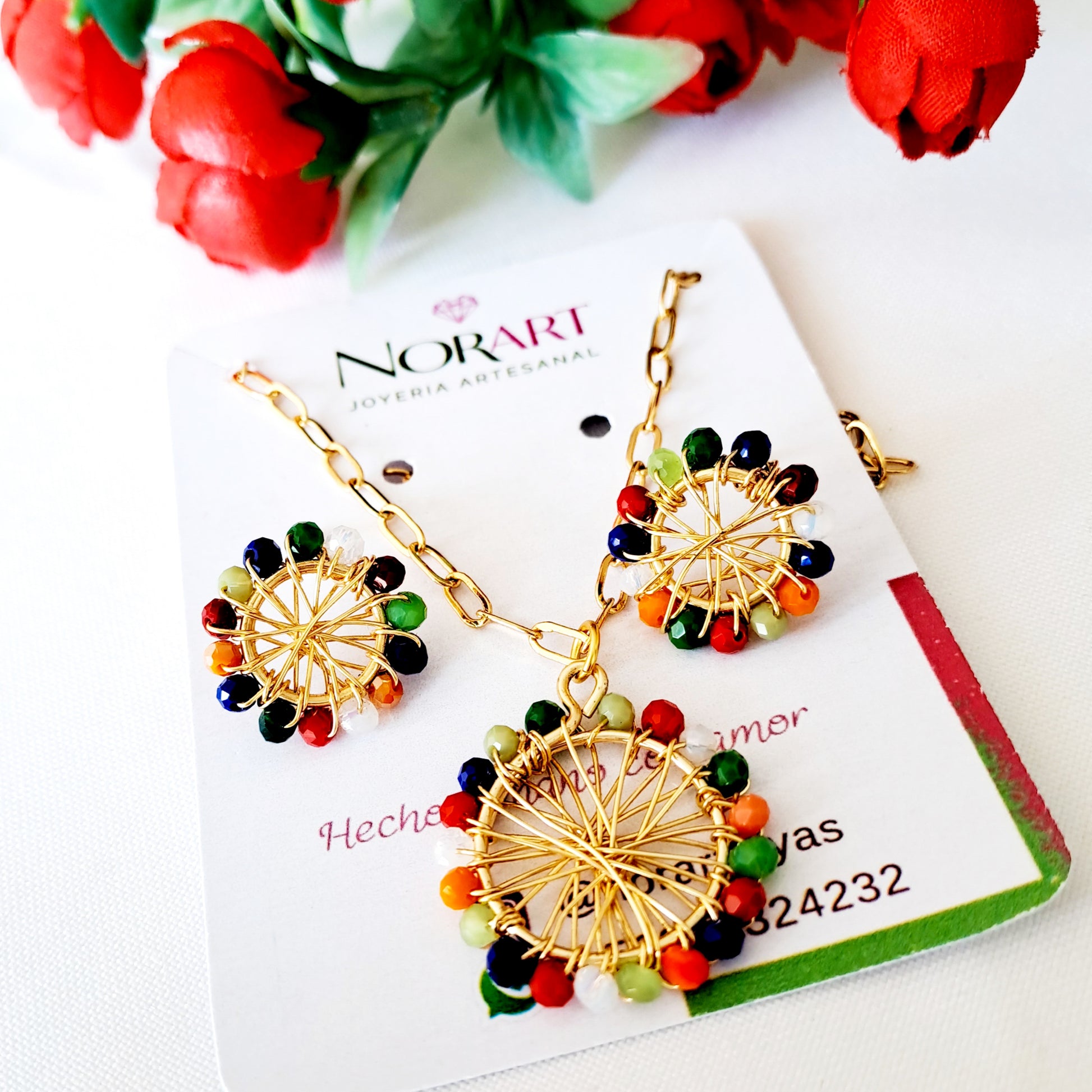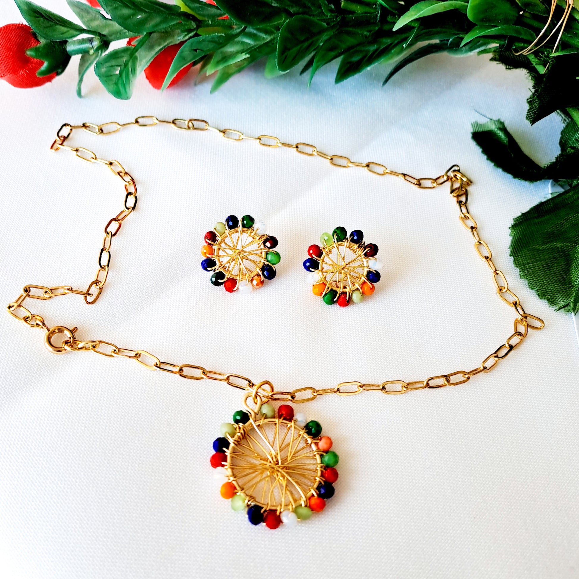 Juego de Cadena con Dije y Aros Con Cristales Entorchados