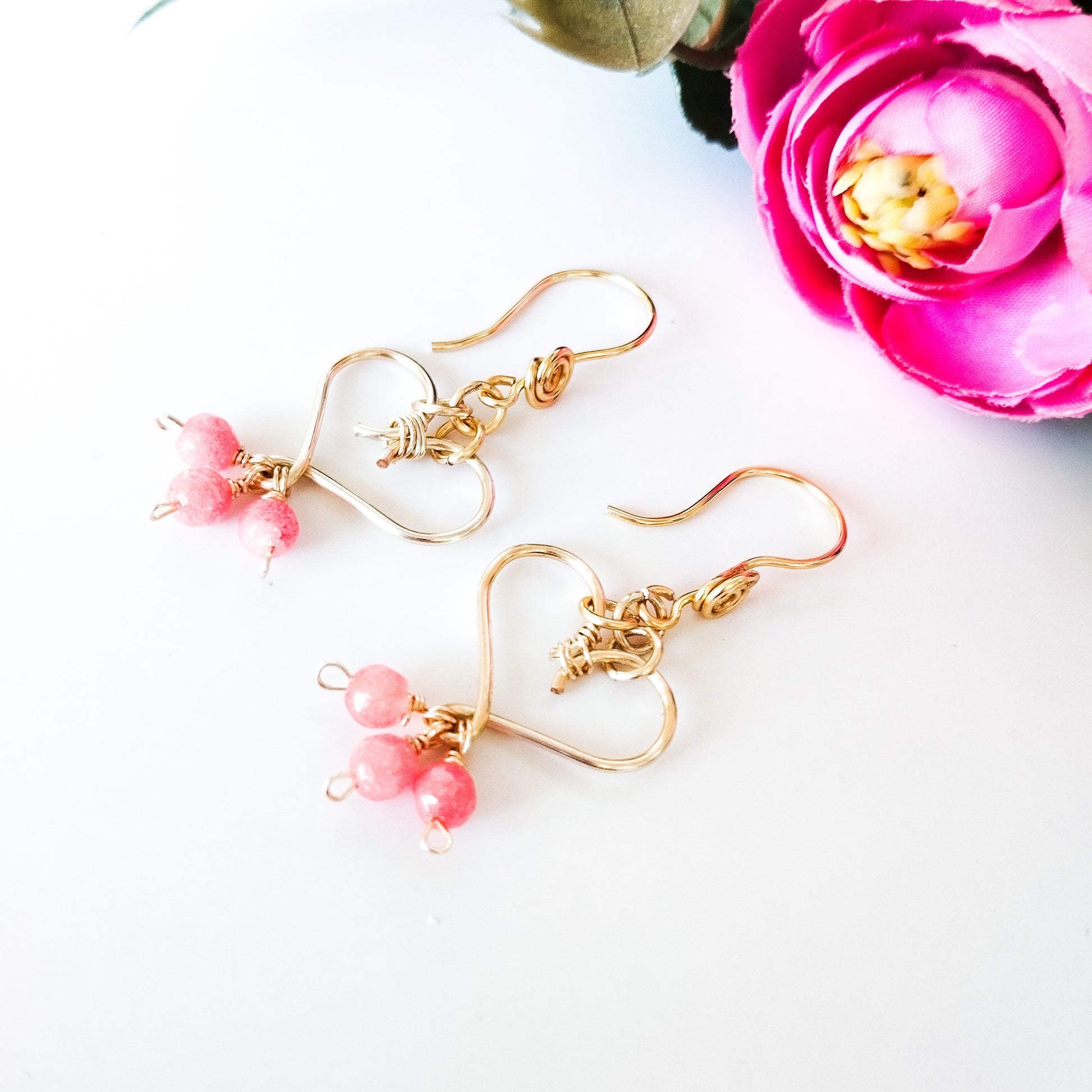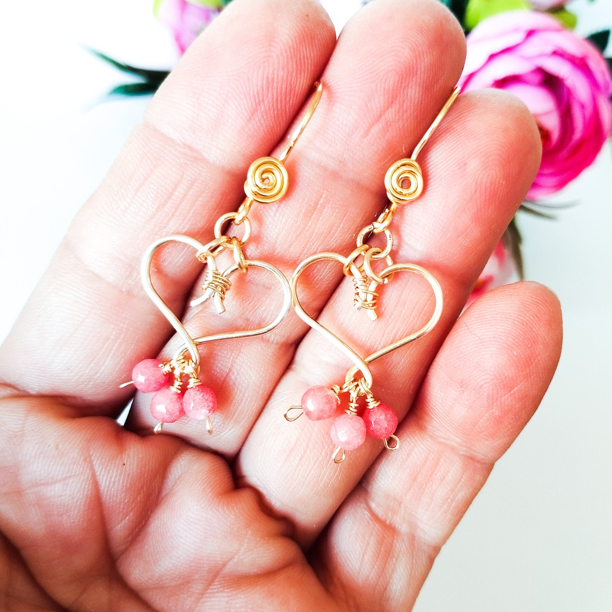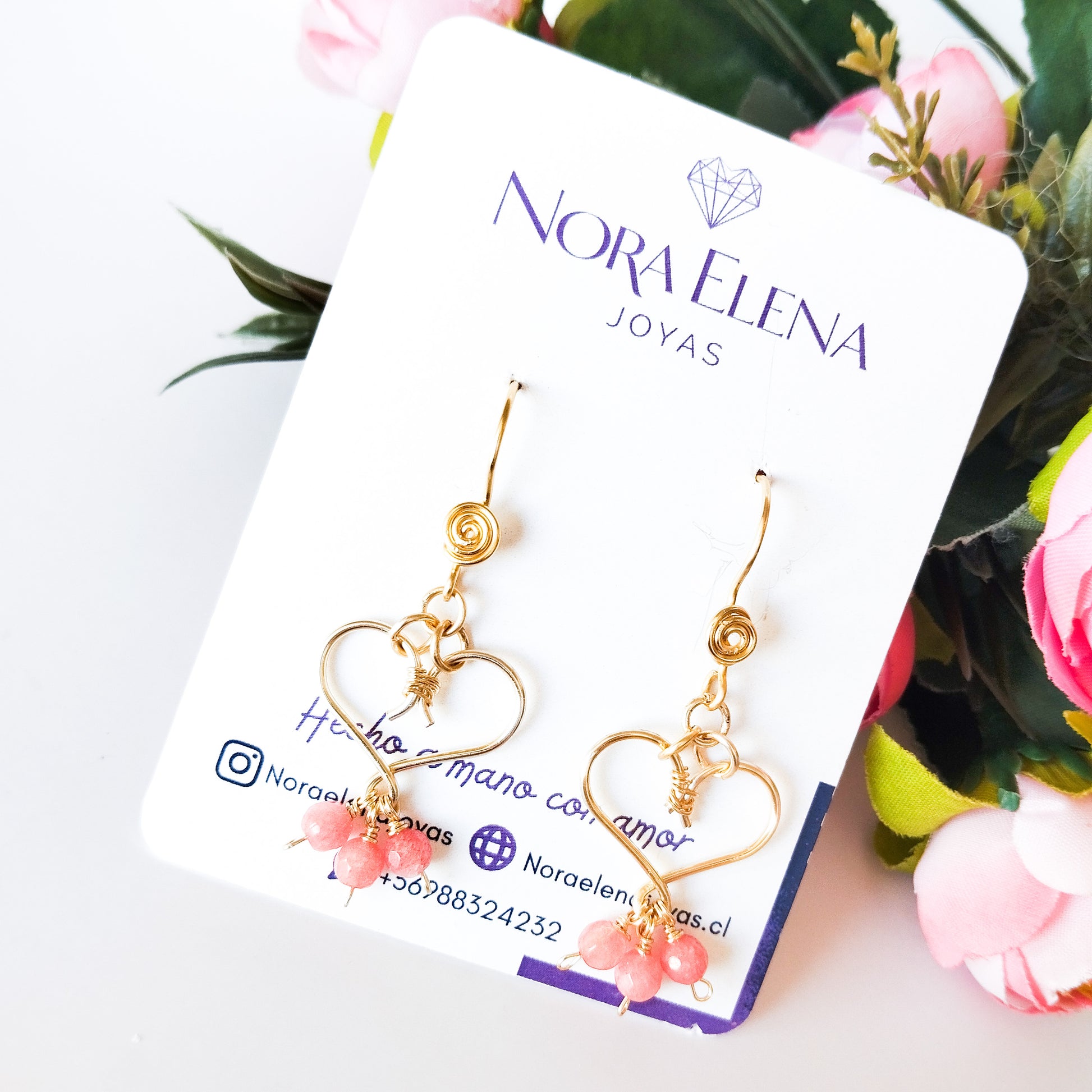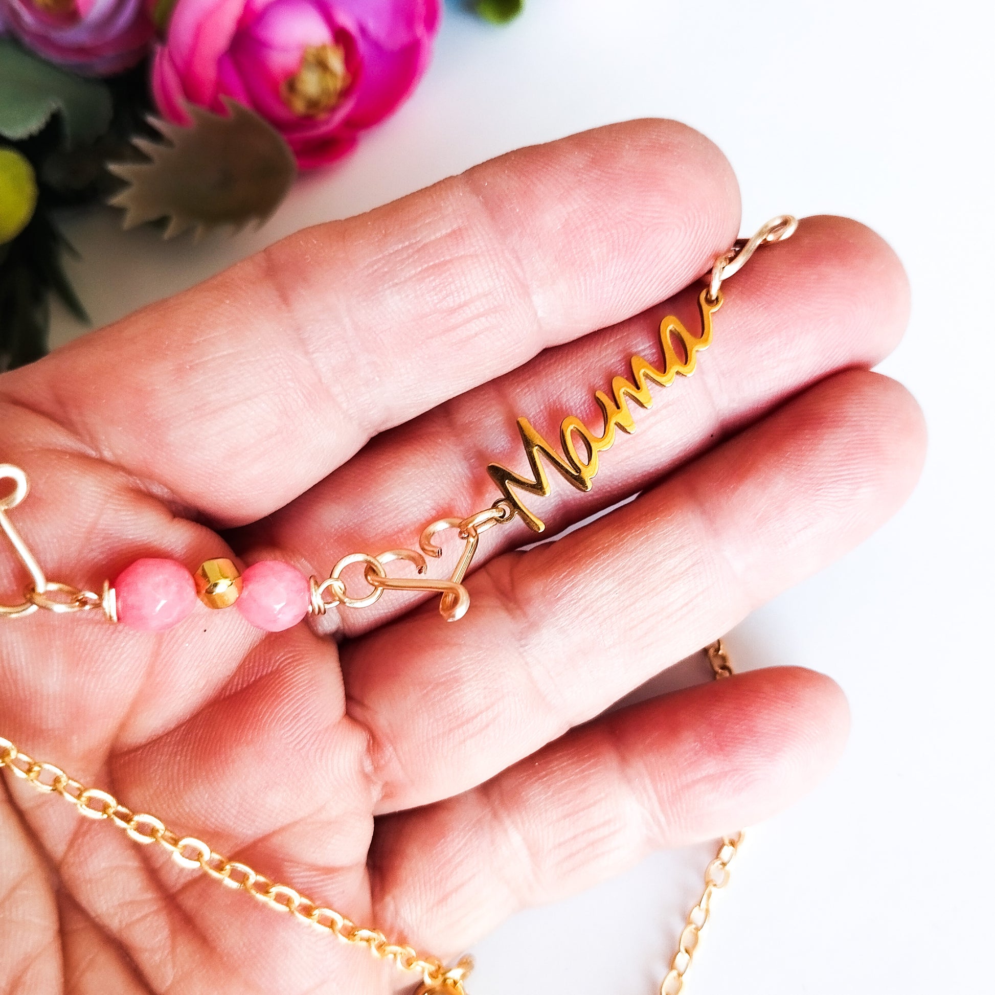 Celebra el día de las madres con este hermoso conjunto de Pulsera y Aros con piedras semi preciosas y alambres en baño de oro.
