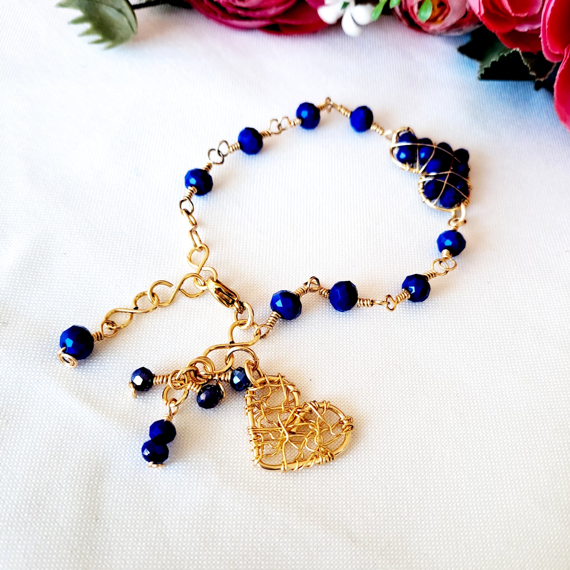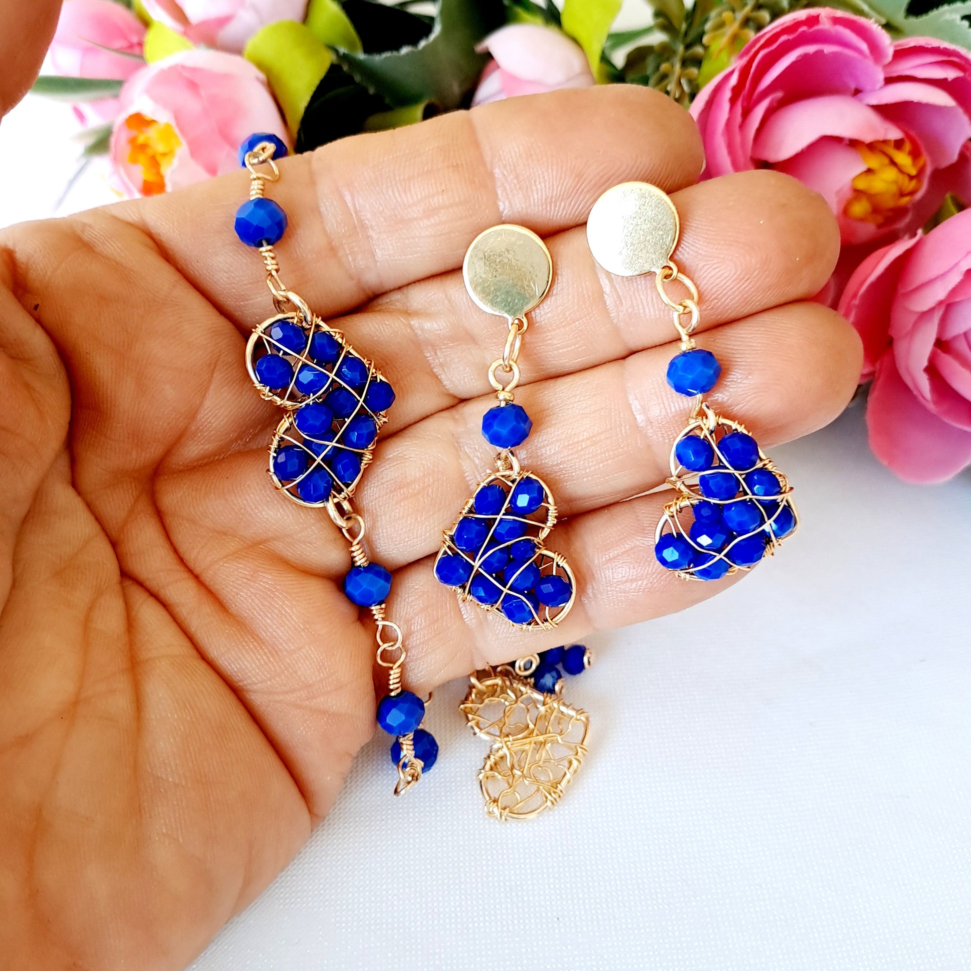 Conjunto de Pulsera Y Aros Con Corazones Entramados En Alambre