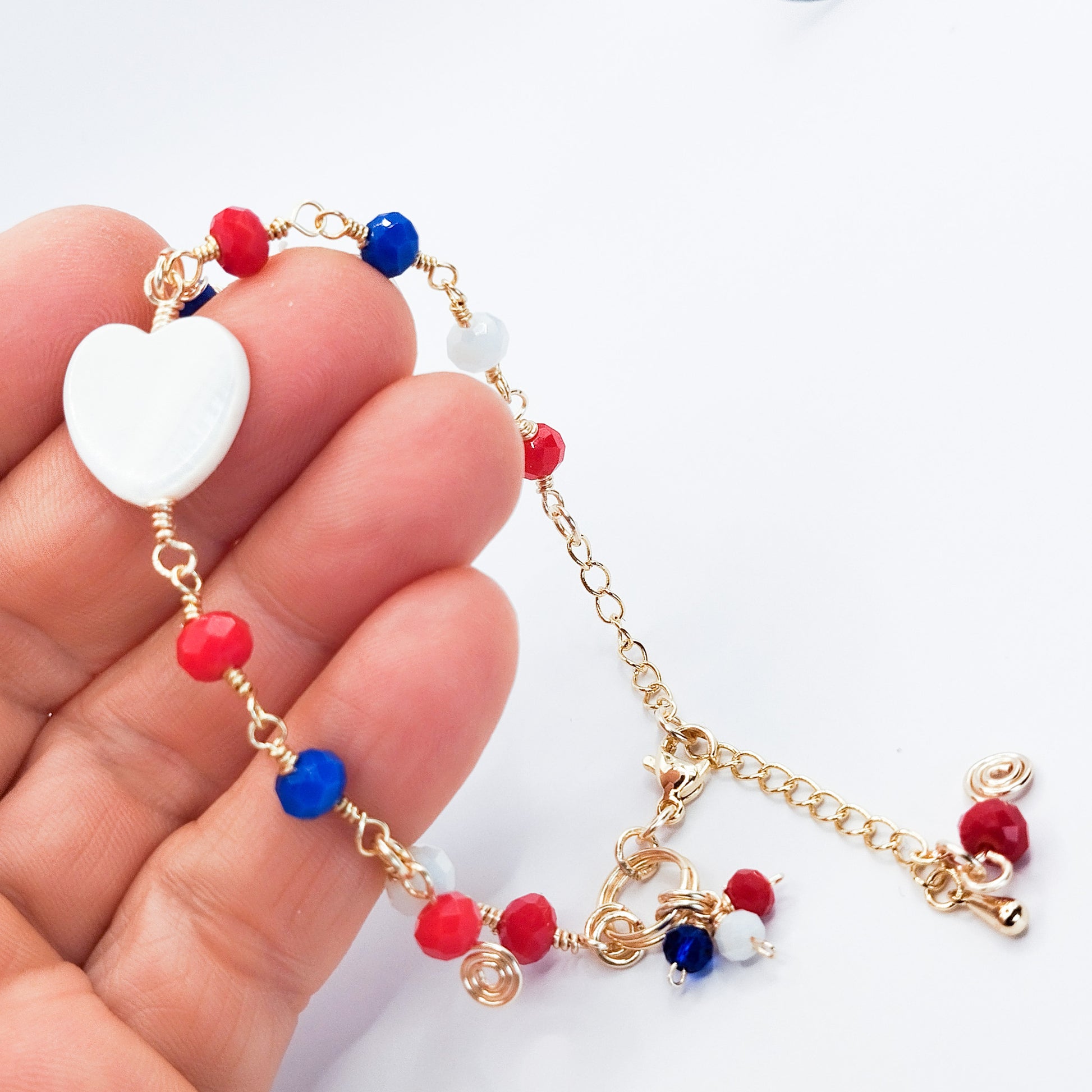 Pulsera de Fiestas Patrias con cristales, dijes, y cadena ajustable